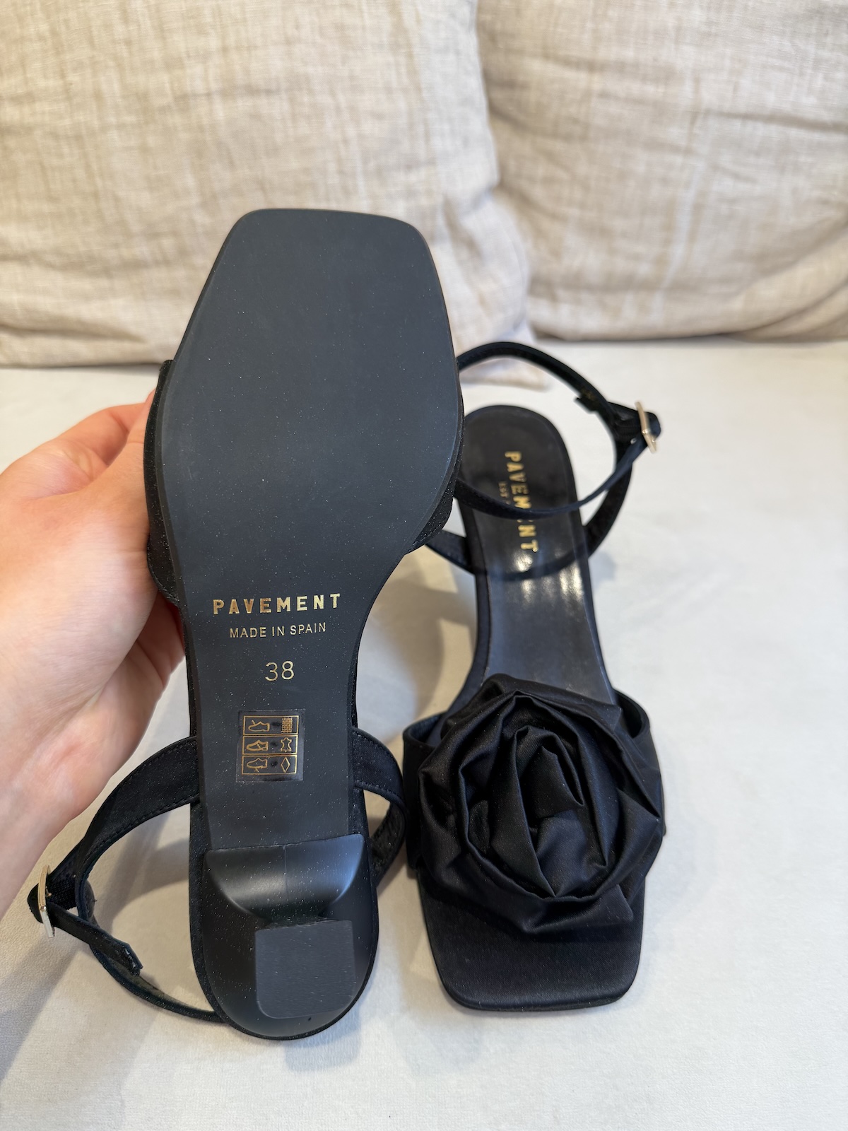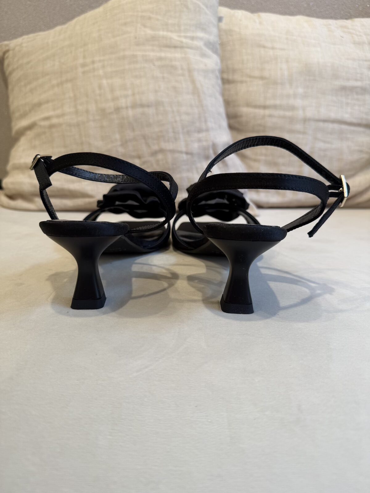 Ruusu sandaalit ovat kauniit kuin koru. Sandaalit ovat kangasta sandaalien päällä on muhkea ruusu. Korko on loistavasti juuri kantapäiden alapuolella, joten näillä on helppo ja mukava kävellä. Koron korkeus on n. 5 cm. Sandaalit vastaavat normaalia kokoa.