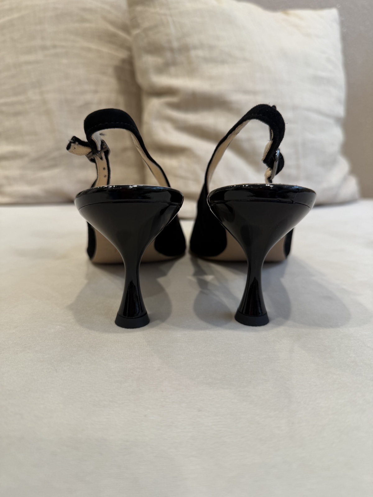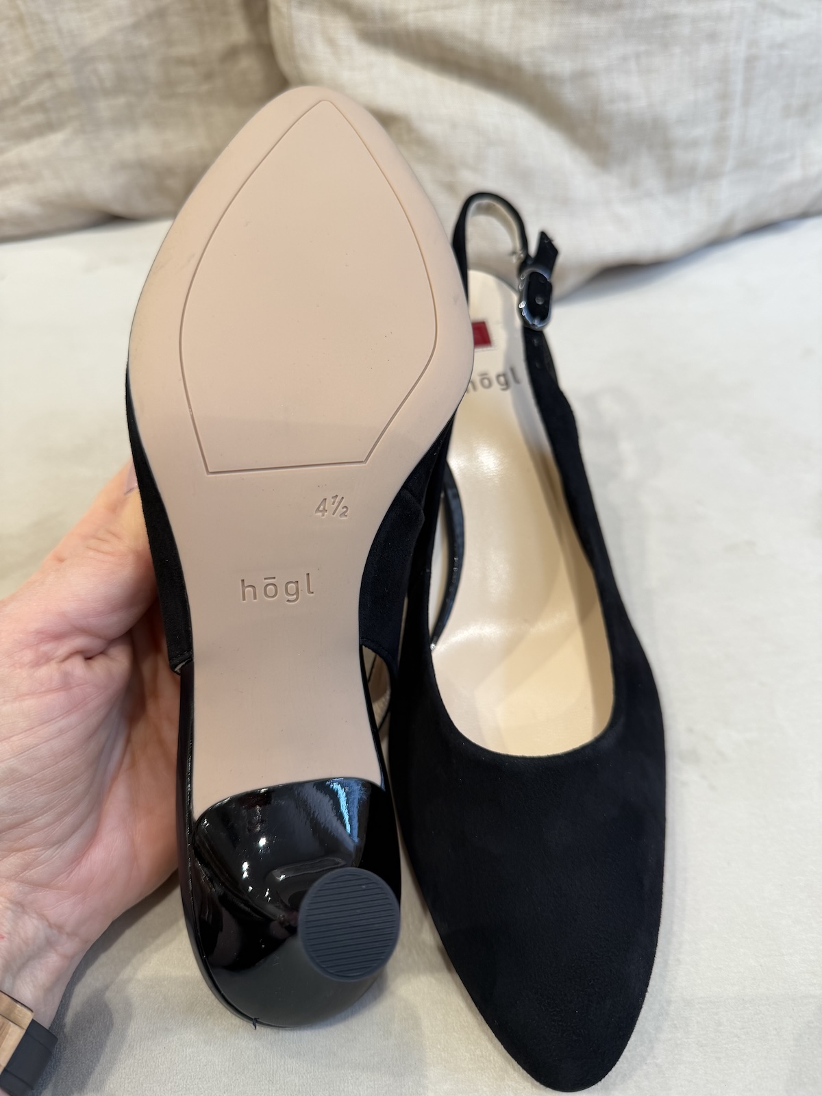 Mokkanahkaiset Sally slingback korkokengät ovat todella hyvät jalkaan. Ne ovat pehmoiset ja niiden korko on täydellisesti kantapään alapuolelle. Näin paino jakautuu tasaisesti, eikä ainoastaan päkiöille. Slingback korkokengät ovat hailakan beiget ja päältä ne ovat mokkanahkaa ja 6 cm korko on beigeä kiiltonahkaa. Korkokengät vastaavat täysin omaa kokoa. Kata käyttää aina tennareista kokoa 5 ja myös näistä kegistä kokoa 5 eli 38.