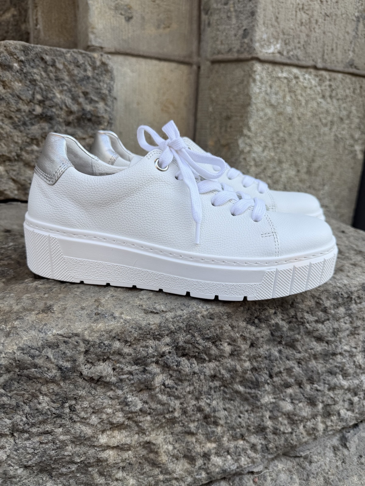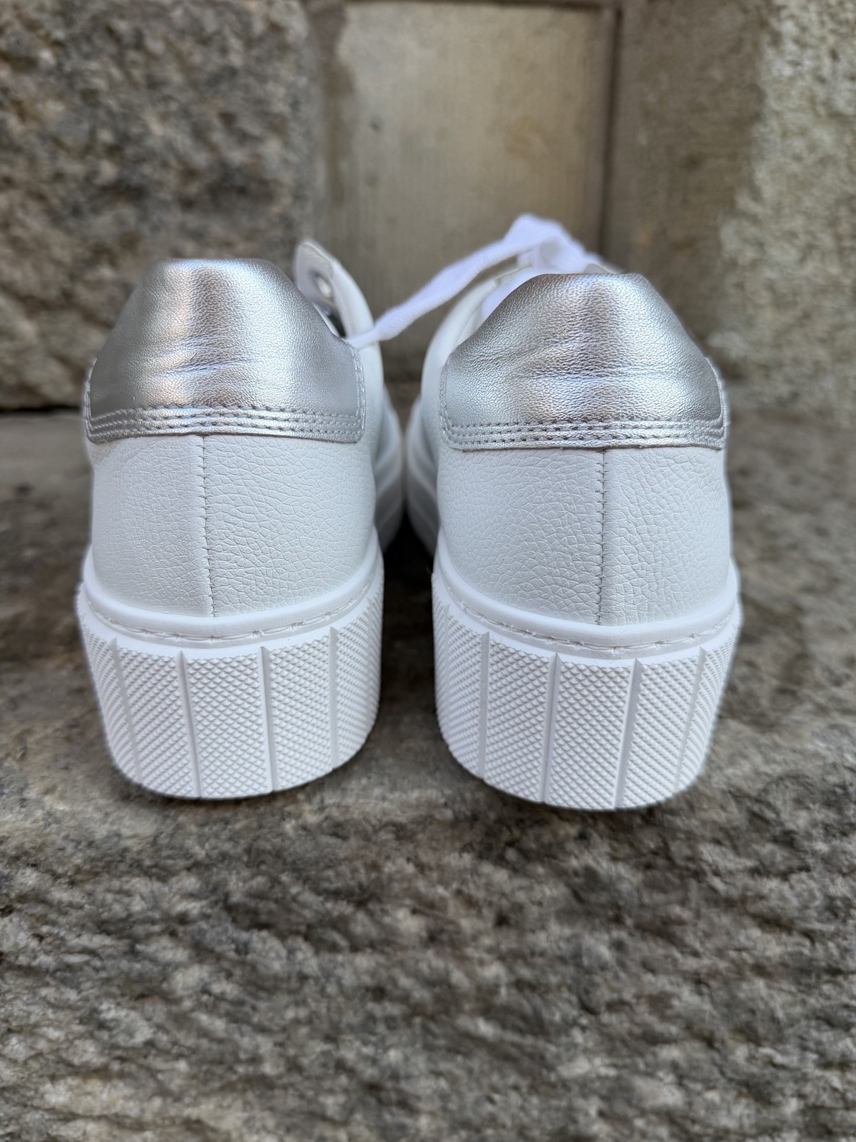 Alma tennarit ovat eleettömät, tyylikkäät ja sellaiset, jotka voi pukea myös hameiden ja mekkojen kanssa. Tennareissa on nauhat edessä ja takana on pieni hopeinen kantti, kantapään kohdalla. Pohjan korkeus on 4 cm.