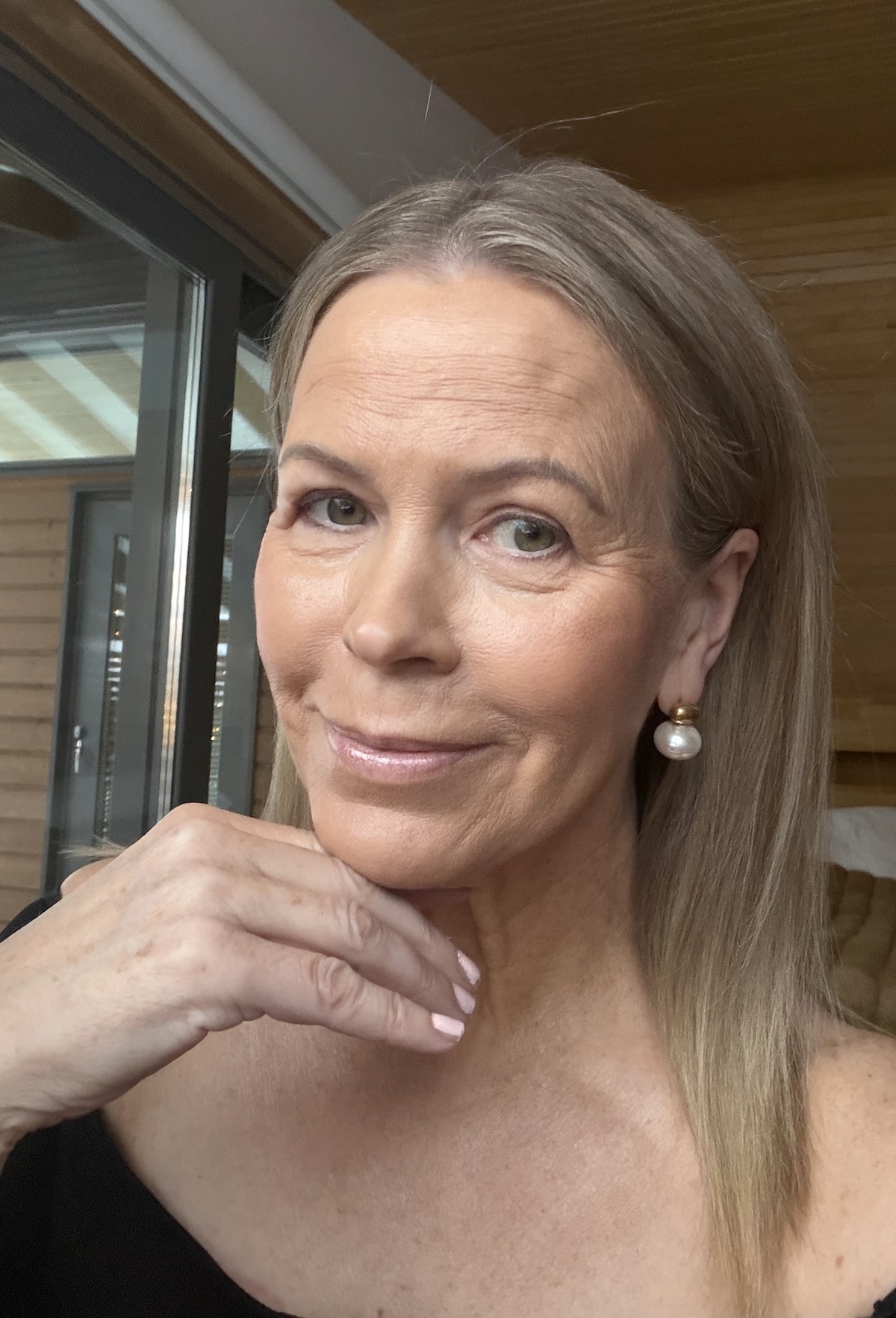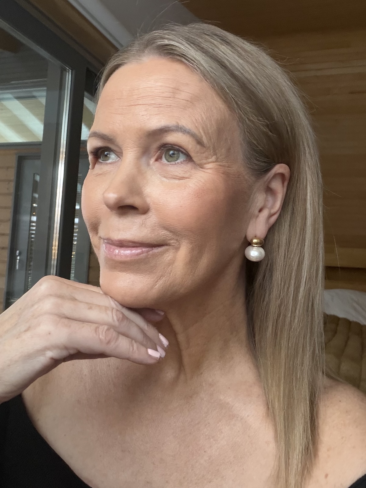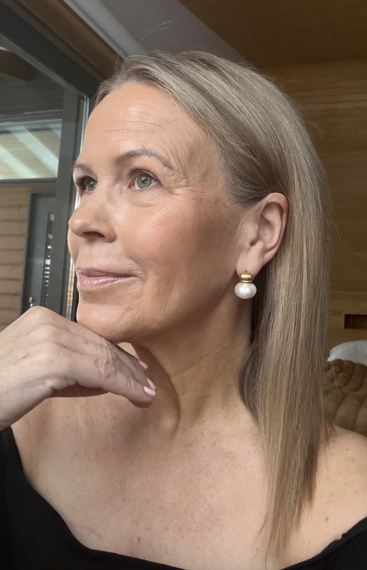 Korvakorut ovat tyylikkäät ja ajattomat. Korvakoruissa on korvanlehden läpi menevä piikki ja kultaisesta pallosta roikkuu iso vaalea helmi. Korvakorujen pituus on 2 cm. Korvakorut ovat nikkelittömät.