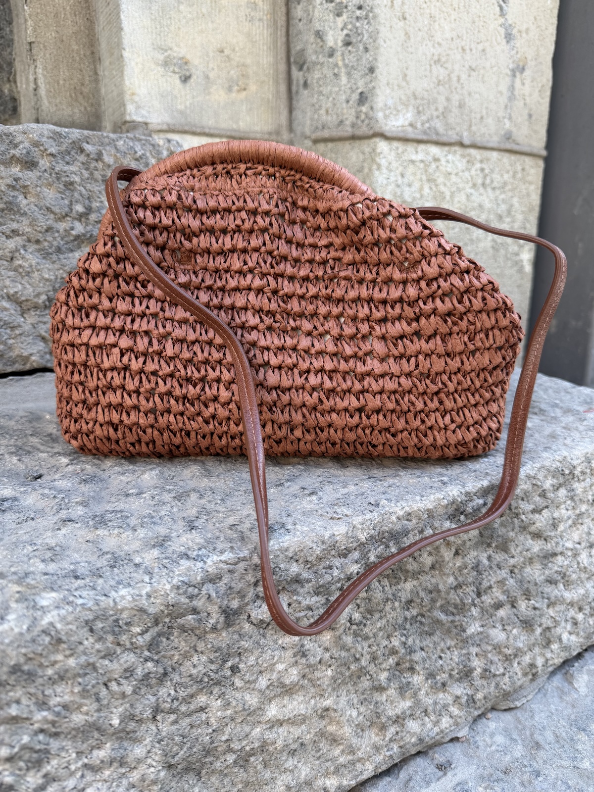 Dayn koriclutch on kaunis ja ihanan värinen. Koriclutchissa on nahkainen olkahihna joka on n. 70 cm pitkä. Laukun sisällä on luonnonvaalea puuvilla vuori, jossa on yksi sisätasku. Laukun koko on n. pituus pohjasta n. 27 cm ja korkeus n. 20 cm.