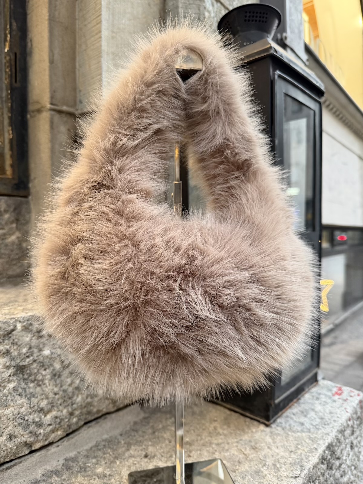 Tekoturkislaukku on aivan ihana! Laukussa on sisällä vuori ja sen päällä on vetoketju eli tavarat pysyvät laukussa turvassa. Laukkuun kuuluu kullanvärinen metallinen ketju eli laukun saa myös olanyli. Laukkua löytyy myös ruskeana. Laukku on myös kiva joululahjaidea!