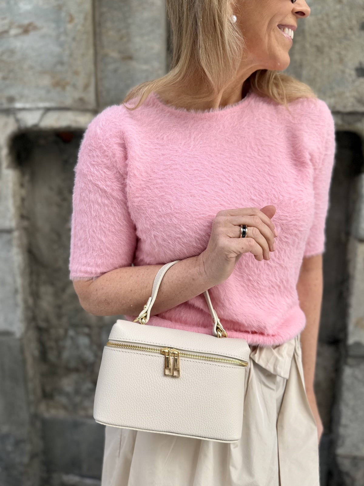 Hermina nahkalaukku; luonnonvaalea