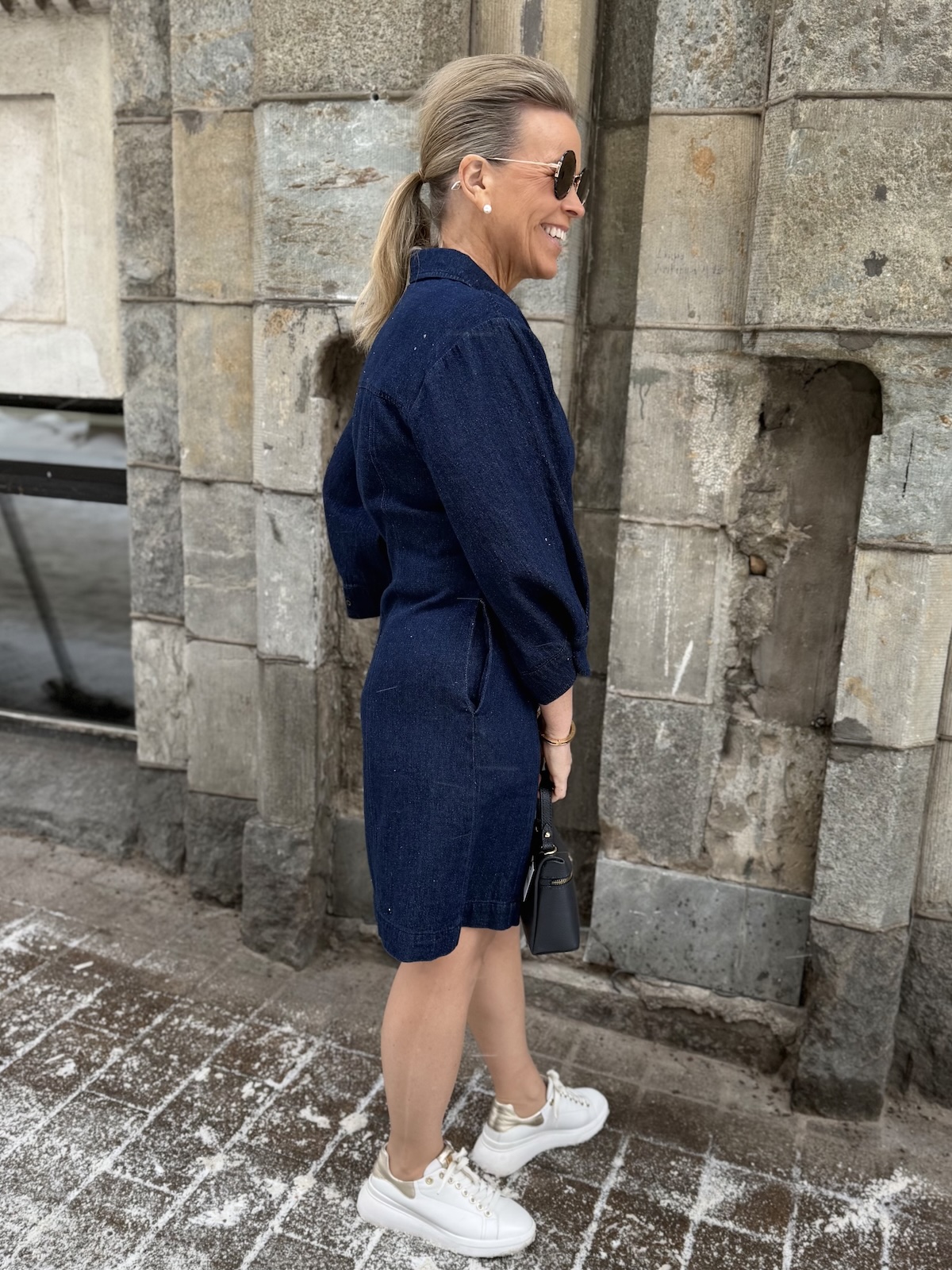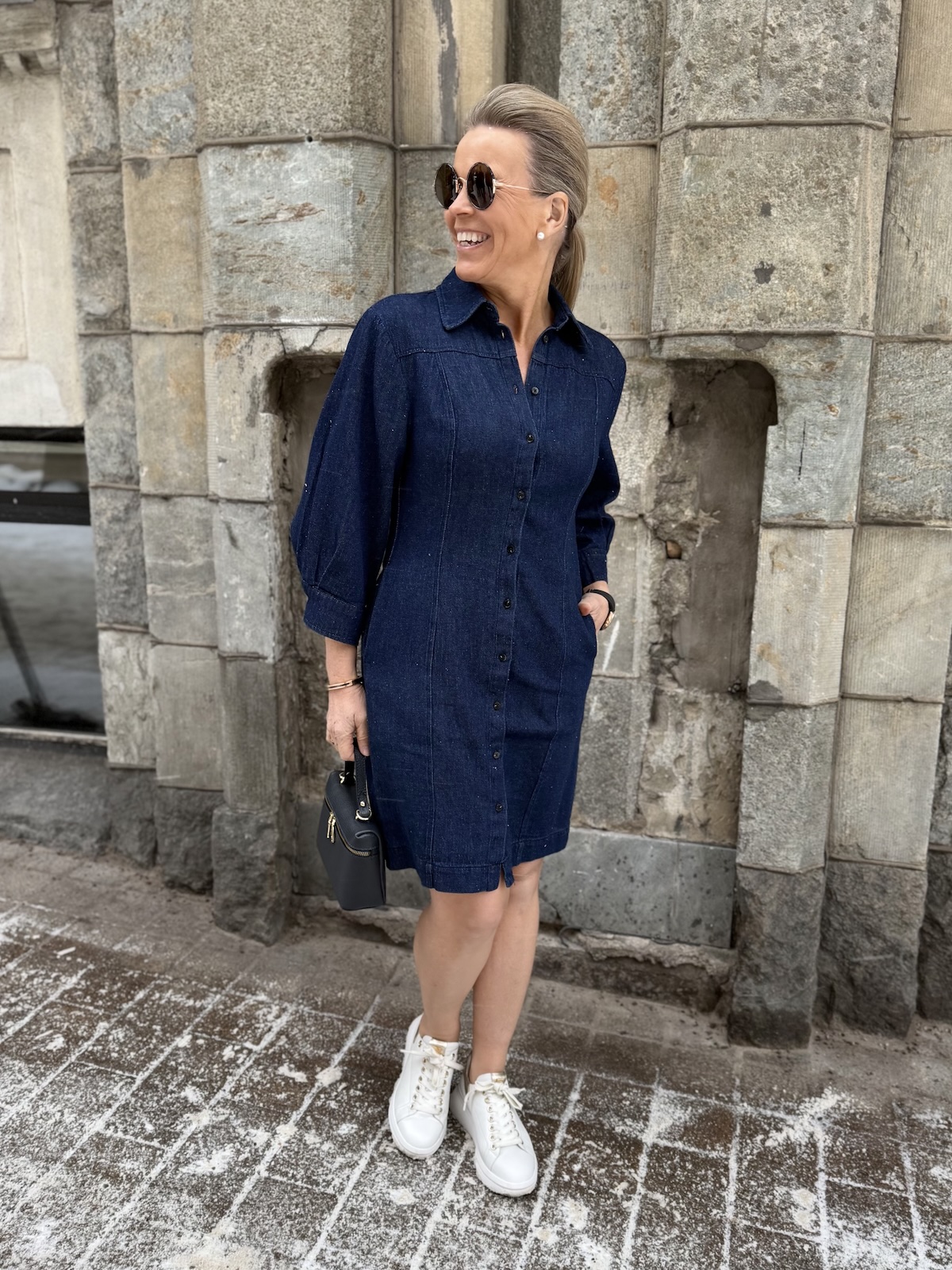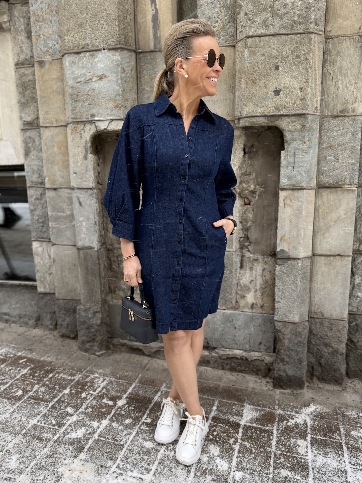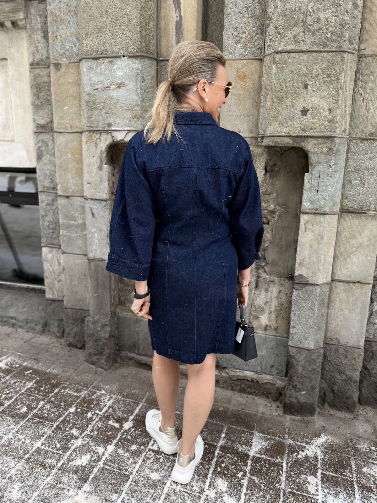 Chaman on farkkutyylinen mekko, jossa on puuvillaa ja pellavaa. Materiaalia on pehmoista ja miellyttävää iholla ja materiaali myös hieman joustaa. mekossa on kaulukset ja edessä olevat napit ovat täysin avattavat. Hihat ovat vajaamittaiset ja löysähköt. Hihansuissa on napit eli ne saa myös pienemmiksi (katso Katan oikea käsi). Malliltaan mekko on slimmattu eli se on vartalonmyötäinen ja ylettyy polvien kohdalle. Katalla on mekosta päällä koko XS.