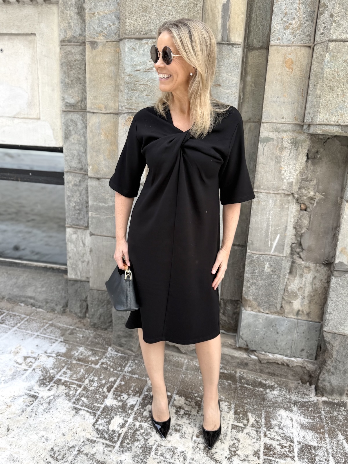 Marigold kuuluu ihanaan ”Pumpulia iholle” olevaan sarjaan! Marigold mekossa on kaunis kaula-aukko. Kaula-aukon alapuolella on solmuke, joka onkin mekon kaunis yksityiskohta. Hihat ovat löysähköt ja ne ylettyvät kyynerpäiden kohdalle. Malliltaan mekko levenee minimaalisesti alaspäin ja loppuu polvien alapuolelle. Katalla on mekosta päällä koko XS. Mekko on reilua kokoa, joten suosittelemme ottamaan mekosta yhden koon pienemmän kuin normaalisti käyttää. Katso mekon mitat.