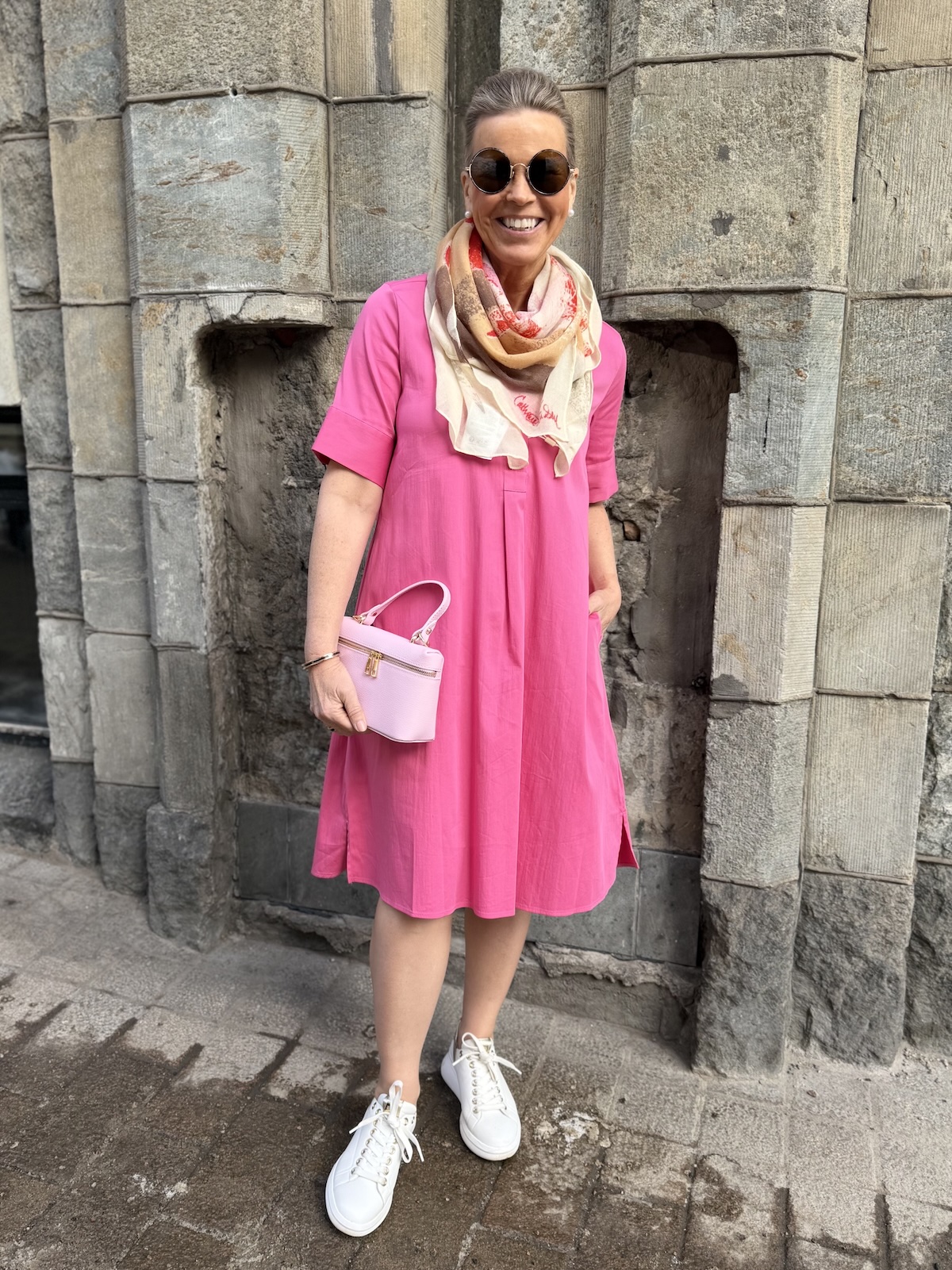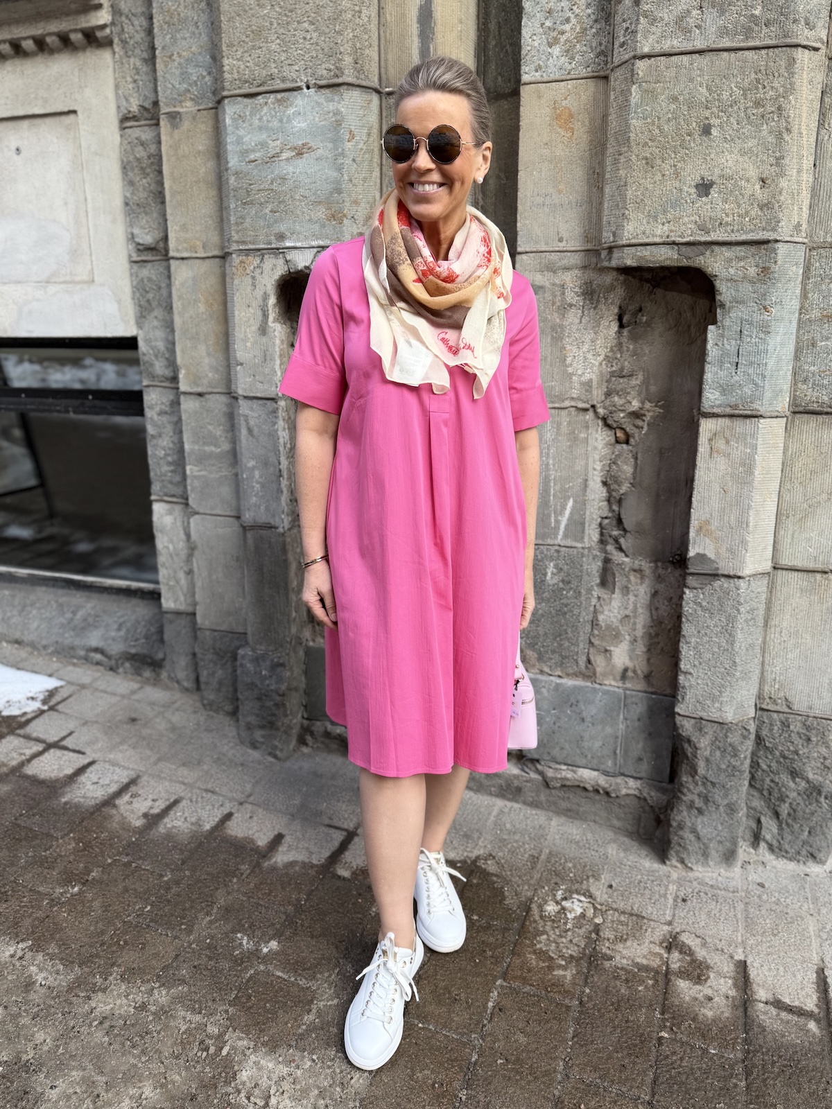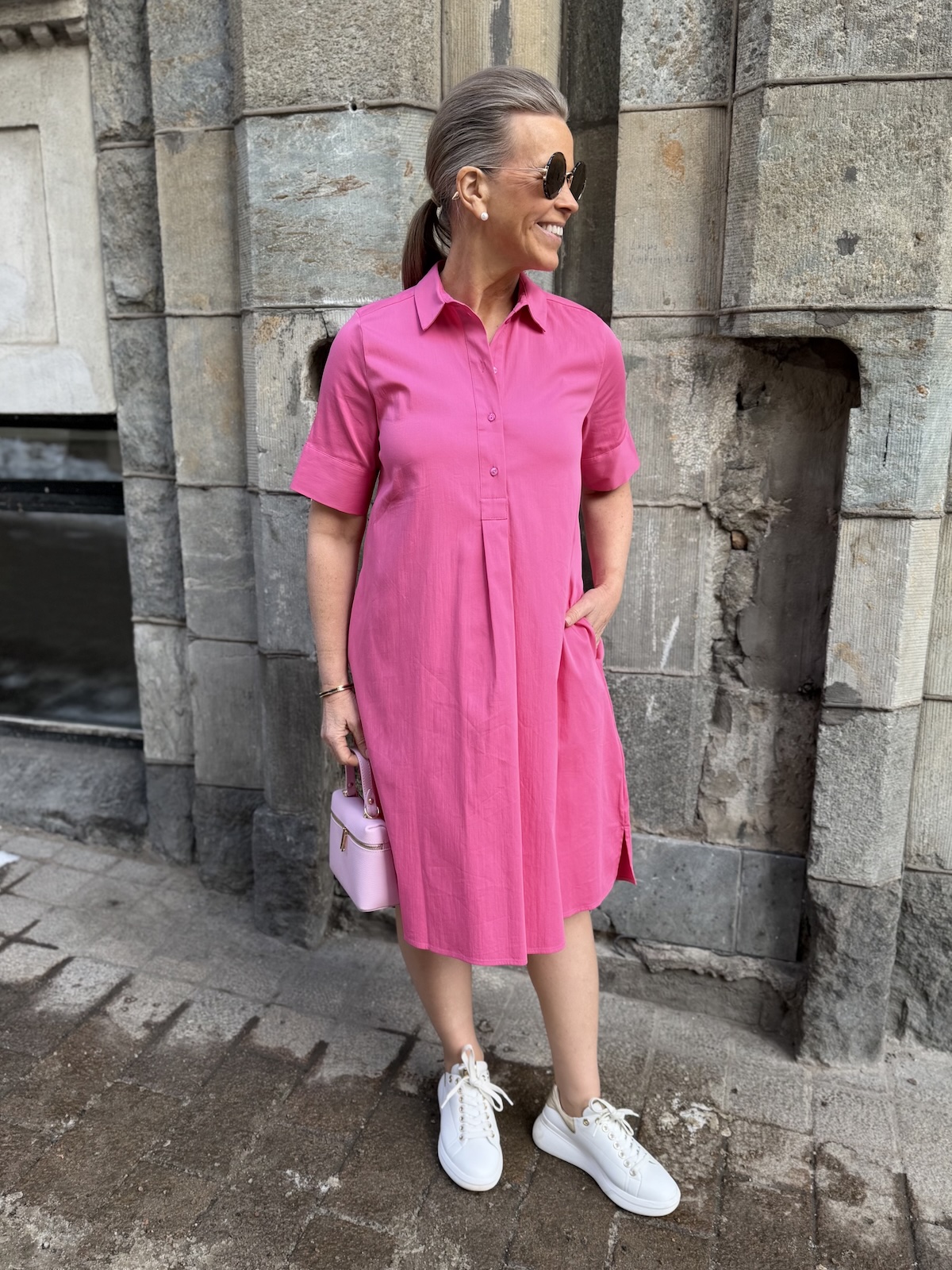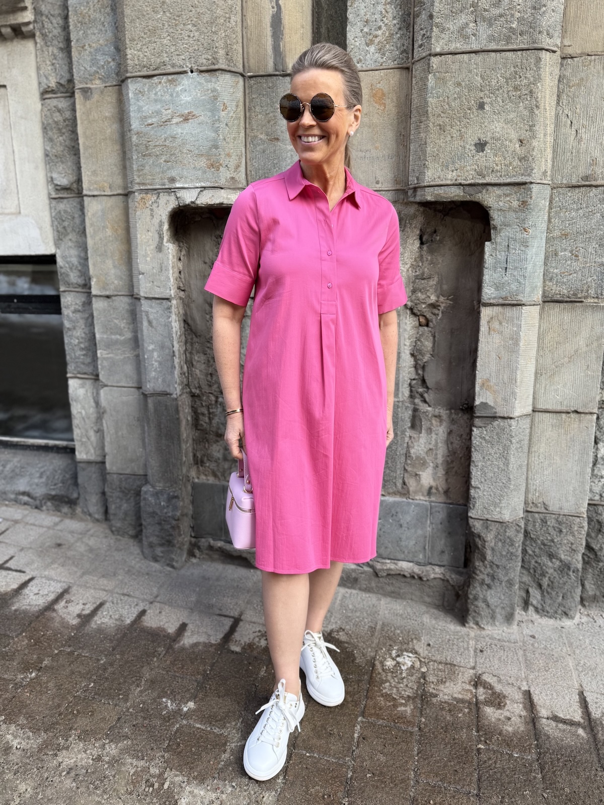 Miska on rento paitamekko. Mekossa on kaulukset ja edessä on muutamia nappeja. Hihat ylettyvät kyynerpäiden yläpuolelle. Hihansuissa on leveä kantti ja nappi. Nappilistan alapuolella on yksi laskos, joka antaa tilaa mekon alaosalle, lantiossa on tilaa. Myös selkäpuolella on laskos. Mekko levenee kevyesti alaspäin ja loppuu juuri polvien alapuolelle. Mekon sivuissa on taskut. Katalla on mekosta päällä koko 34.
