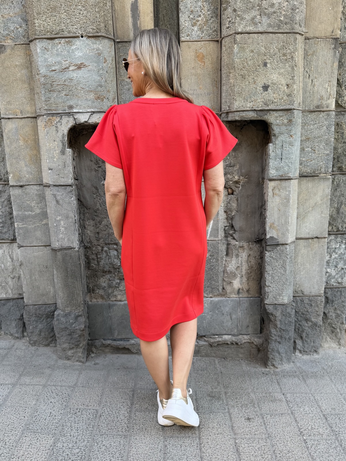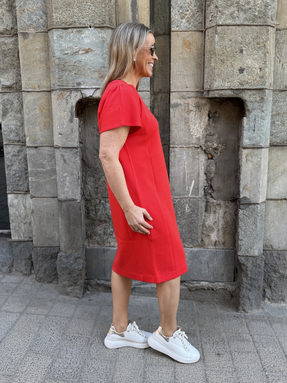 Picue mekko on loistava arkimekko eli pese ja pidä 🙂 Mekossa on O-kaula-aukko ja hihat tipahtavat reilusti olkapäiden alapuolelle. Mekko on malliltaan suora ja se loppuu polvien alapuolelle. Katalla on mekosta päällä koko S. Lantion kohdalle on hyvä jäädä hieman tilaa, noin 6 cm.