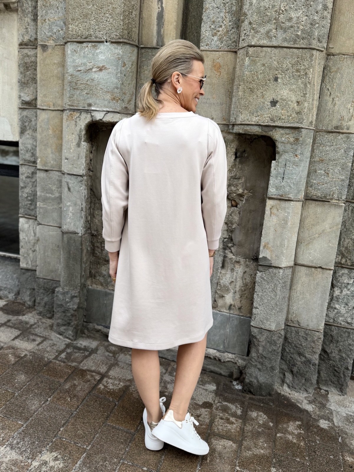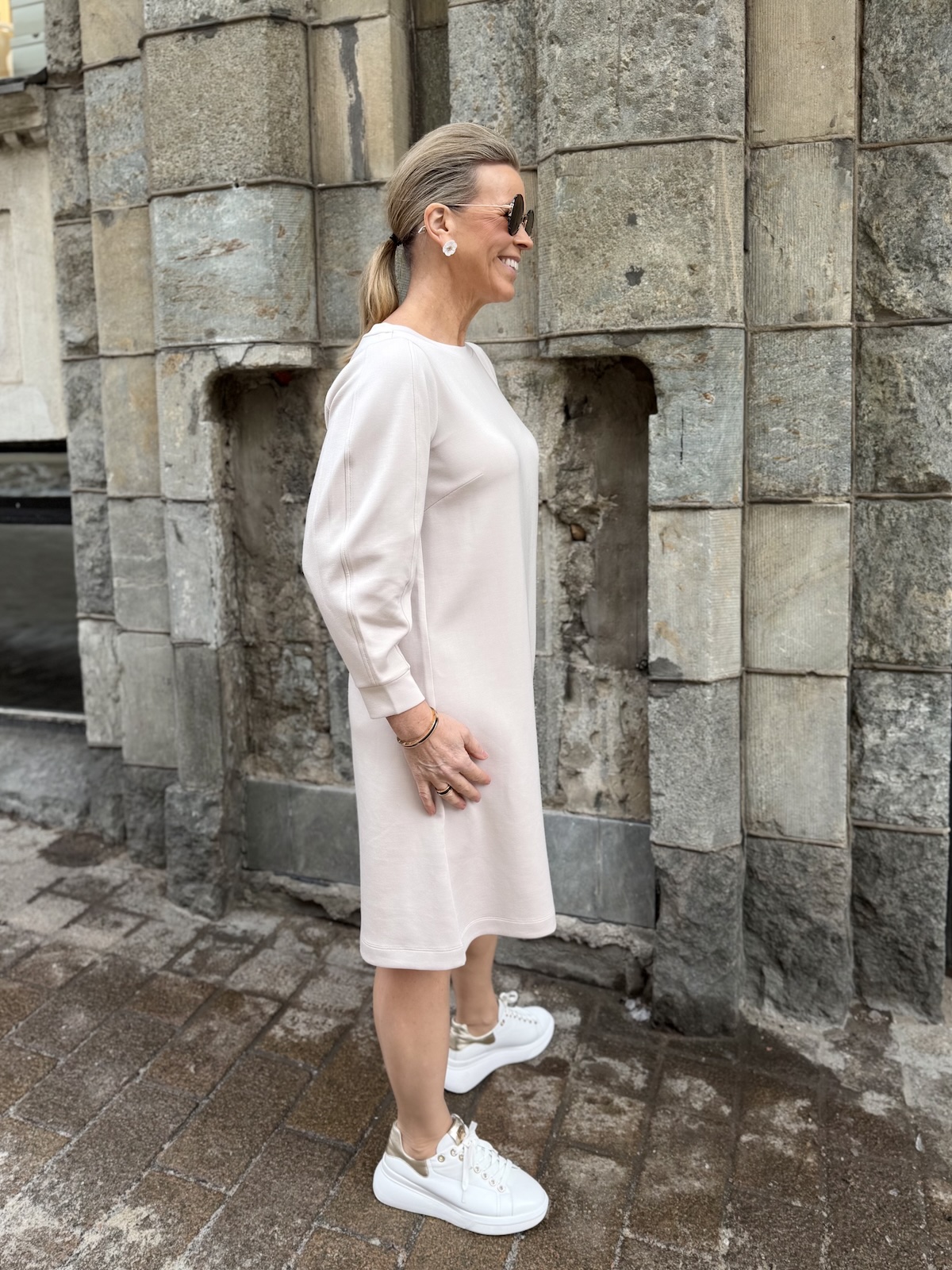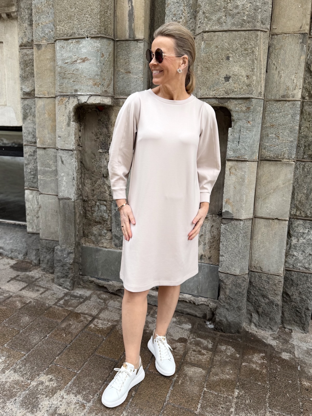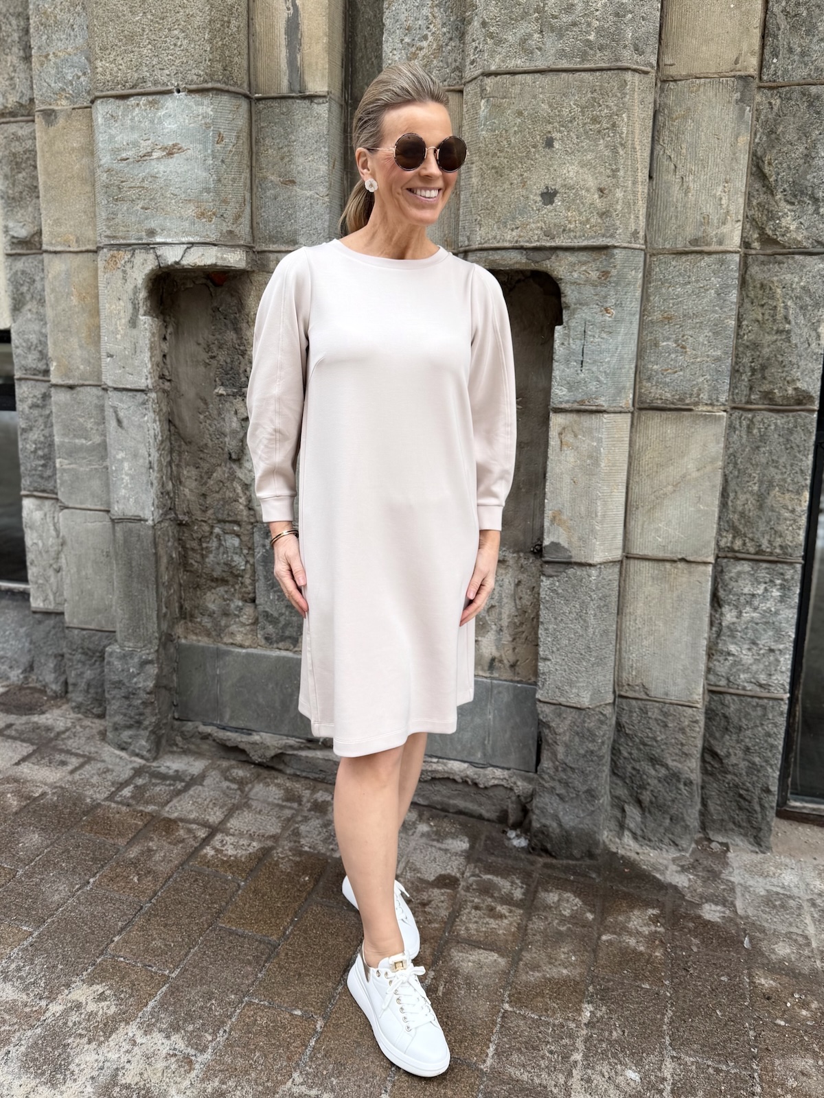 Simi Vincent on aivan ihana mekko. Mekko on monikäyttöinen ja aina siisti! Mekossa on O-kaula-aukko ja hihat ovat hieman pussimaiset ja ne ylettyvät noin ranteiden kohdalle. Mekko on istuva rinnan kohdalta jonka jälkeen se levenee kevyesti alaspäin ja loppuu polvien yläpuolelle. Katalla on mekosta päällä koko XS.
