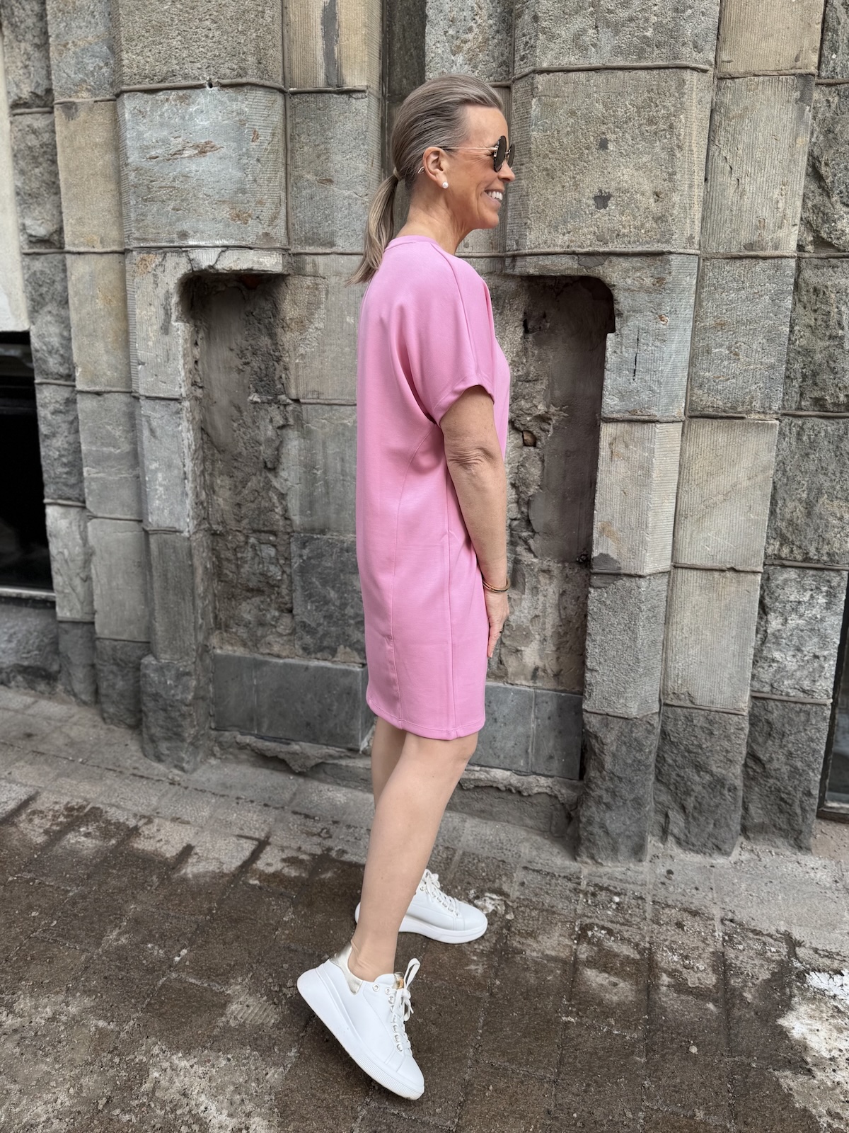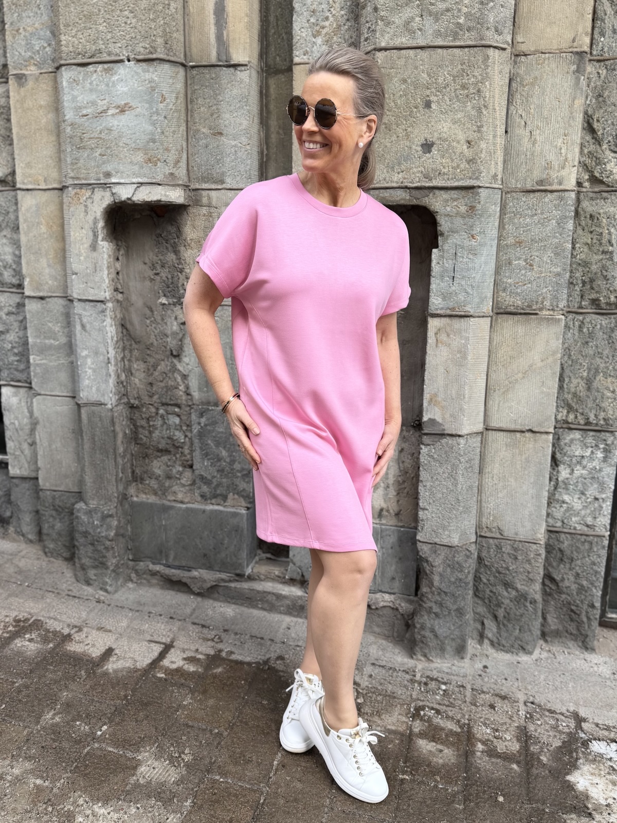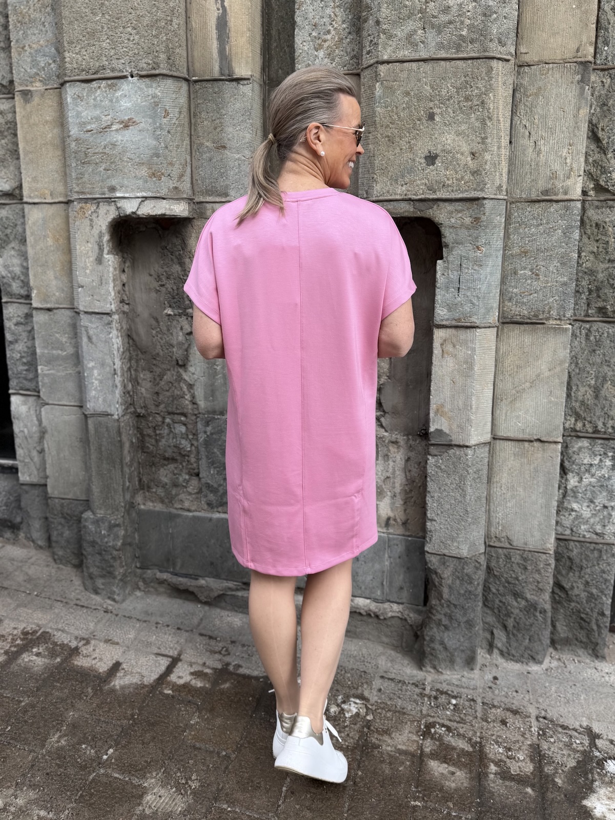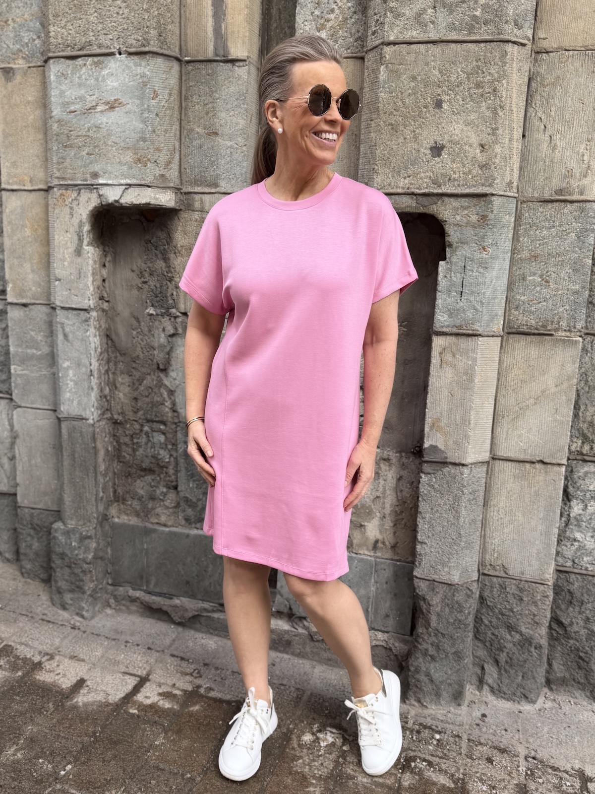 Chabrina mekko kuuluu ihanaan ”Pumpulia iholle” olevaan sarjaan. Mekossa on O-kaula-aukko ja hihat tipahtavat reilusti olkapäiden alapuolelle. Malliltaan mekko on suora ja se loppuu noin polvien kohdalle. Katalla on mekosta päällä koko S.