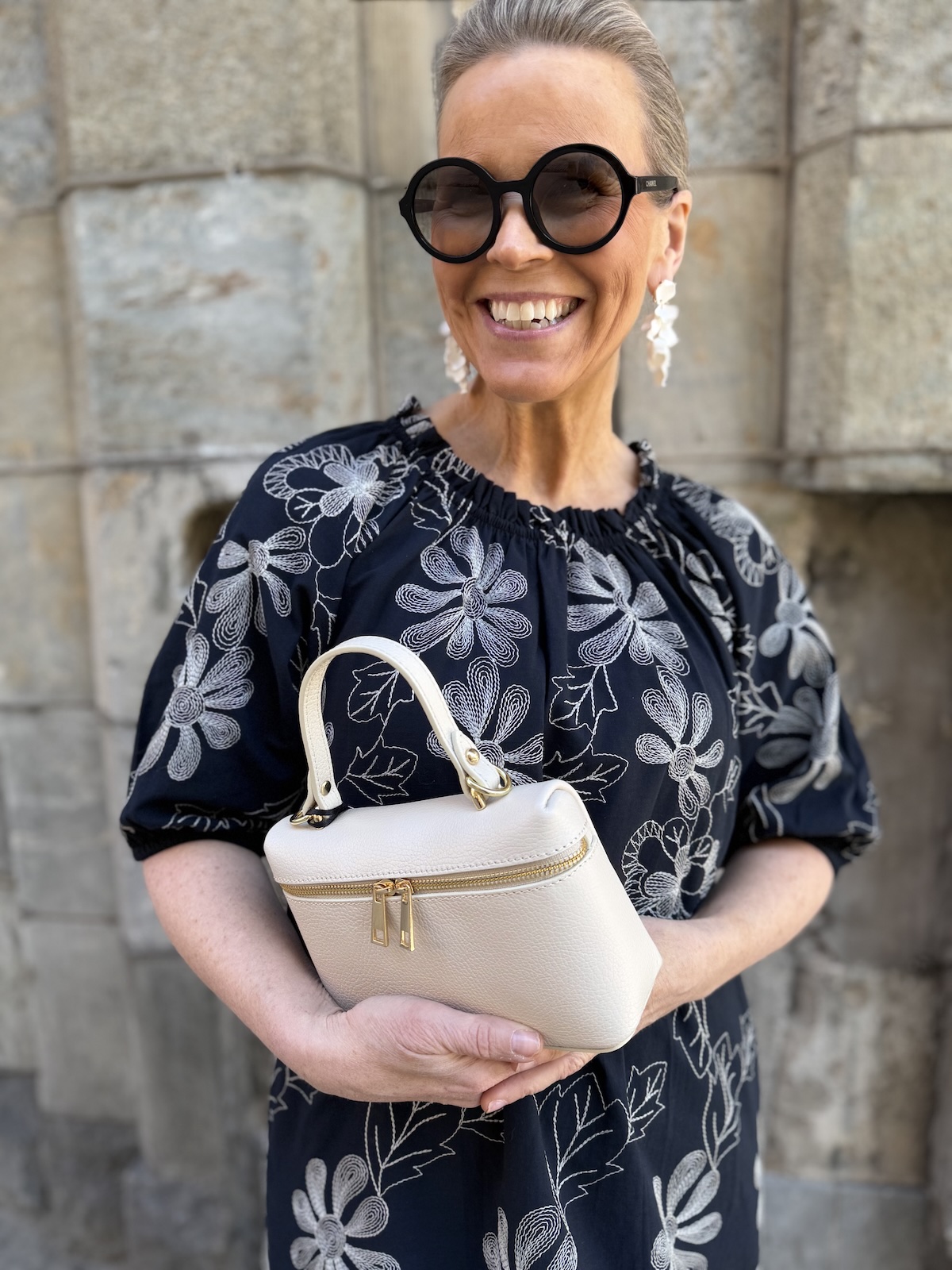 Airia on kaunis ja ohuehko puuvillatyylinen mekko, missä on valkoisella brodeerattuja kukkia. Mekkoon voi yhdistää joko vitivalkoista tai luonnonvalkoista, kumpikin käy. Mekon kauluksessa on kumilankaa. Kaulusta voi pitää kuten kuvassa, tai vetäistä sen olkapäiden alapuolelle, off shoulder tyylisesti. Mekossa on irroitettava tummansininen vuorimekko. Mekossa on vajaamittaiset hihat, joiden hihansuissa on kuminauhat. Mekko levenee kevyesti alaspäin ja mekon sivuissa on taskut. Mekko loppuu polviin. Mekko toimii arkeen sekä pieneen menoon. Katalla on mekosta päällä koko 34.