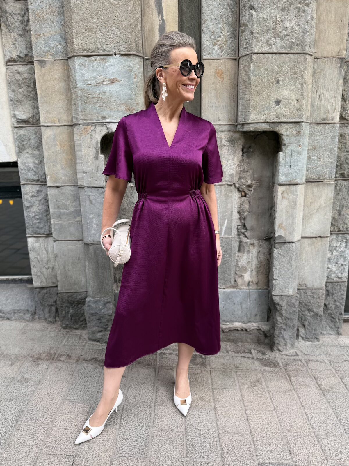 Balja mekko V-kaula-aukolla; tumma luumu