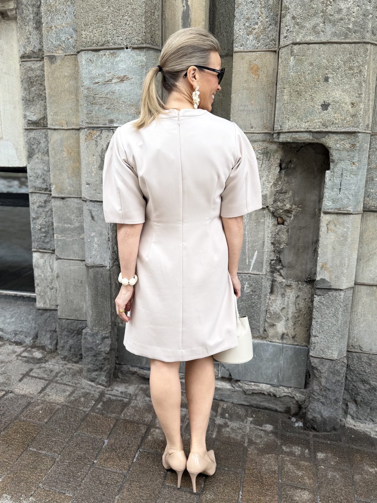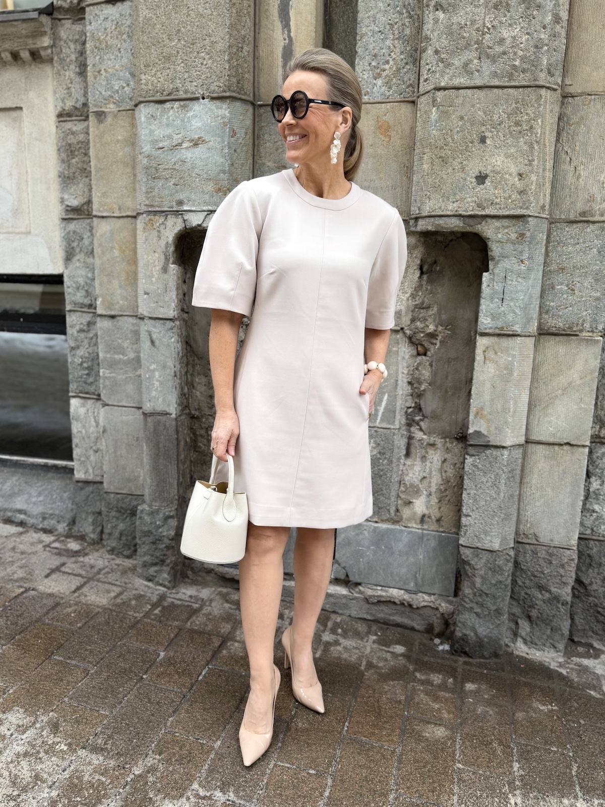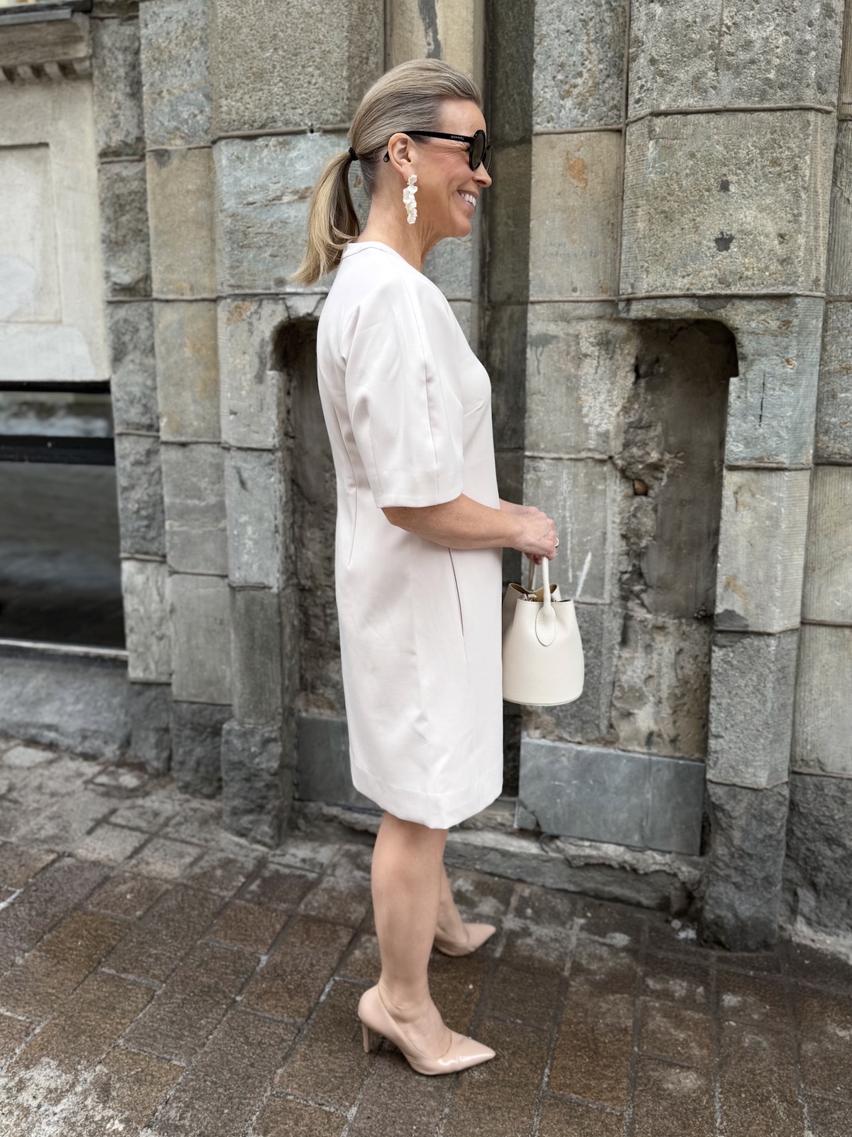 Chayce mekko on todella kaunis! Mekossa on O-kaula-aukko. Hihat on kauniisti leikattu, hieman pussimaisiksi ja ne loppuvat kyynerpäiden yläpuolelle. Mekko on vyötäröstä hieman kavennettu ja helma laskeutuu suorahko alaspäin. Mekossa on taskut, jotka on tuotu hieman mekon eteen, pois sivusaumoista. Takana on pitkä vetoketju ja mekossa on vuori. Katalla on mekosta päällä koko 36. On tyylikästä että mekon ja vartalon väliin jää muutama sentti ilmaa vartalon keskikohdan sekä lantion kohdalta.