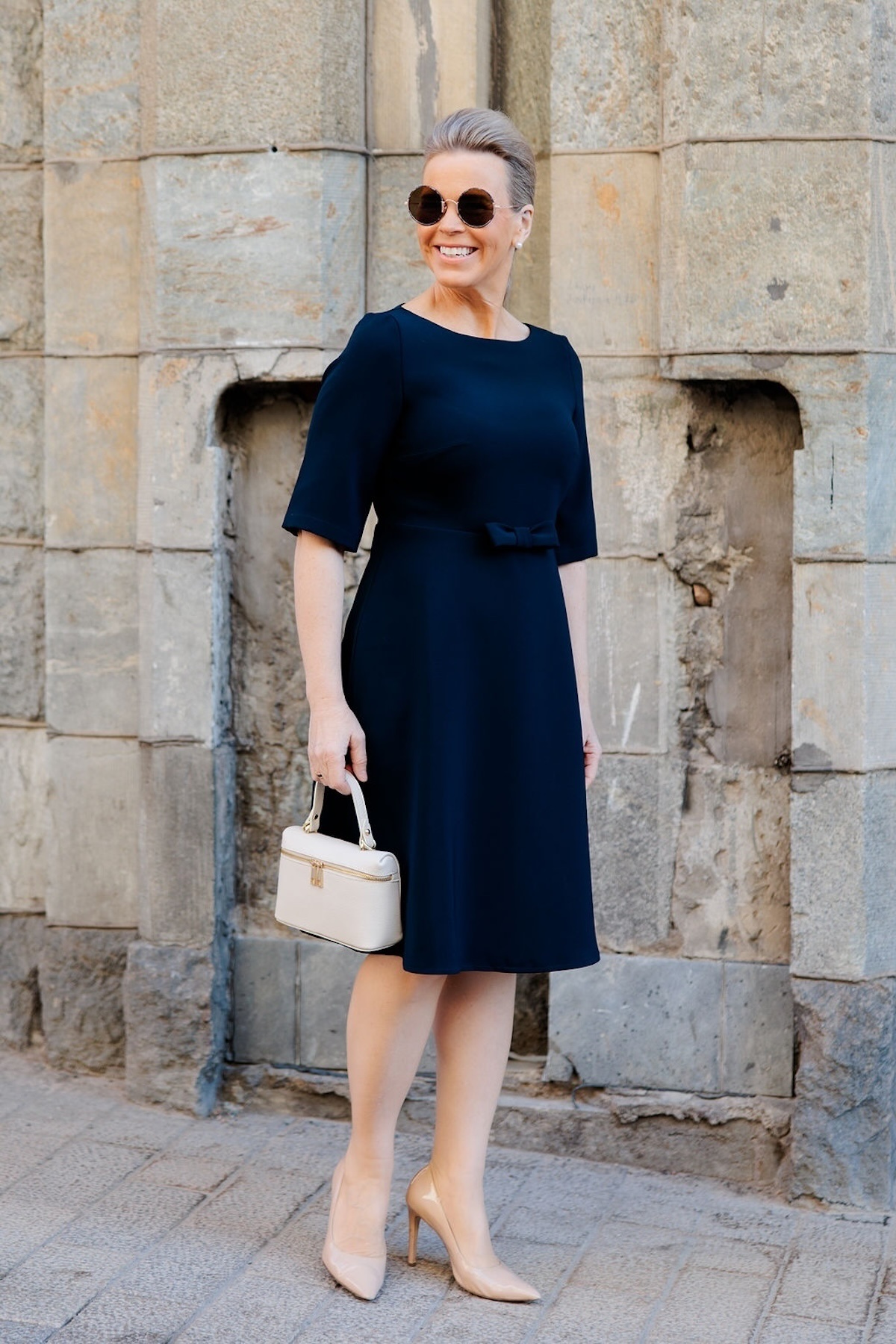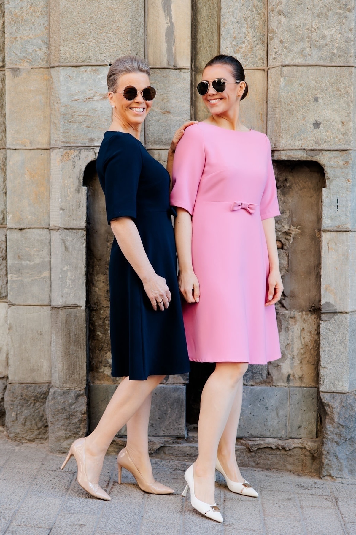 Doppwoman mekkomallistomme uusi mekkomalli on Lily. Lily on naisellinen malli ja toimii täydellisesti sekä A- että X-vartalolle. Lily mekossa on O-kaula-aukko. Hihat ylettyvät kyynerpäiden kohdalle. Mekko on slimmattu vyötäröön asti, jonka jälkeen helmaosa levenee alaspäin ja loppuu juuri polvien alapuolelle. Mekon edessä on rusetti. Mekon selässä on pitkä vetoketju eli mekko puetaan alakautta päälle. Katalla on mekosta päällä koko S ja Gabilla on koko M. Kata on 163 cm pitkä ja Gabi on 170 cm pitkä.
