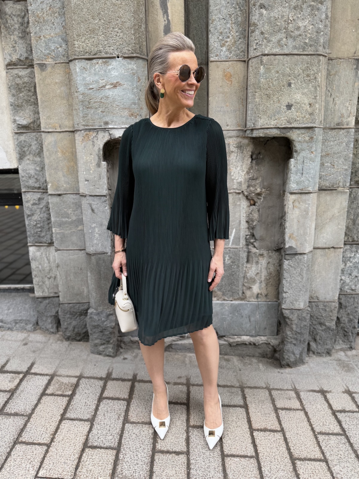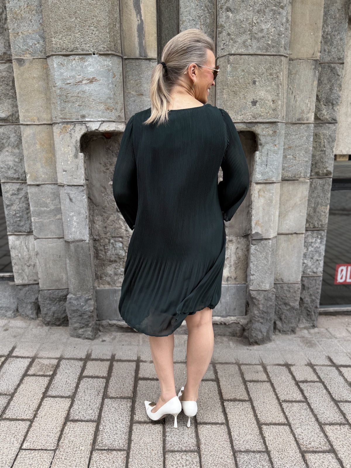 Ladina plise`mekko; tummanvihreä
