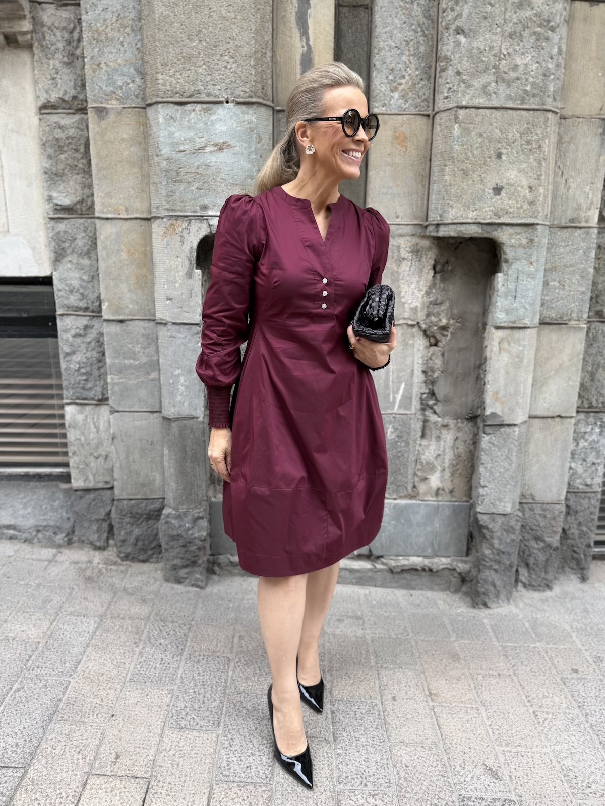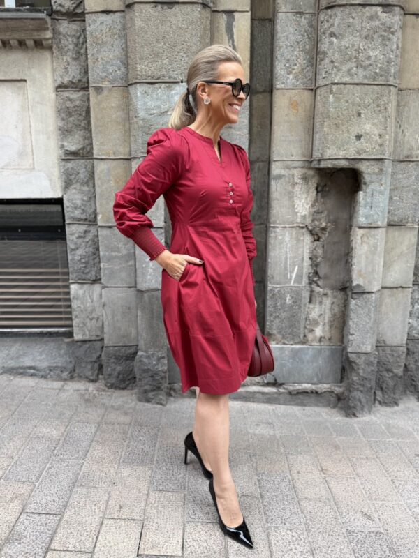Loretta mekko kuuluu suosittuun Antoinett sarjaan, josta löytyy monen suosikkimekko eli Pallomekko. Loretta mekossa on samanlainen malli kuin Pallomekossa eli se on slimmattu vyötärön kohtaan asti, jonka jälkeen helmaosa on pallomainen. Helmassa oleva kantti/sauma boostaa helman pallomaisuutta. Mekossa on O-kaula-aukko, joka muuttuu V-malliseksi edestä ja edessä on kauniit timanttinapit. Hihat ovat täyspitkät ja hihansuissa on leveät kumilankaresorit. Loretta mekko on lyhkäisempi kuin klassinen Pallomekko. Katalla on Loretta mekosta päällä koko XS.