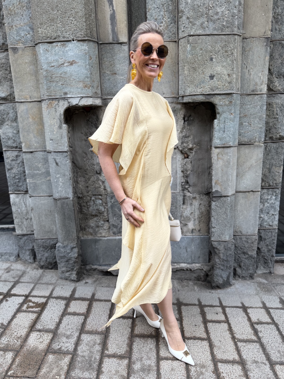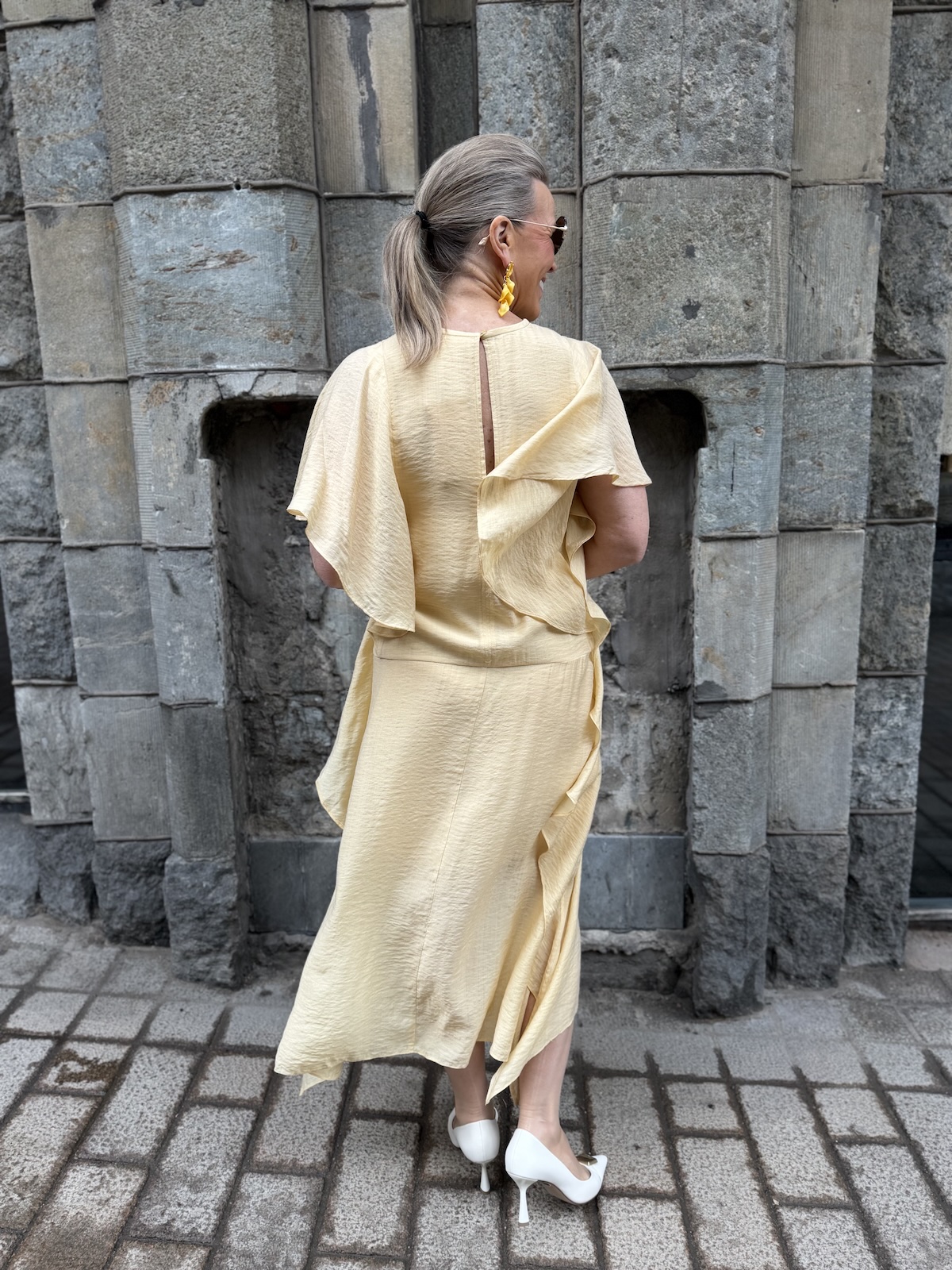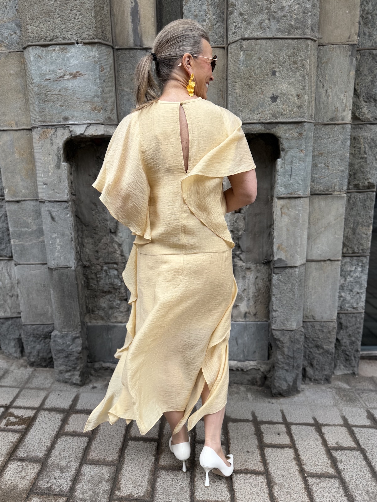Lyla Fest sarjan mekot ovat viehättäviä. Midimekossa on O-kaula-aukko ja nskassa on halkio ja nappi. Halkio ei on niin syvä, että rintaliivien nauha näkyisi. mekon sivuissa on kauniit liehukkeet jotka tipahtavat myös käsivarsien päälle. Mekko levenee aavistuksen alaspäin ja loppuu lähelle nilkkoja. mekon liehukesivut ovat aavistuksen pidemmät kuin mekko on. Mekon edessä ja takana on vuori, vuori on lyhkäisempi kuin päällikangas. Katalla on mekosta päällä koko 34.