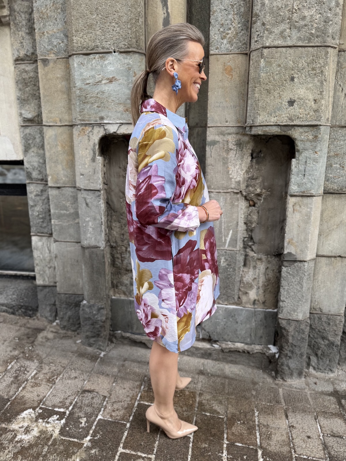 Magna Greece polvimittainen mekko; sininen kukkakuvio