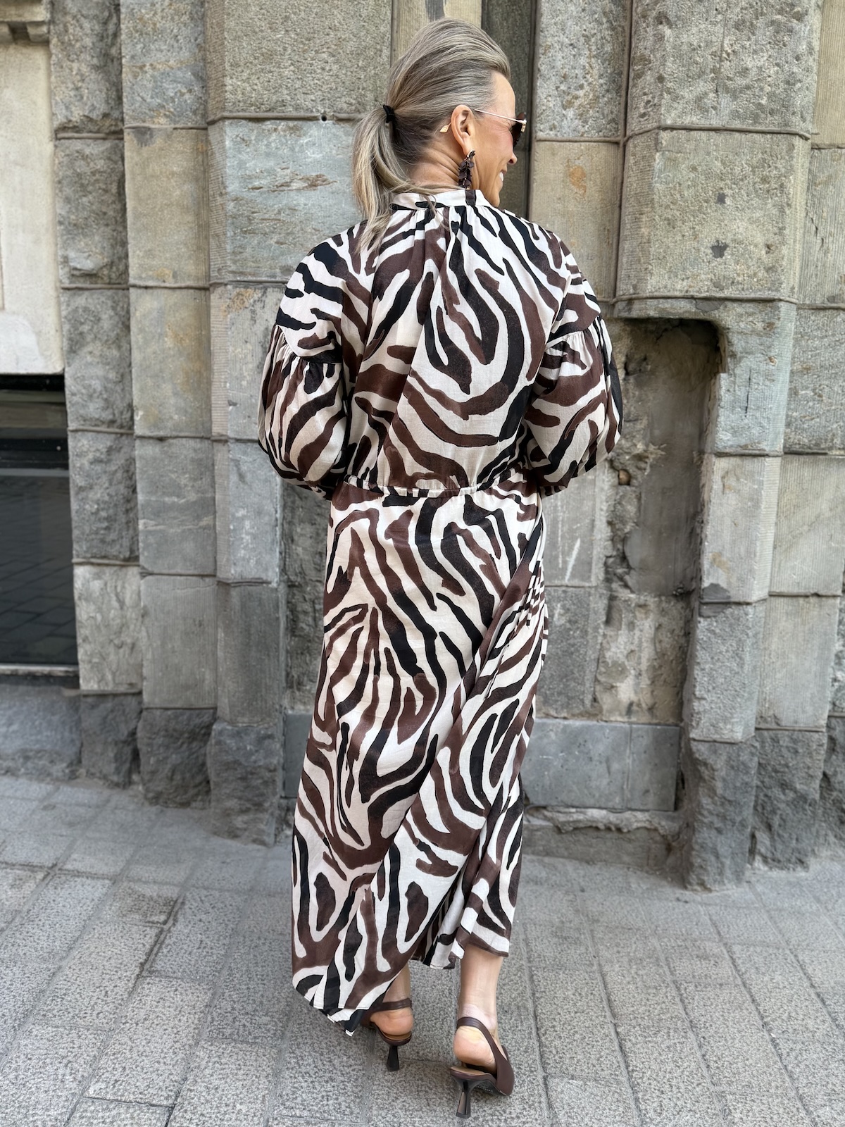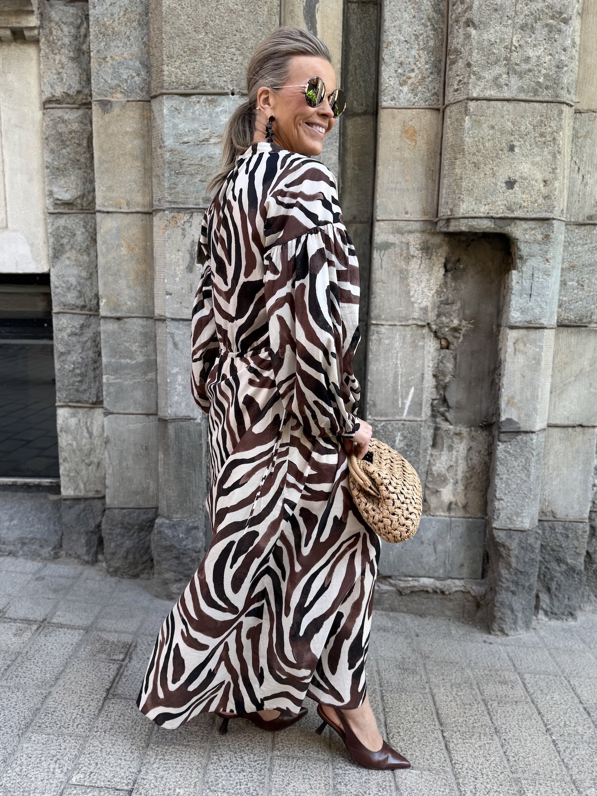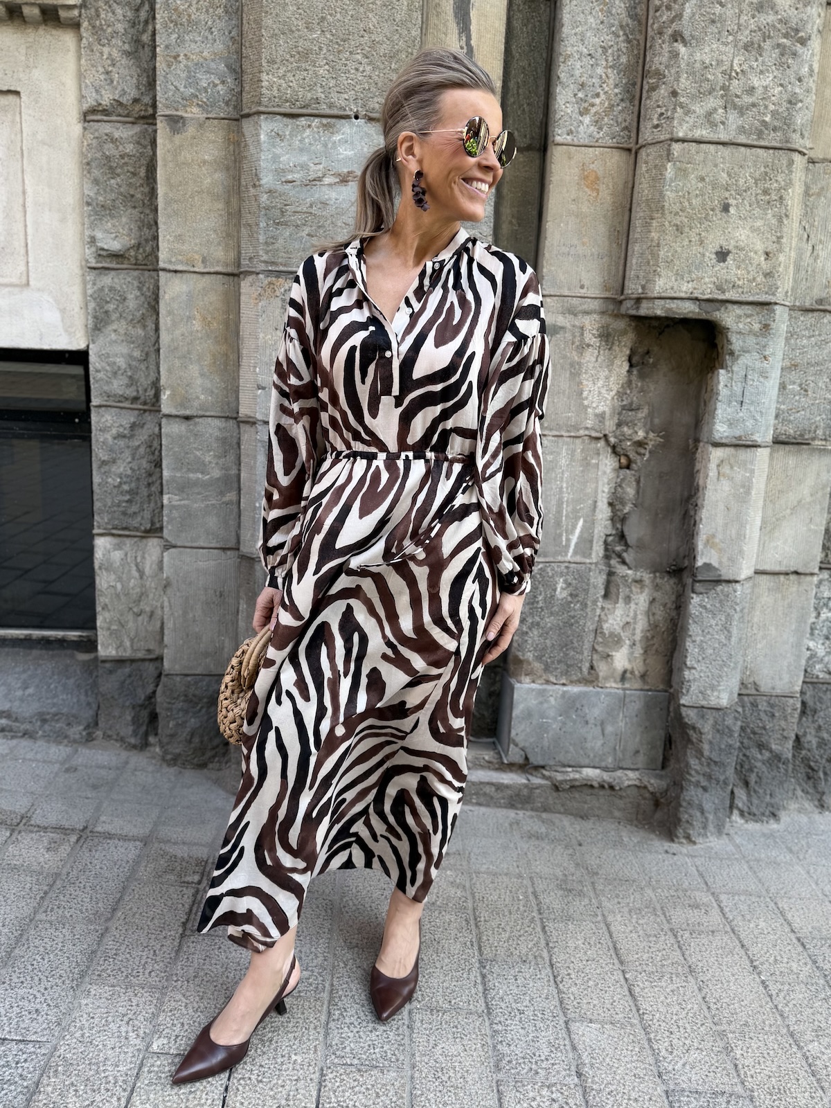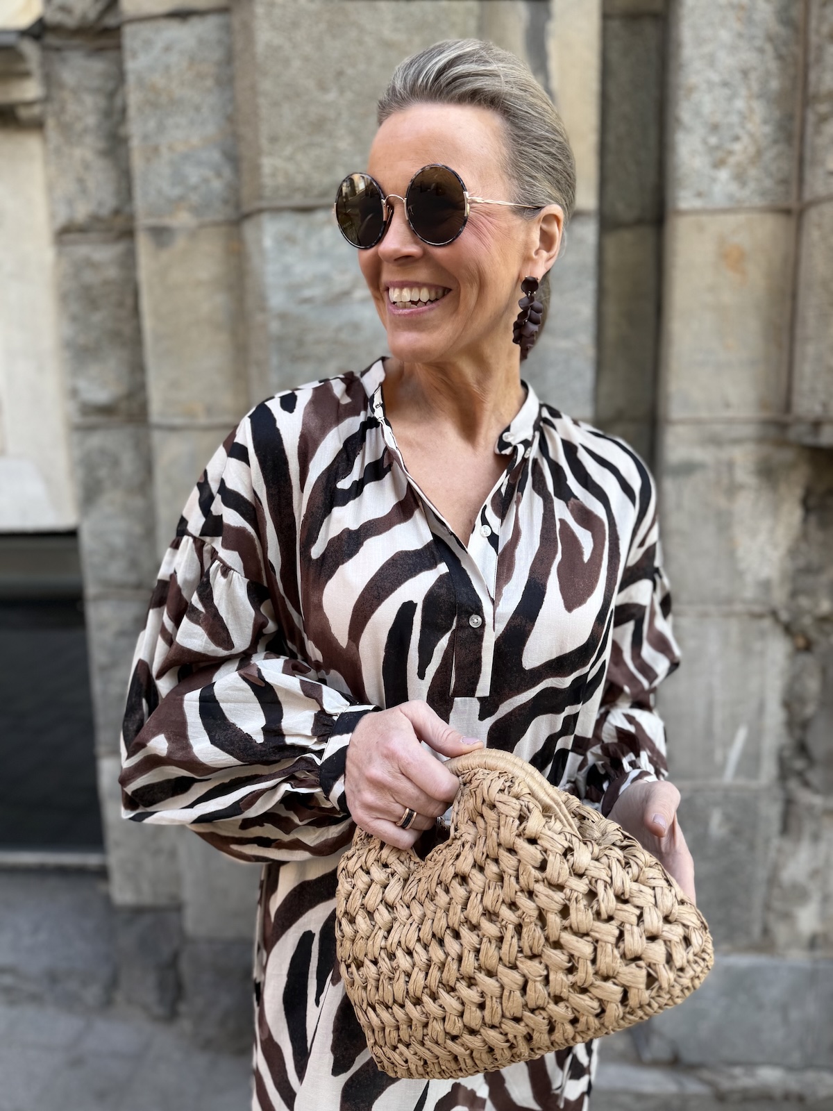 Rosalie midimekko on ohuehko ja ilmava puuvillainen mekko. Mekossa on O-kaula-aukko ja muutamia nappeja. Olkasaumat on laskettu alas ja hihat ovat pussimaiset kantilla rannekkeissa. Mekko on malliltaan aavistuksen alaspäin levenevä ja vyötärön kohdalla on nyörikuja. Nyöriä voi kiristää oman mielensä mukaan. Ne voi jättää löysälle eli mekko liikkuu vapaasti vartalon ympärillä tai vetäistä napakasti vyötärölle sitä korostaen. Katalla on mekosta päällä koko 34. Mekko on reilua kokoa.