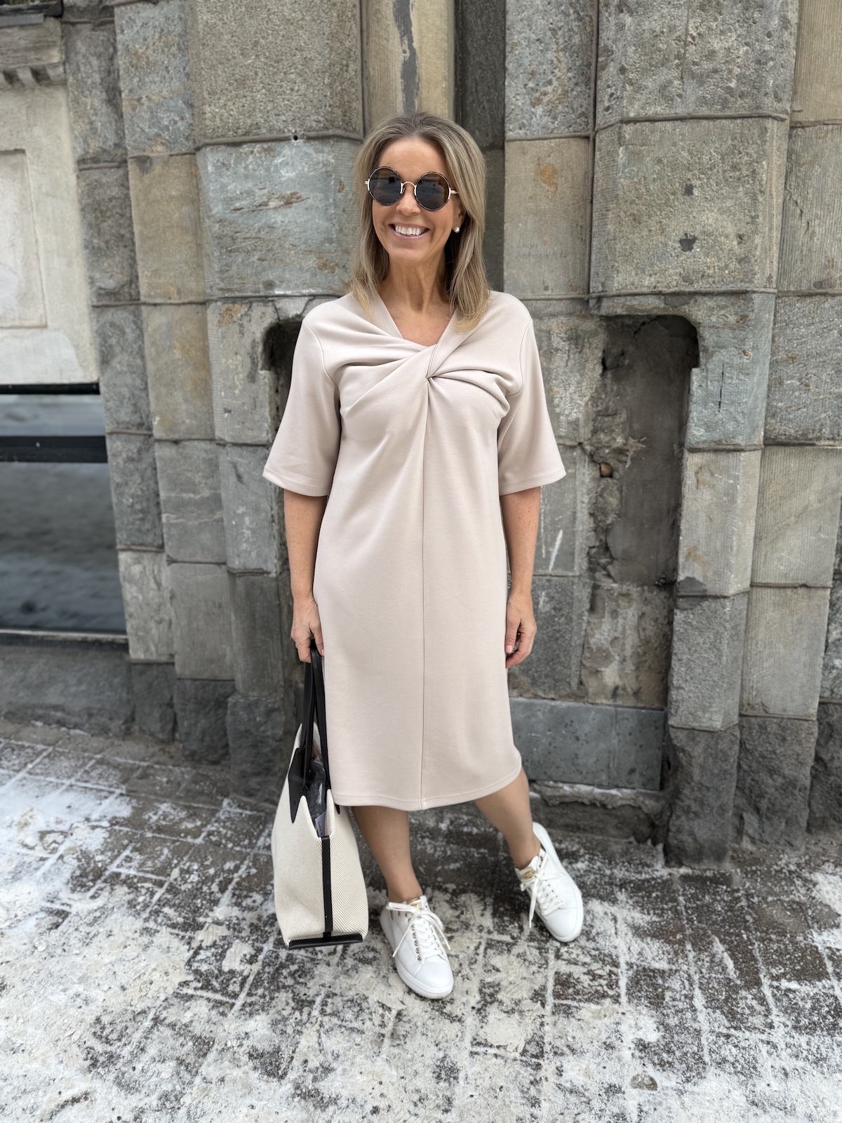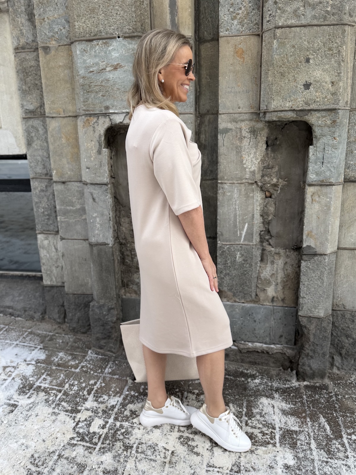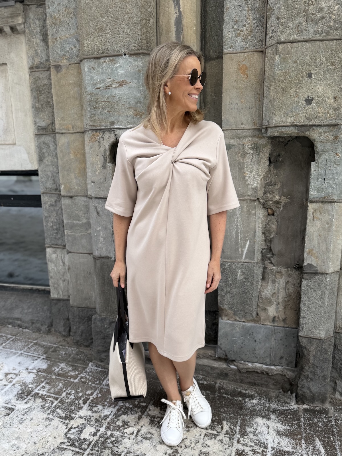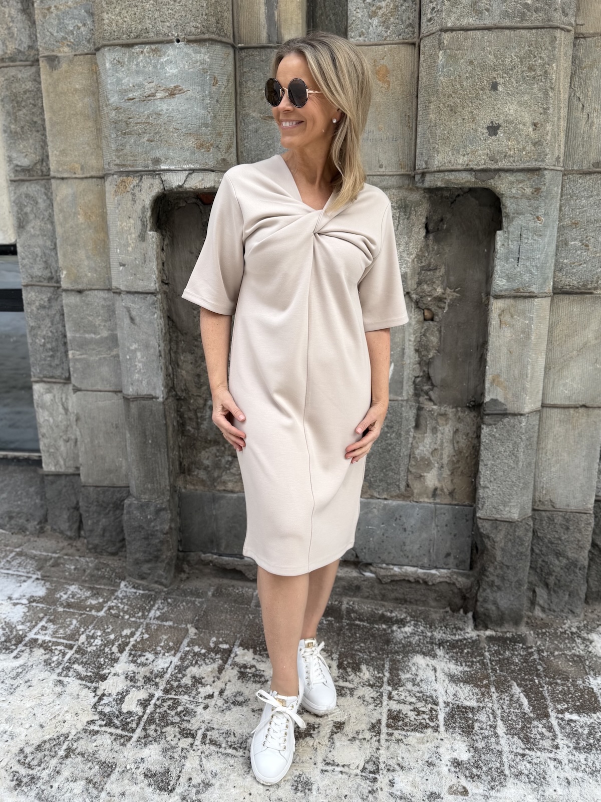 Marigold kuuluu ihanaan ”Pumpulia iholle” olevaan sarjaan! Marigold mekossa on kaunis kaula-aukko. kaula-aukon alapuolella on solmuke, joka onkin mekon kaunis yksityiskohta. Hihat ovat löysähköt ja ne ylettyvät kyynerpäiden kohdalle. Malliltaan mekko levenee minimaalisesti alaspäin ja loppuu polvien alapuolelle. Katalla on mekosta päällä koko XS. Mekko on reilua kokoa, joten suosittelemme ottamaan mekosta yhden koon pienemmän kuin normaalisti käyttää. Katso mekon mitat.