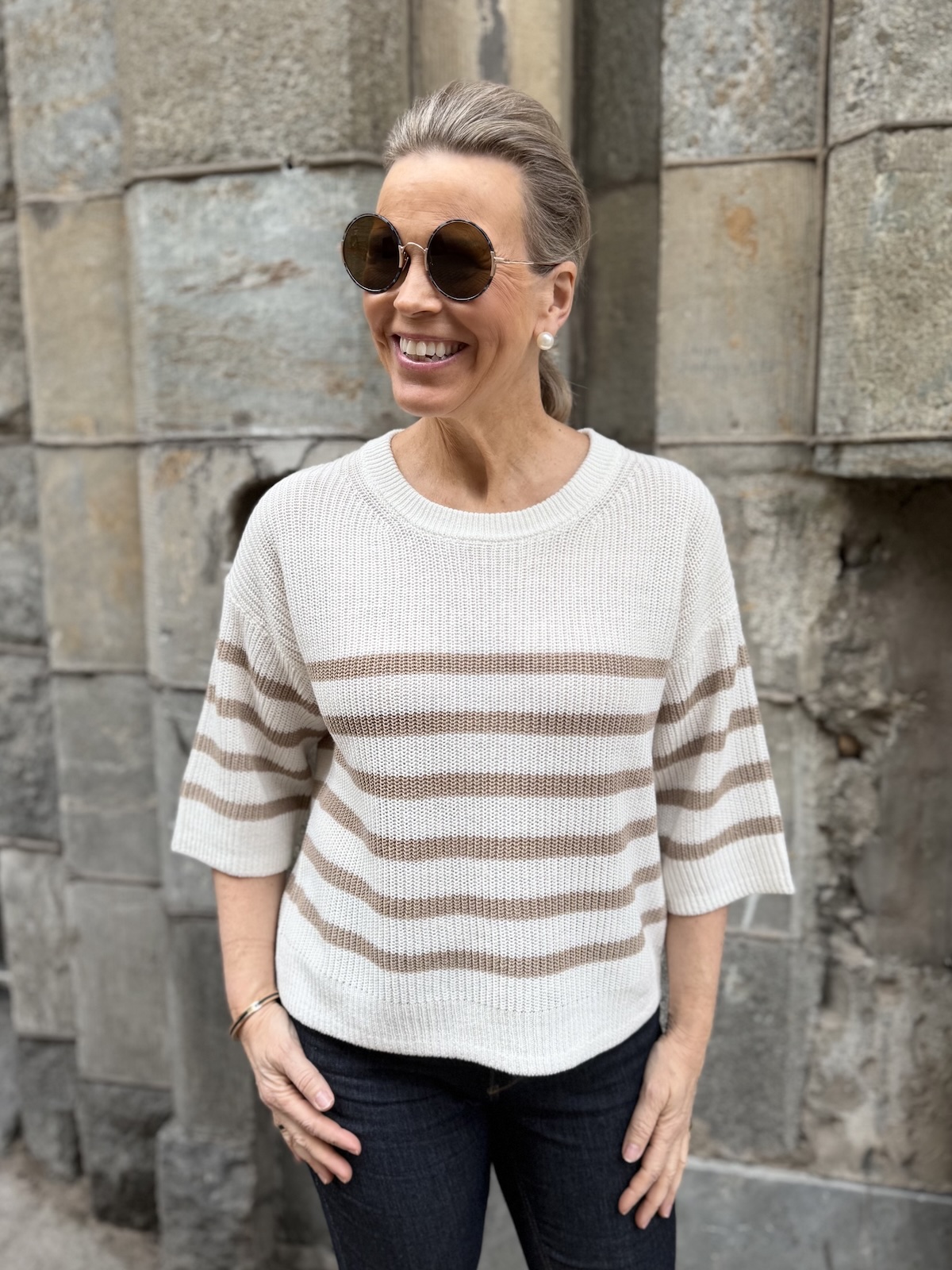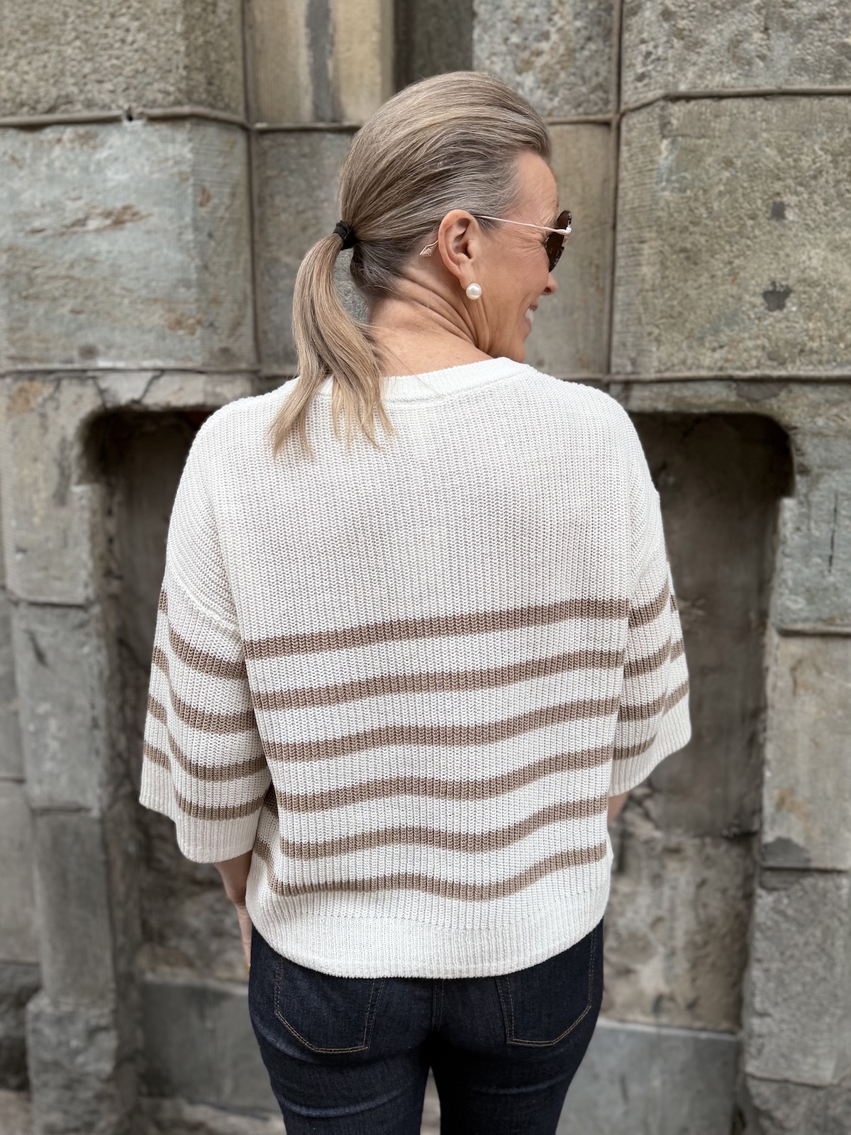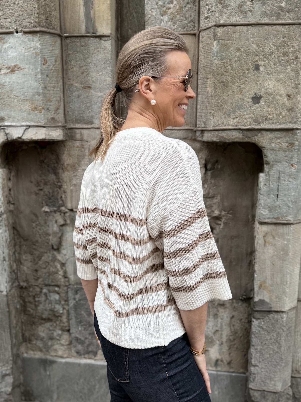 Aliza pellava/puuvilla neule; vaalea/beige raita