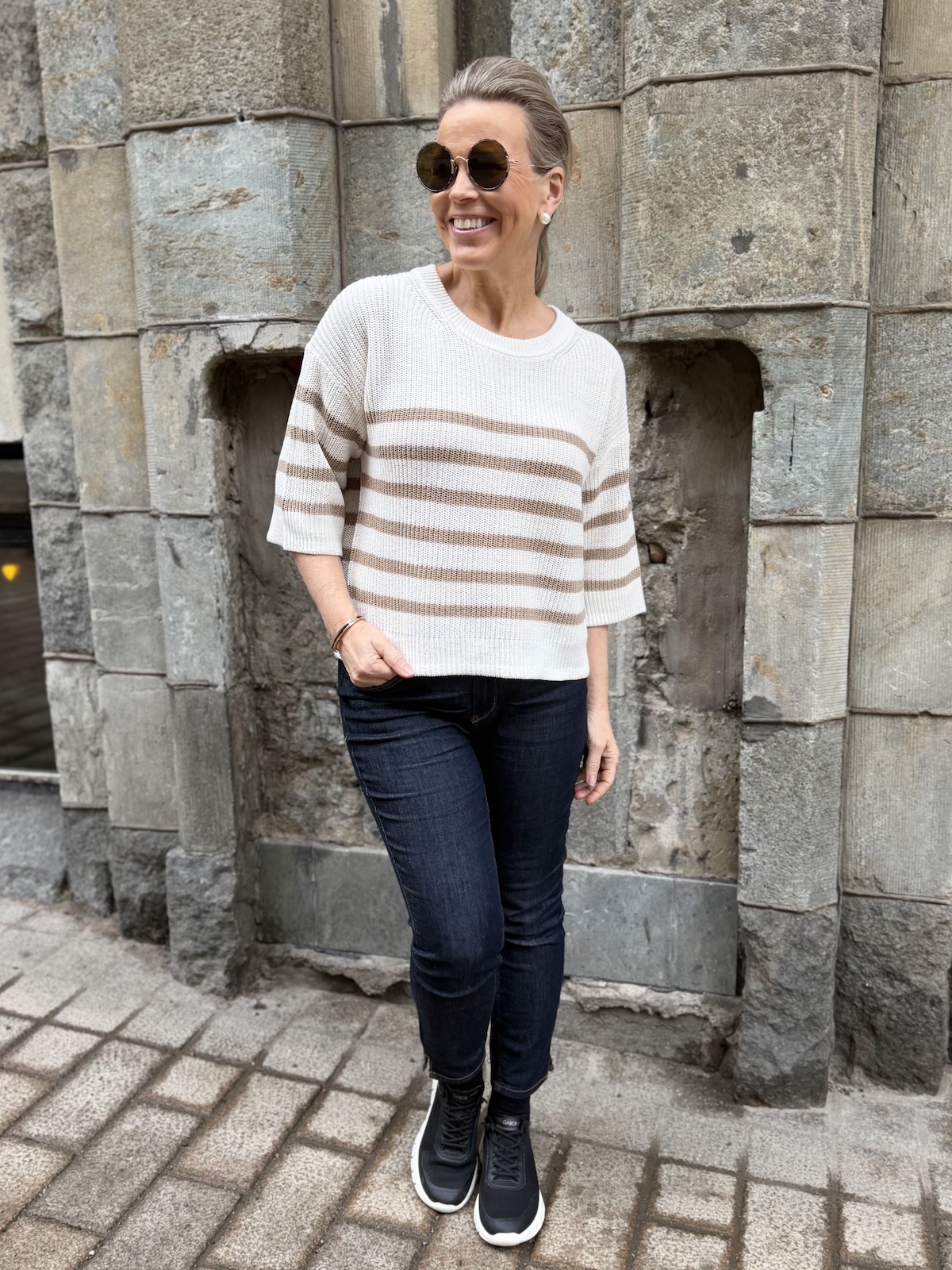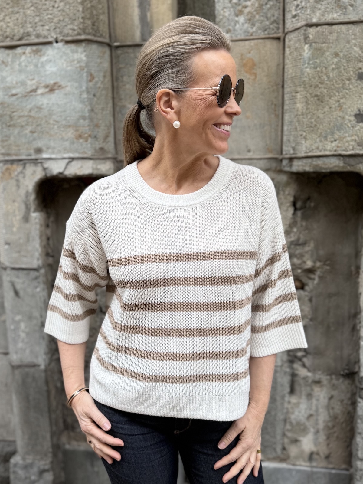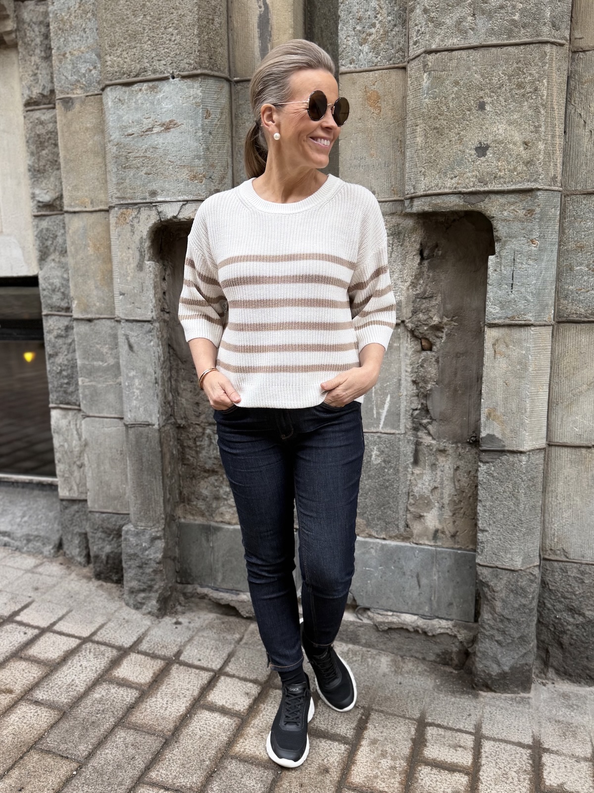 Aliza pellava/puuvilla neule; vaalea/beige raita