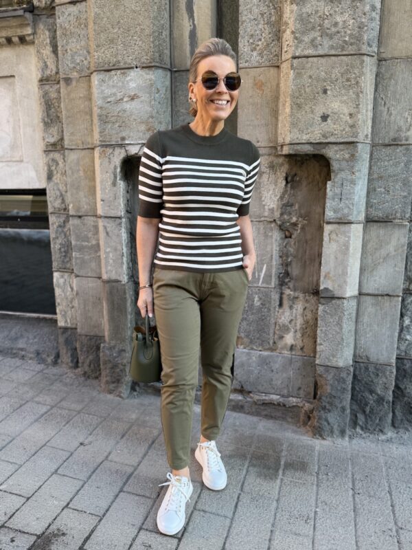 Kaulukselliset neuleet ja paidat ovat nyt POP! Neuleen edessä on napit ja hihat ovat taas loistavan pituiset, kun ne ylettyvät kyynerpäiden yläpuolelle. malliltaan neule on suora ja sen helmassa on resori, joka toistuu hihansuissa. Minulla on neuleesta päällä koko S. Neule joustaa ja alla olevat mitat ovat ilman venytystä. Neule vastaa normaalia kokoa.