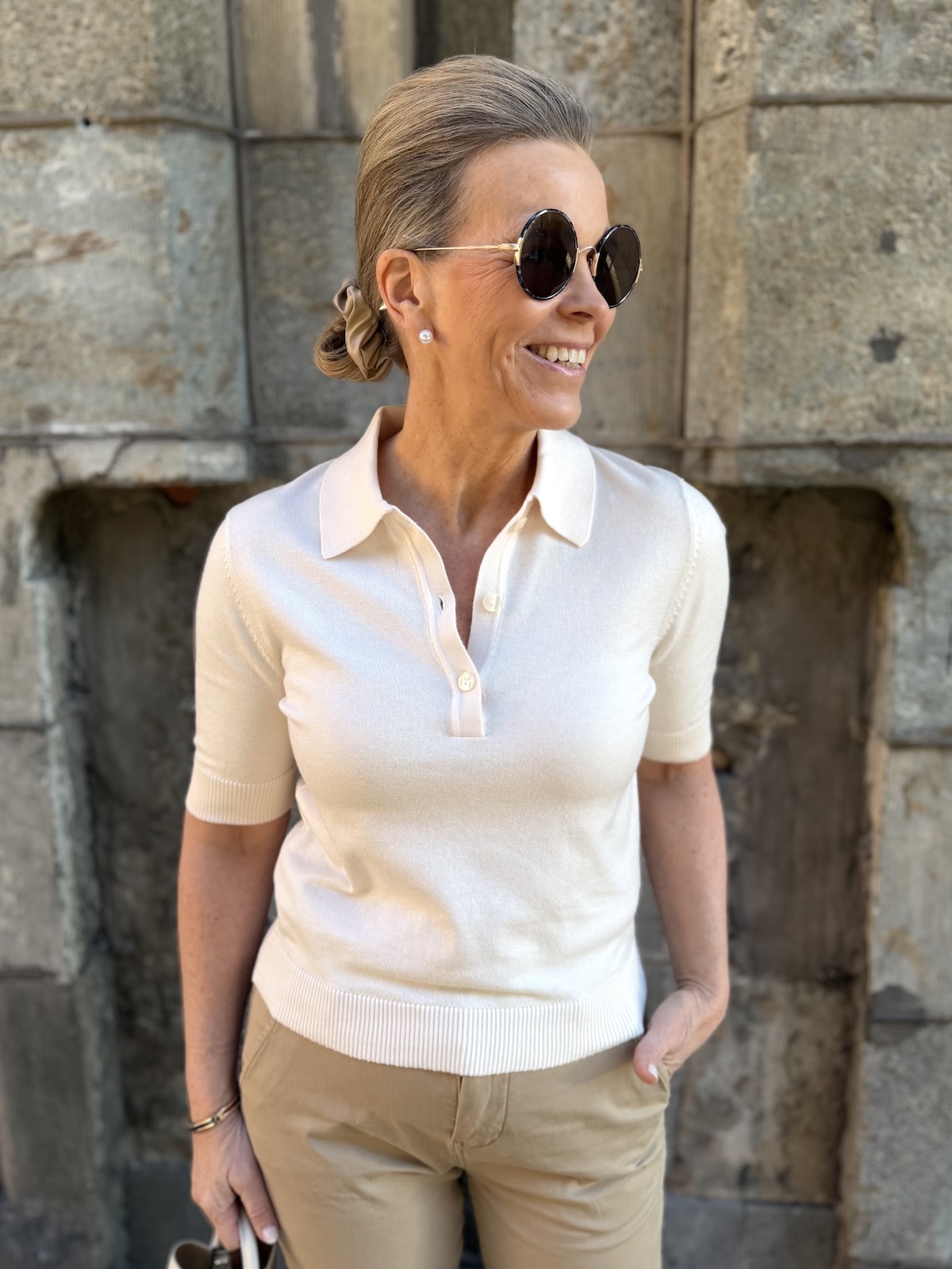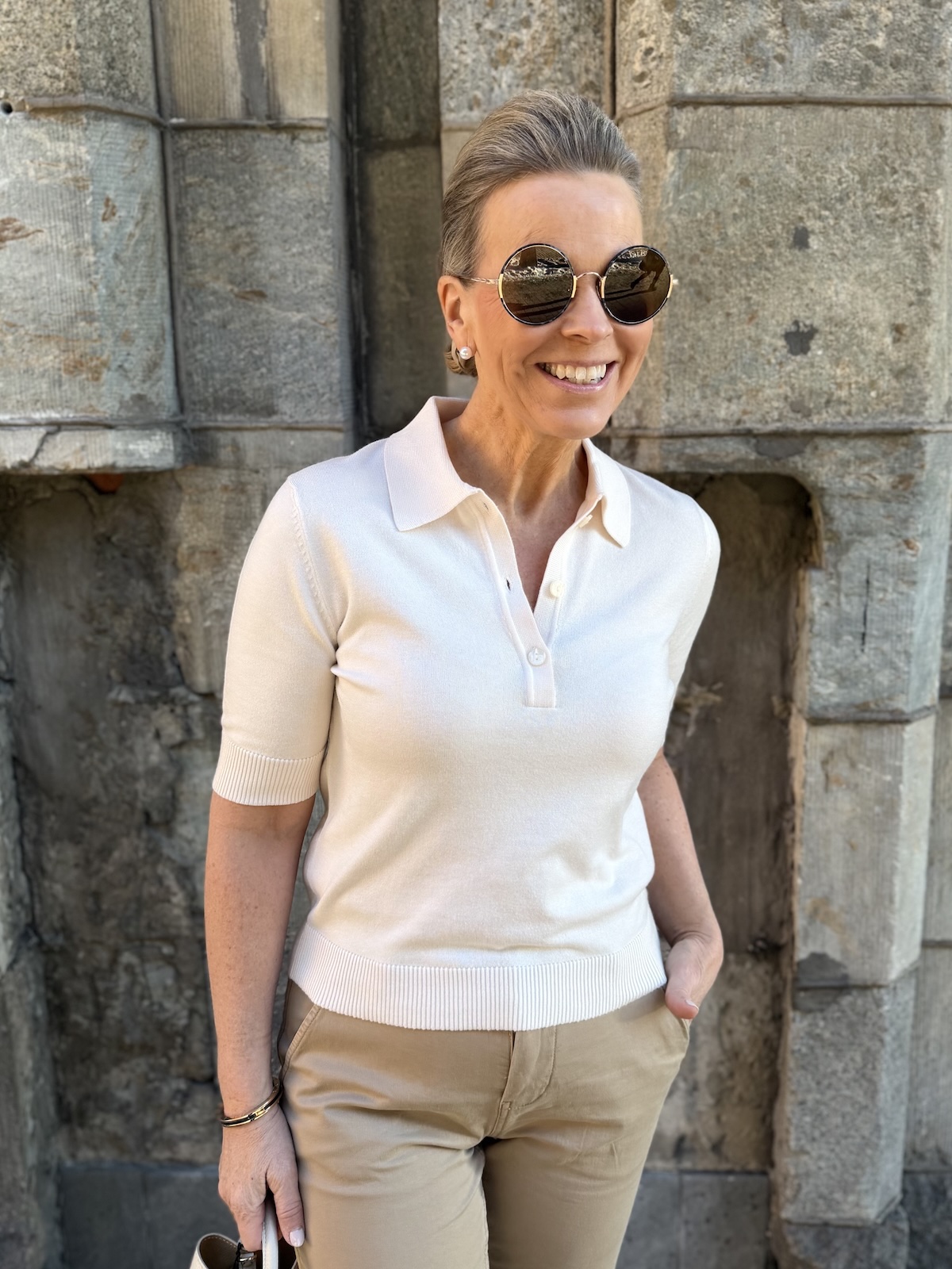 Anetti kauluksellinen neule; luonnonvalkoinen