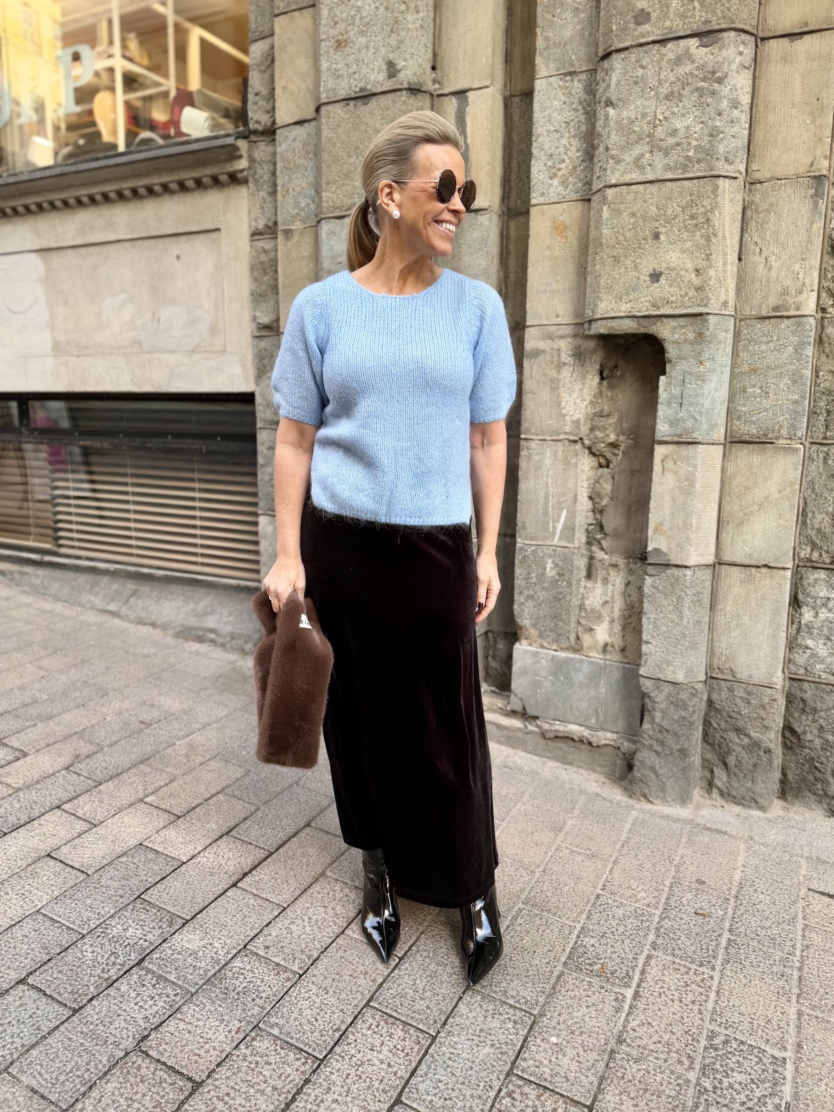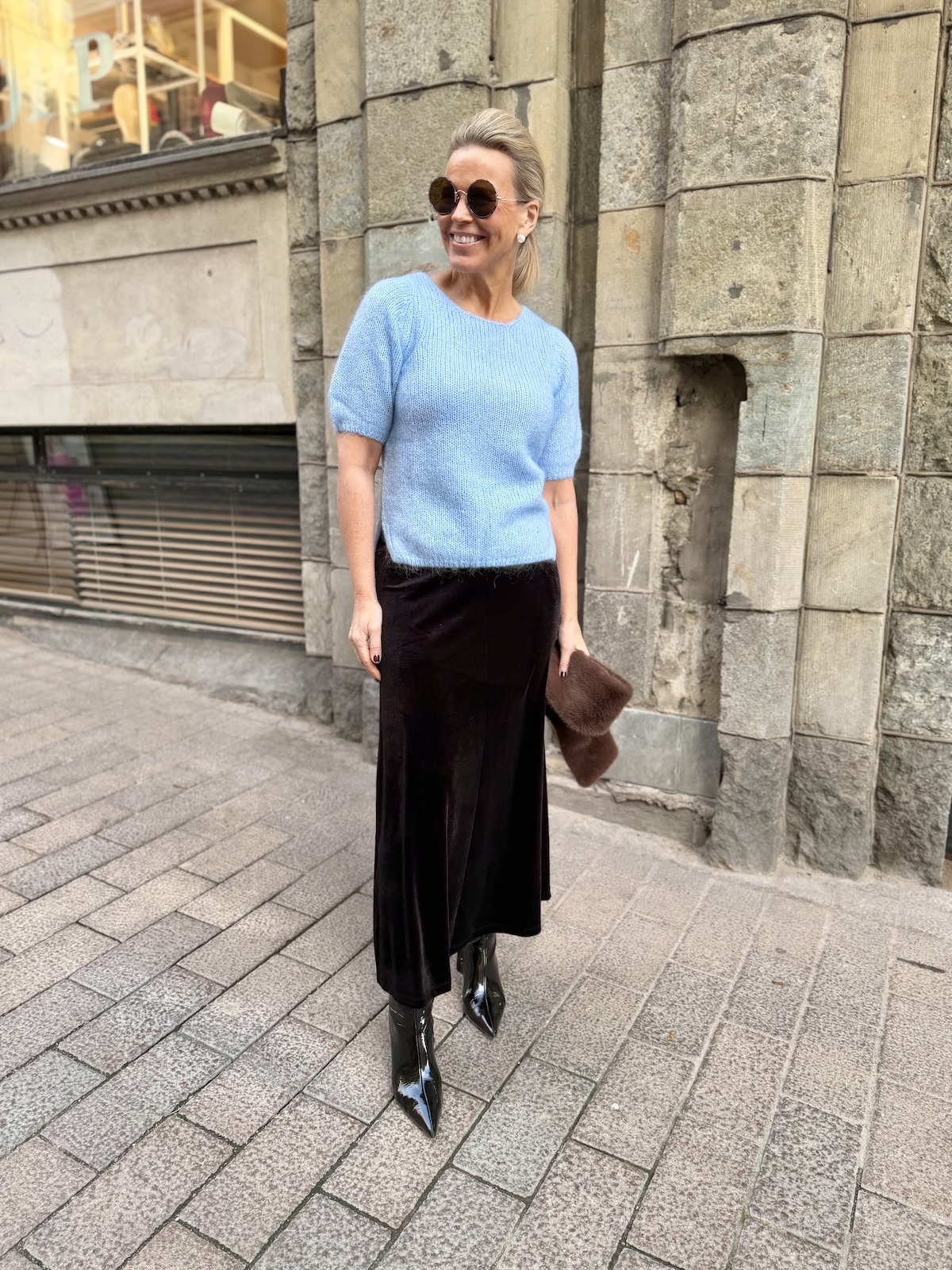 Cemeille neule on kaunis ja herkullinen. Neule on ilmava ja kevyt. Neuleessa on O-kaula-aukko ja hihat, jotka ylettyvät kyynerpäiden kohdalle. malliltaan neule on suora ja se loppuu juuri lonkkaluiden alapuolelle. Neuleen sivuissa on halkiot. Katalla on päällä neuleesta koko S/M.