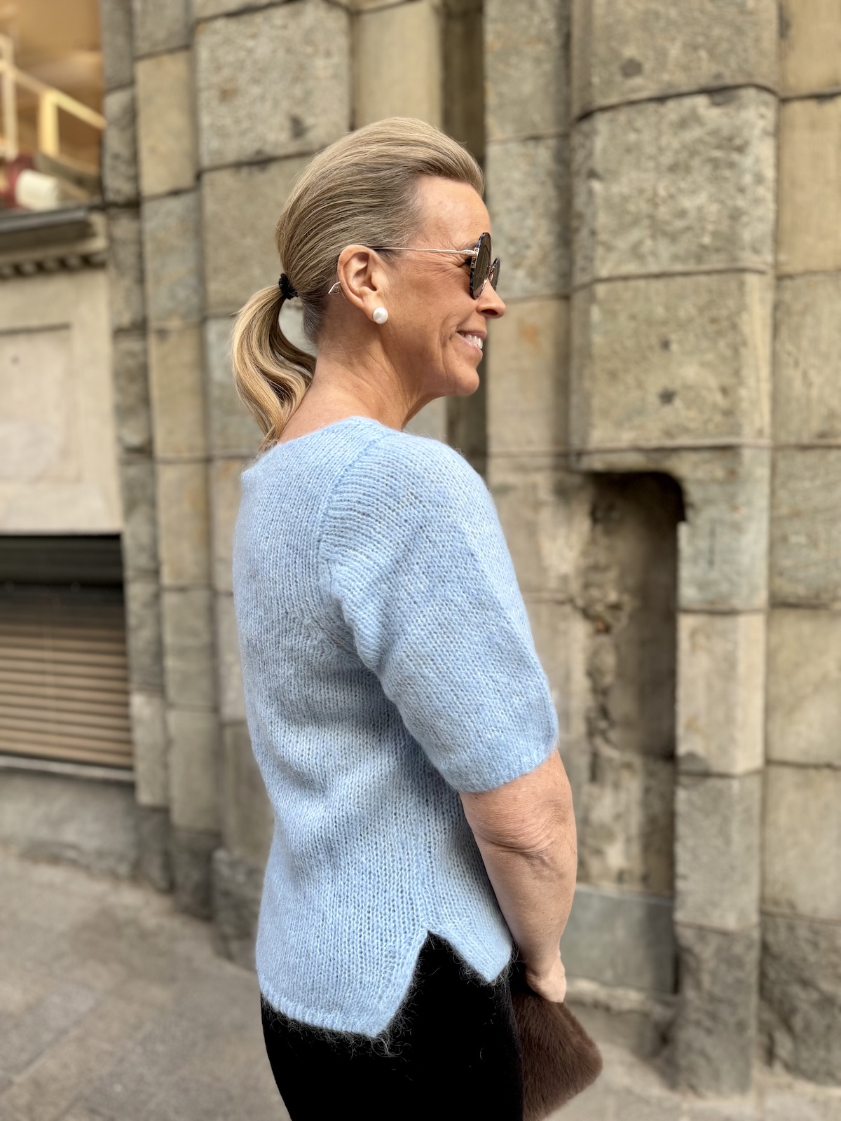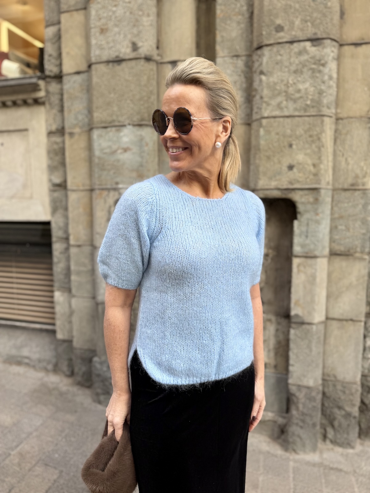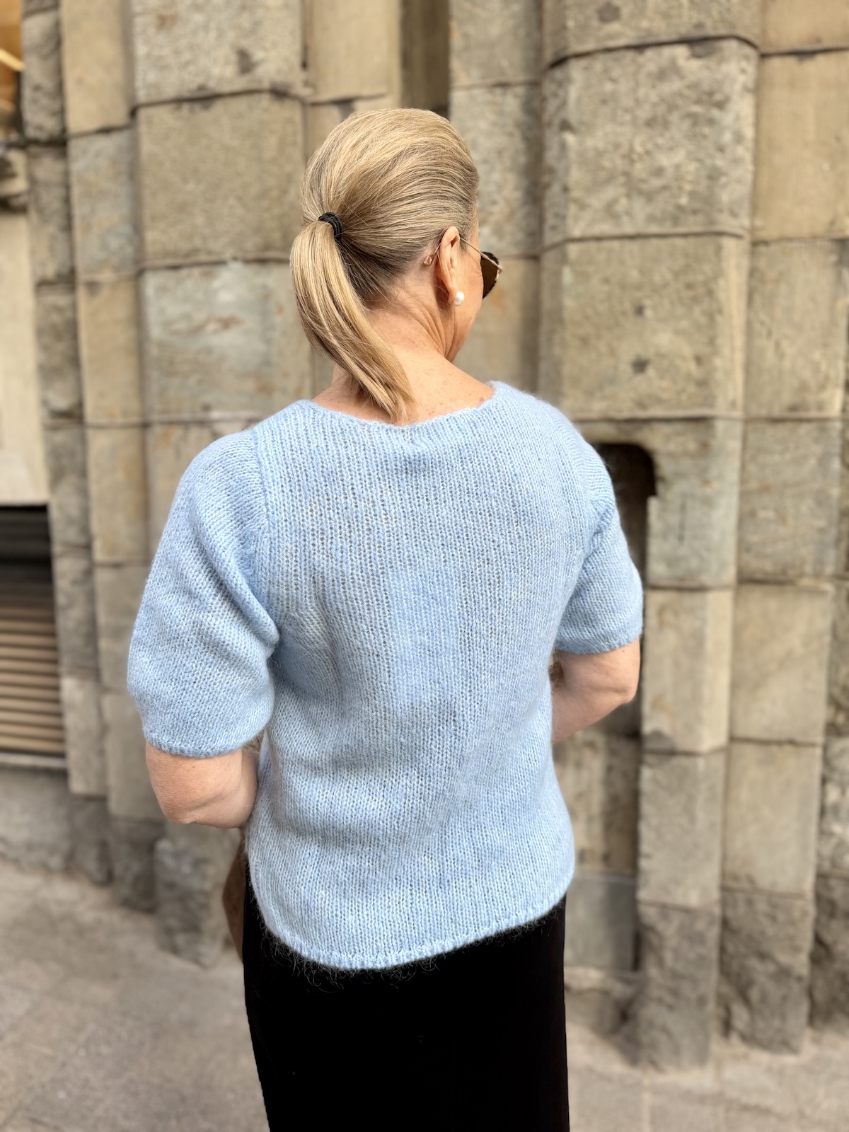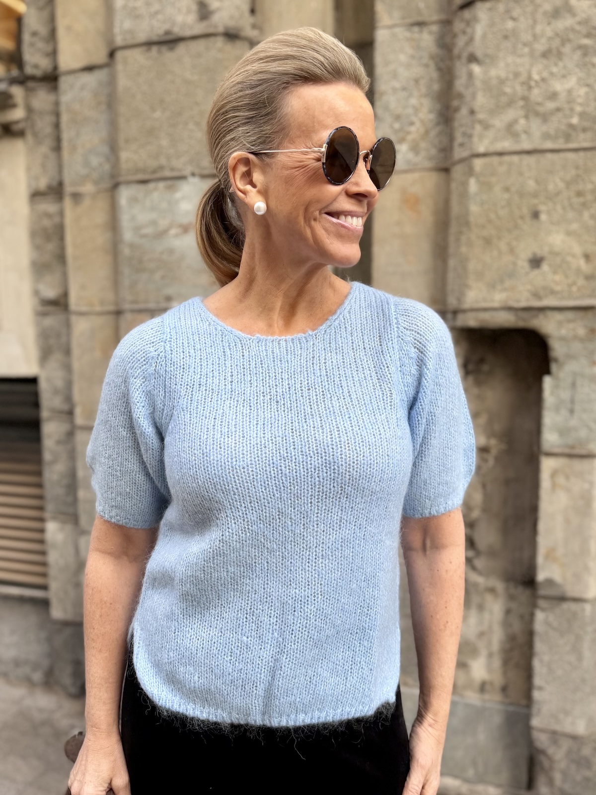 Cemille lyhythihainen neule; vaaleansininen meleerattu