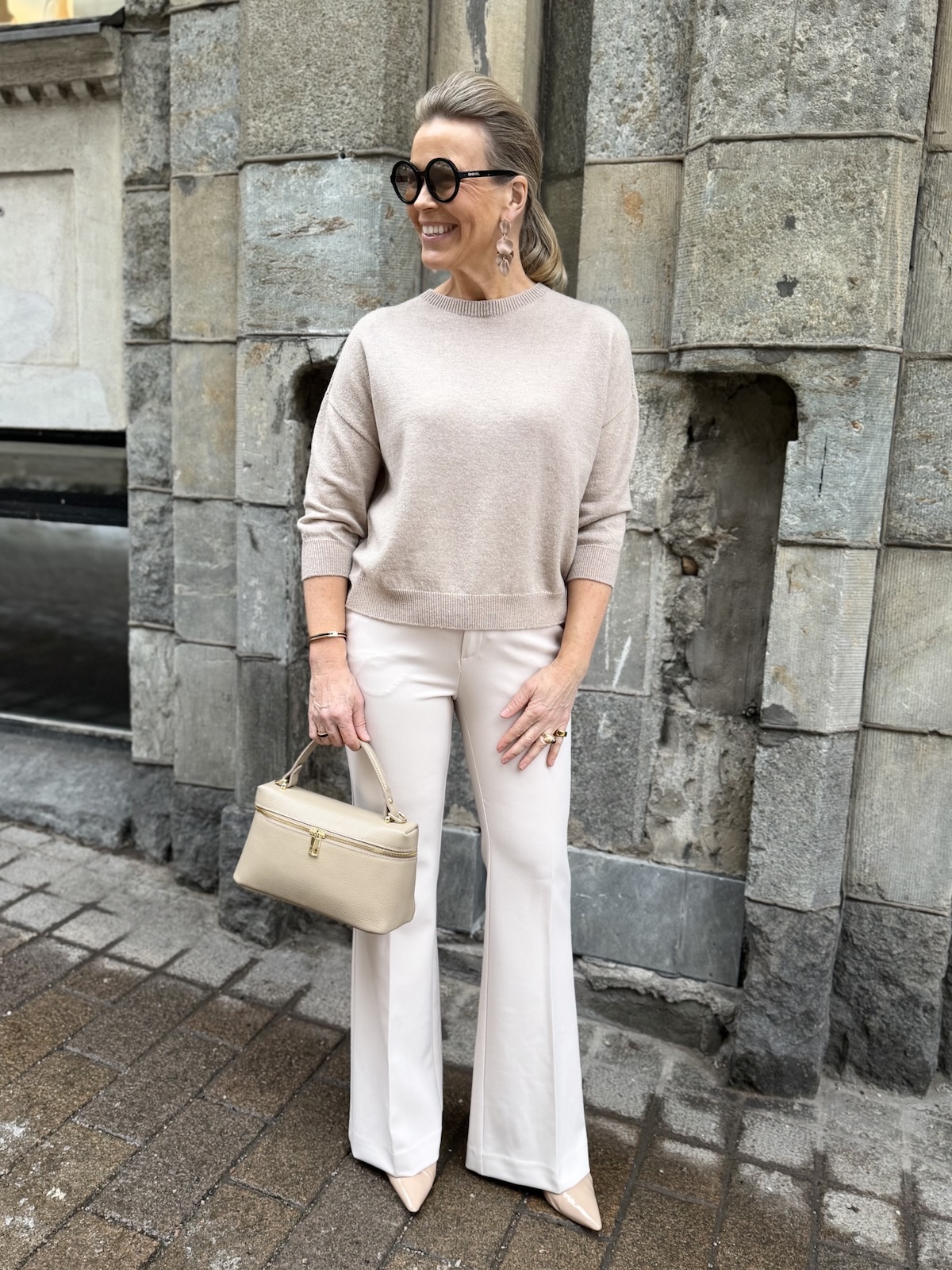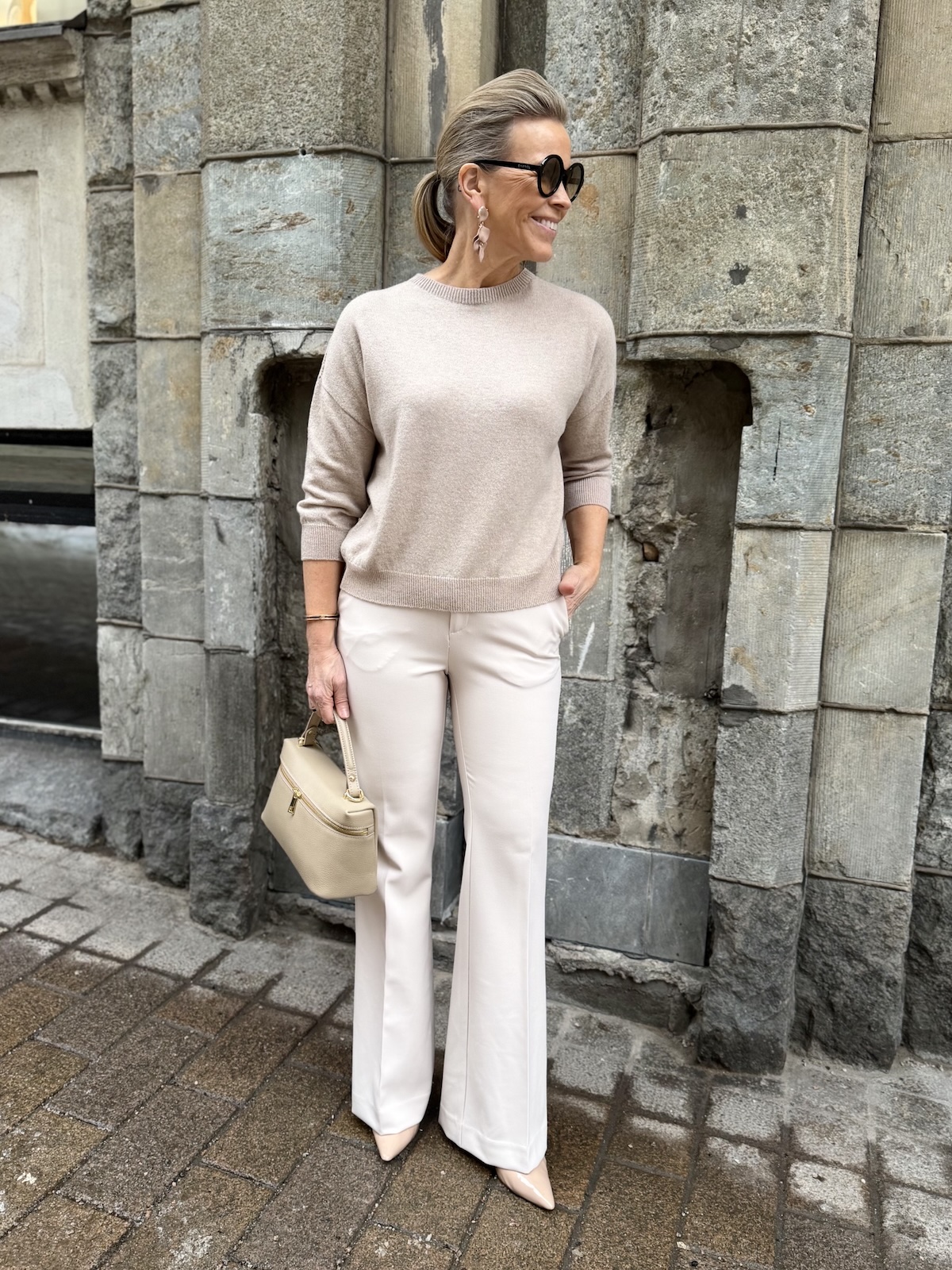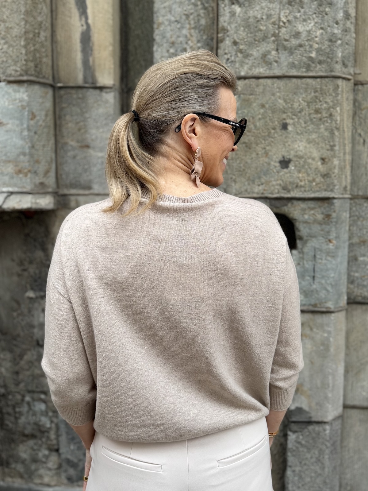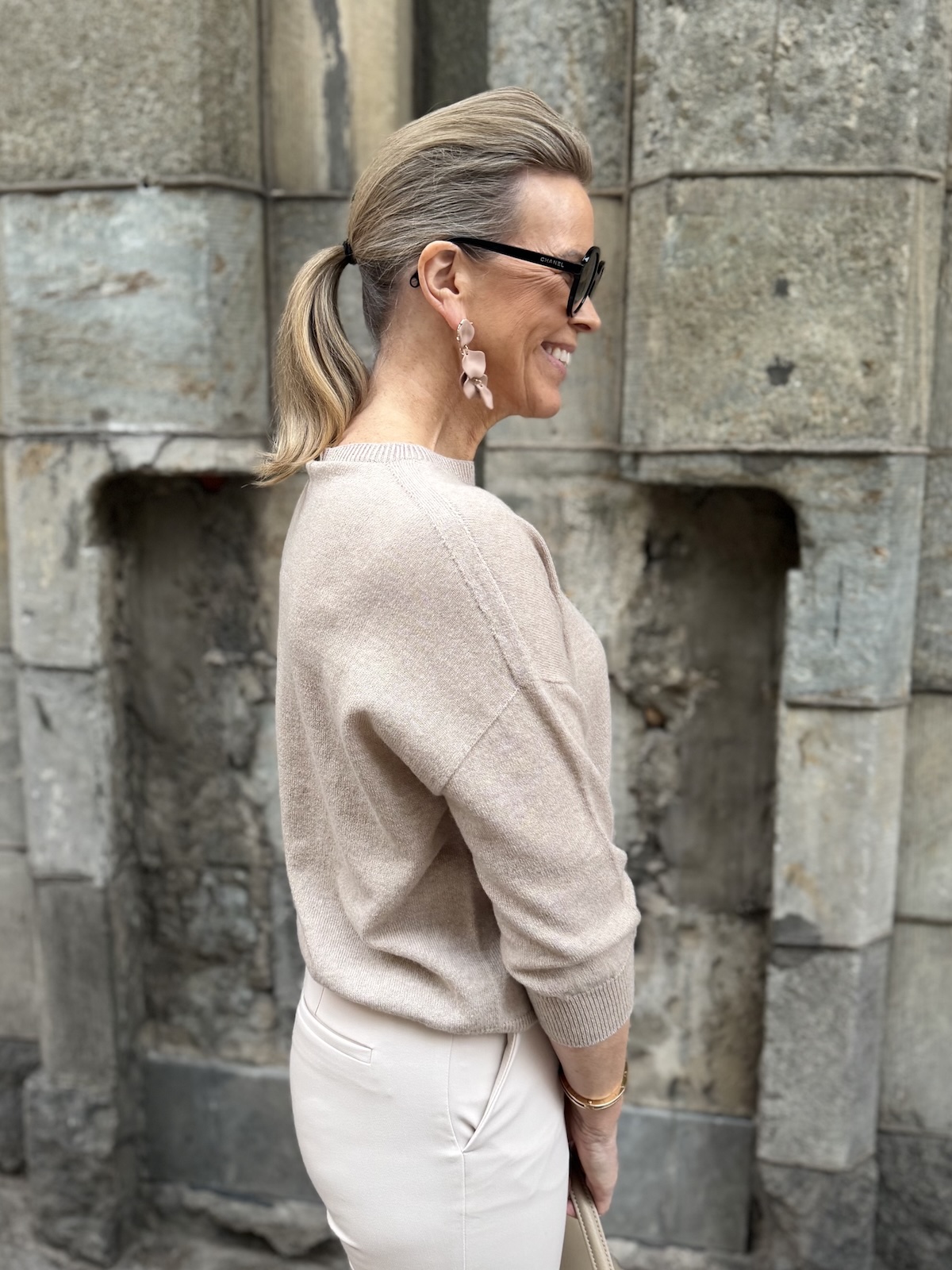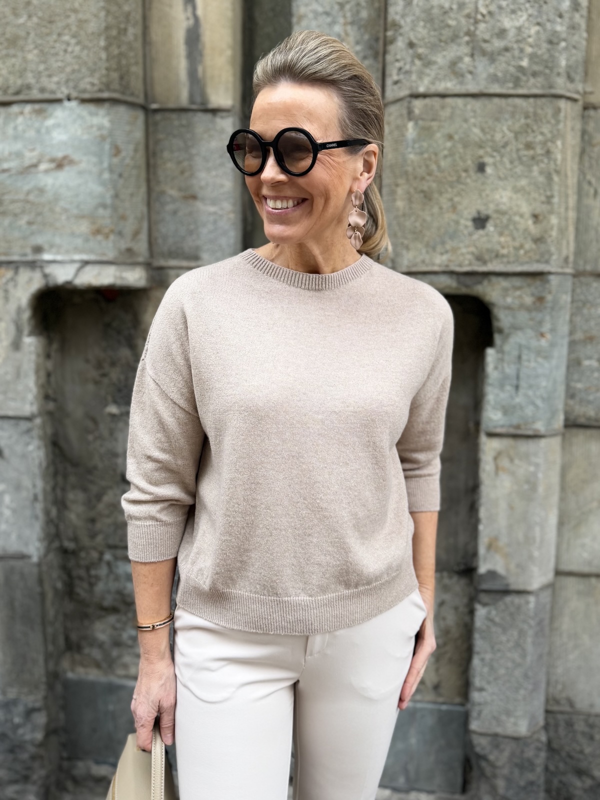 Lasal virginvilla neule 3/4 hihalla; beige melerattu