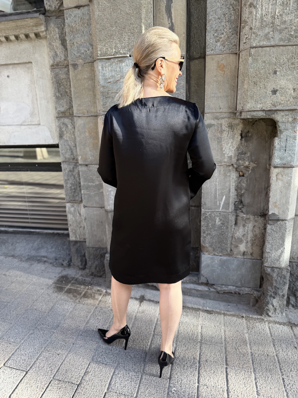 Liva on pelkistetty mekko, jossa on kaunis veneen muotoinen kaulus. Hihat ovat täyspitkät ja hihoissa on pitkähköt halkiot, jotka keventävät mekon lookkia. Mekko levenee kevyesti alaspäin ja loppuu polvien kohdalle. Mekon sivuissa on taskut. Mekon materiaalia on hieman paksumpaa ja tykympää, mutta ei kovaa, materiaalia. Katalla on mekosta päällä koko XS. mekko on reiluhkoa kokoa.