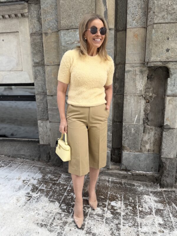 Mala on valloittava paita. Paita on super pehmoinen ja joustava päällä. Paidassa on pörrölankainen pinta. Kaulus on O-mallinen ja hihat ylettyvät kyynerpäiden yläpuolelle. Malliltaan paita on suora ja se ylettyy lantiolle. Katalla on paidasta päällä koko S. Vaikka paita joustaa, emme suosittele ottamaan siitä yhtään pienempää kokoa kuin normaalisti käyttää.