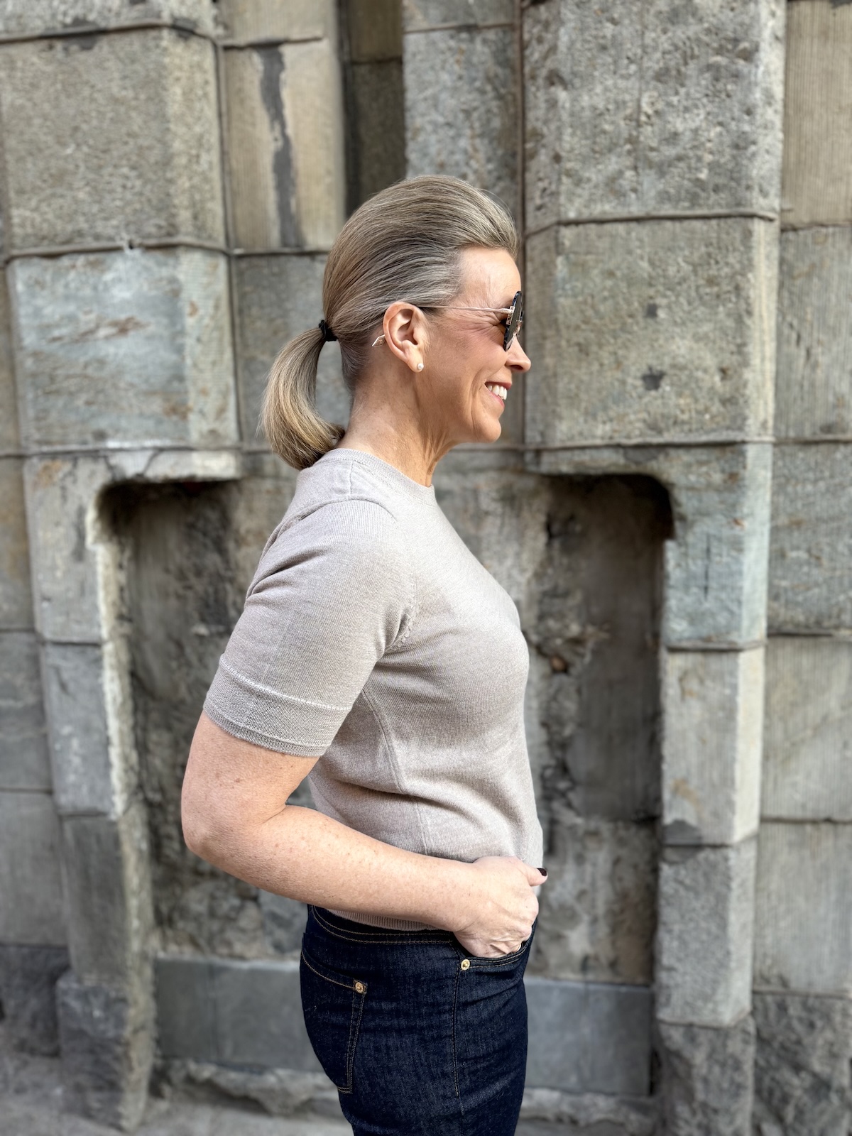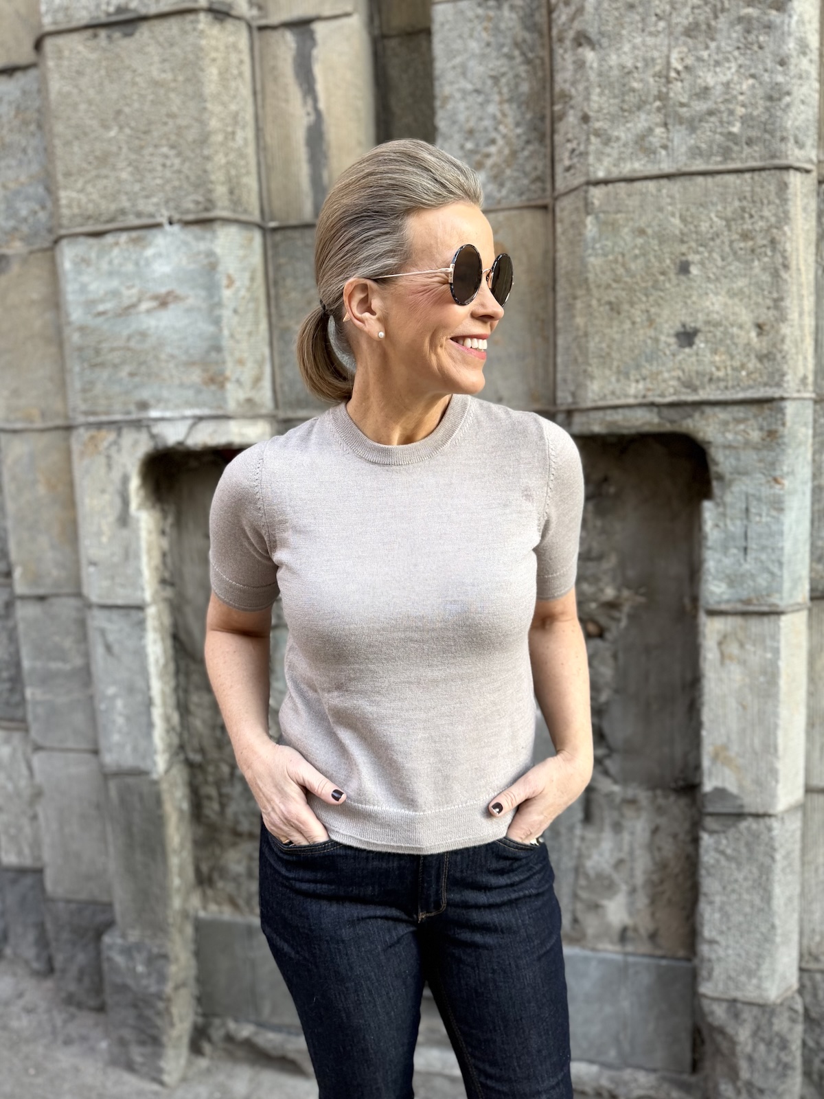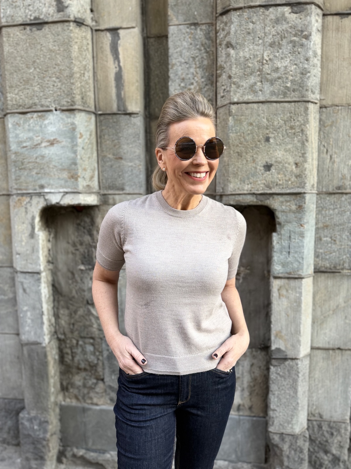 Natanya lyhythihainen neule; cafe latte