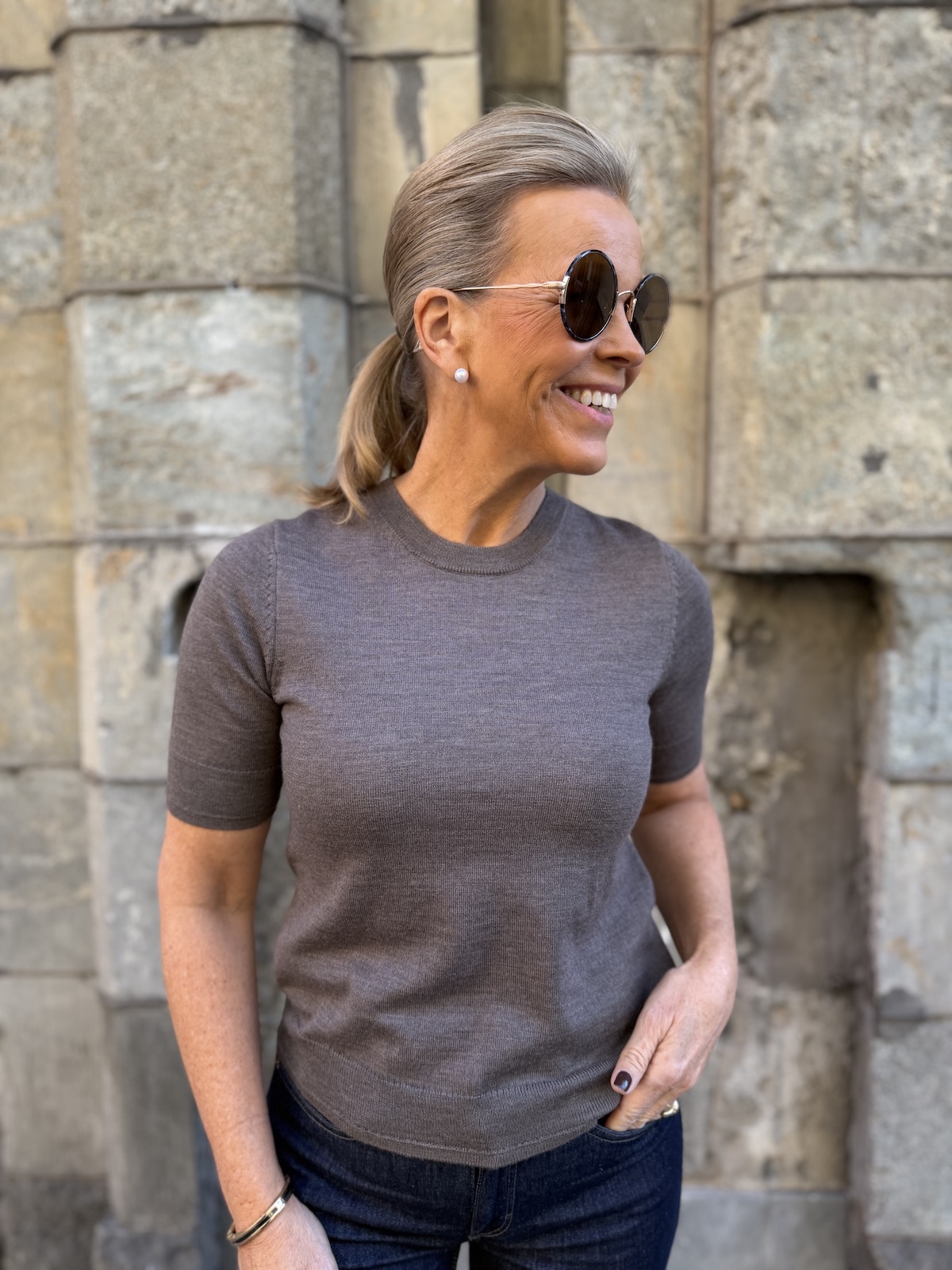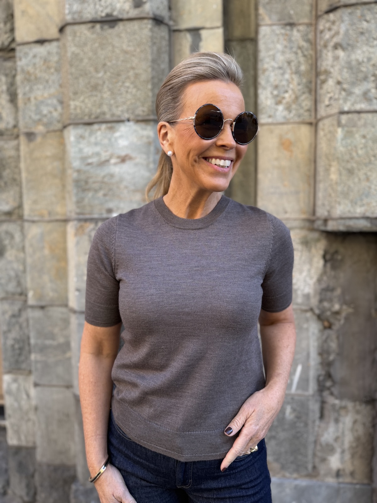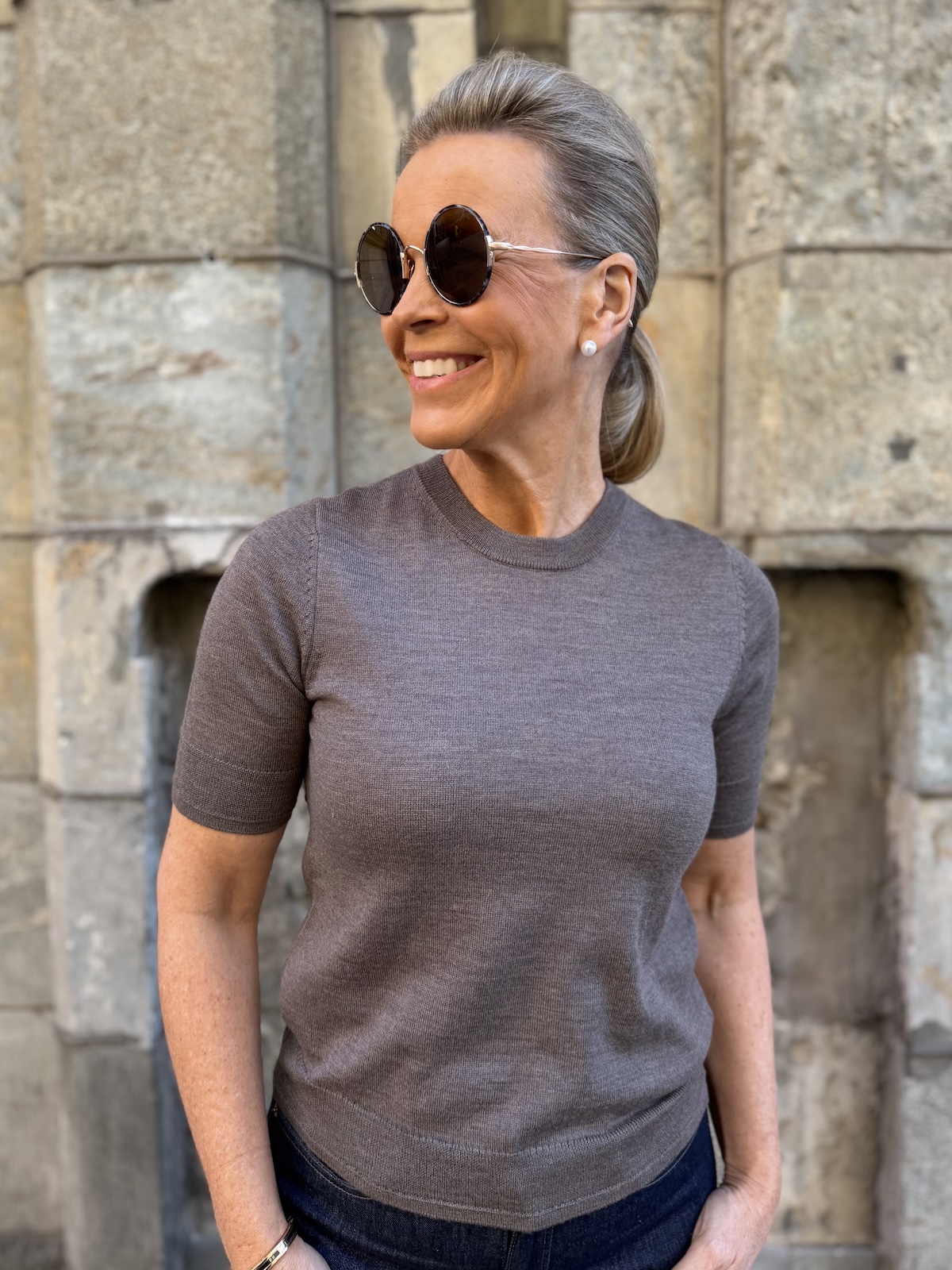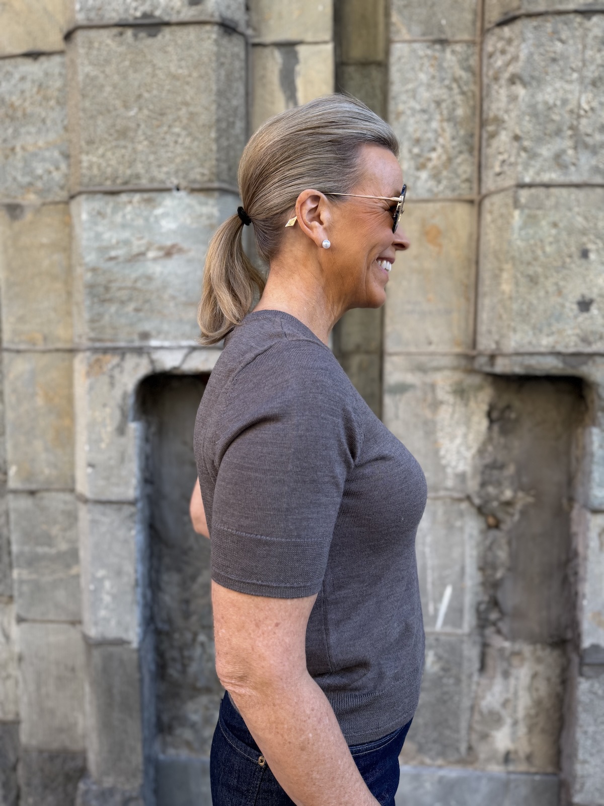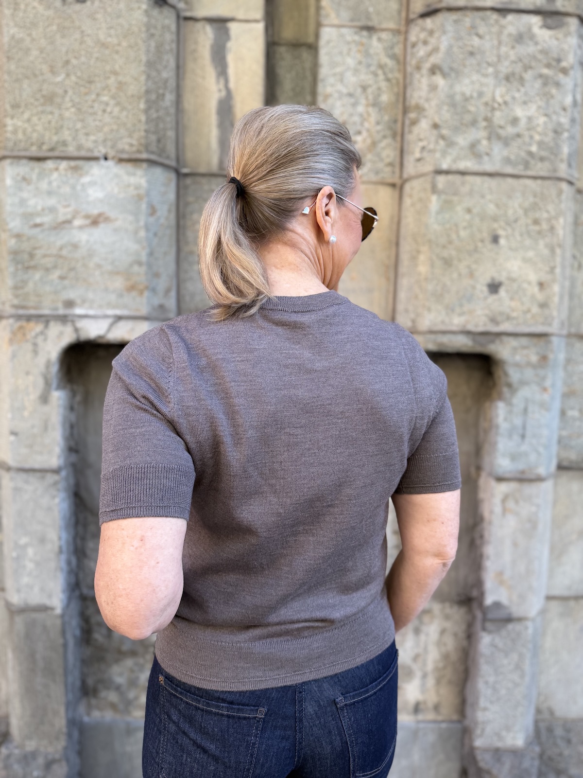 Natanya lyhythihainen neule; falcon melange