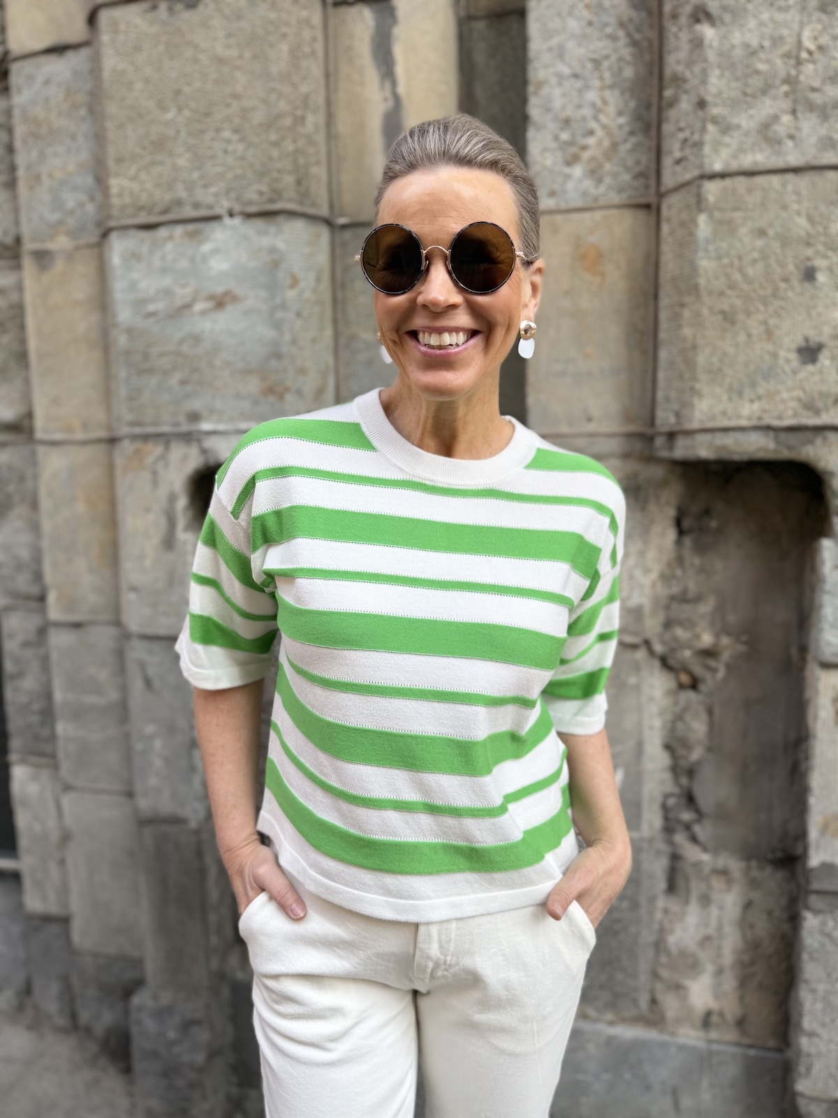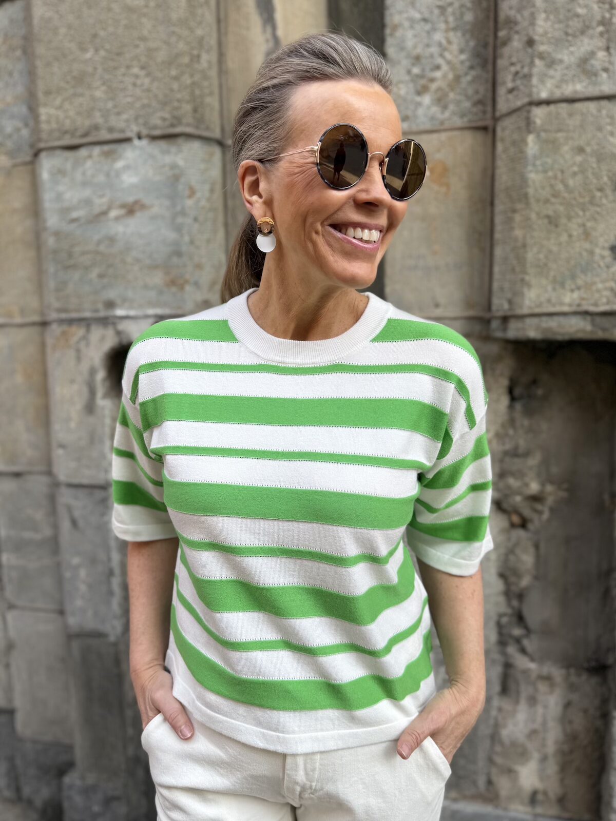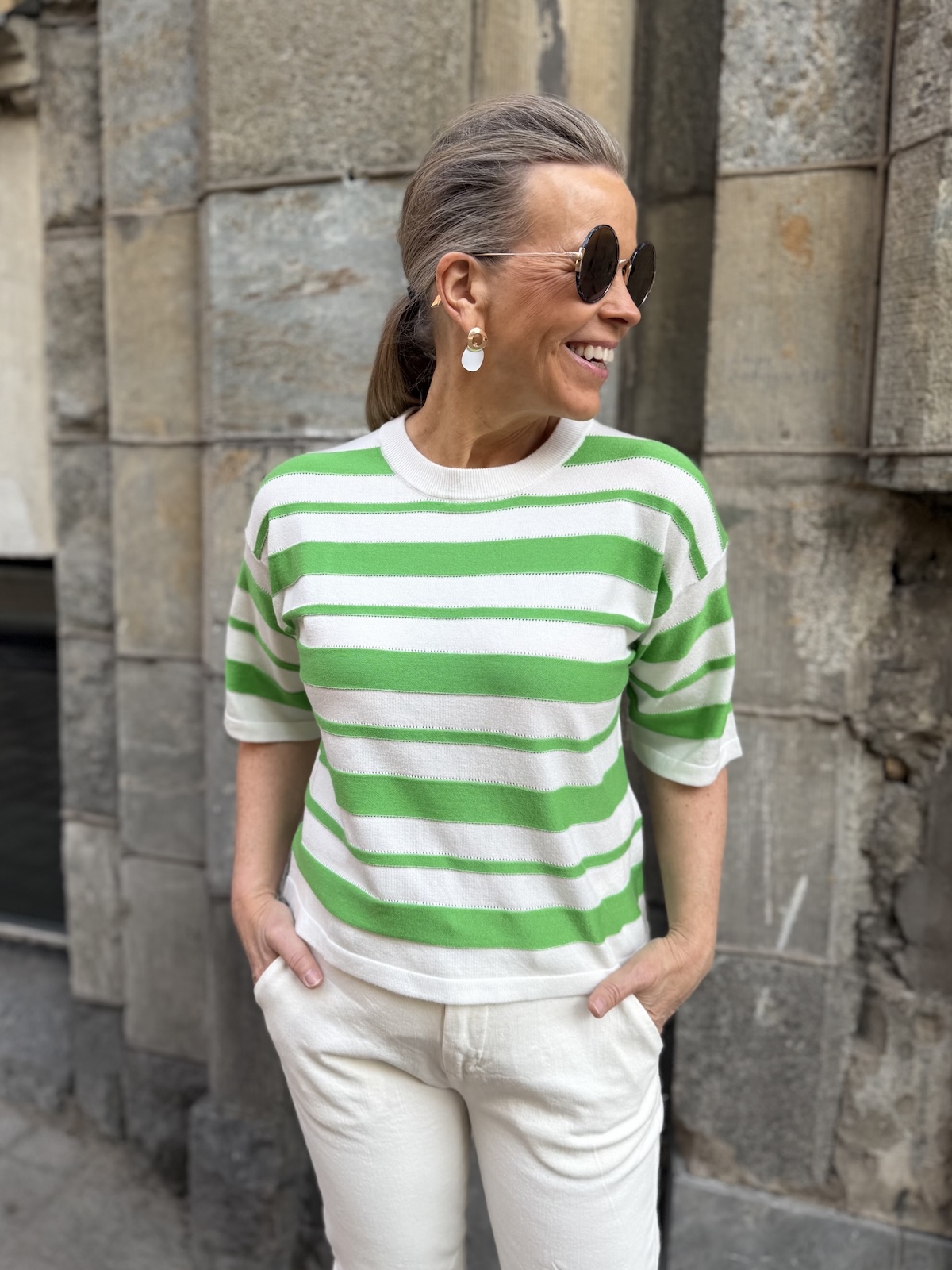 Spina laatikkomainen neule; vihreä/valkoraita