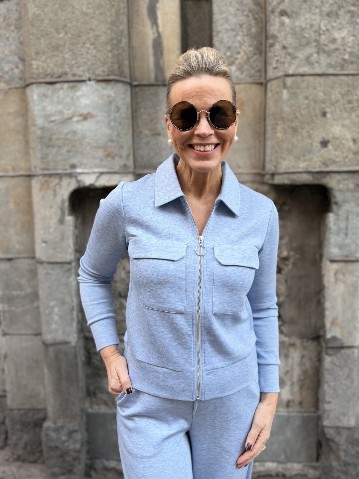 Beca pusakka vetoketjulla; meleerattu vaaleansininen