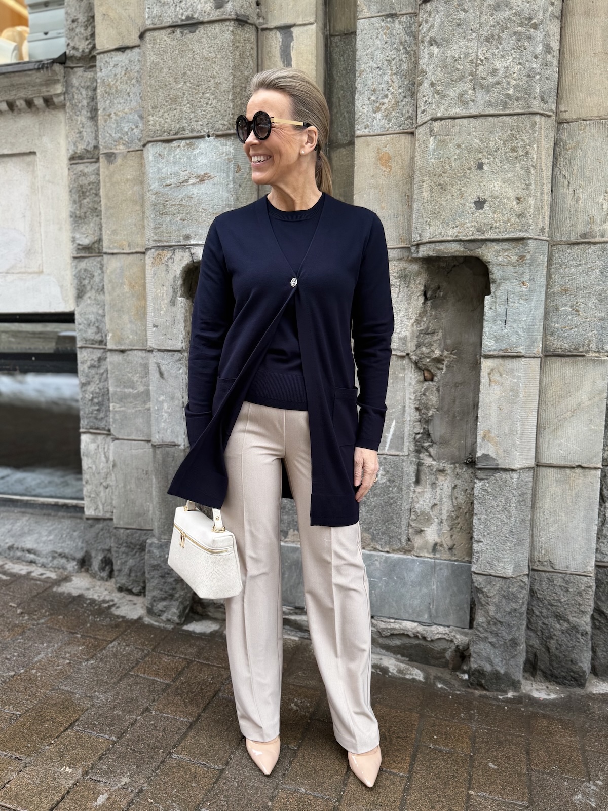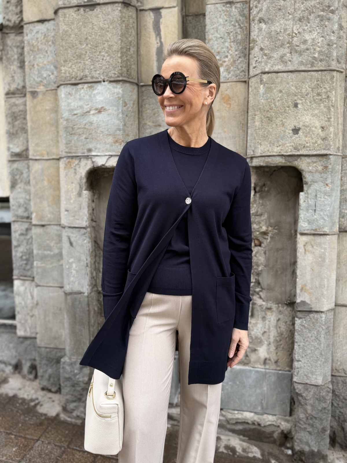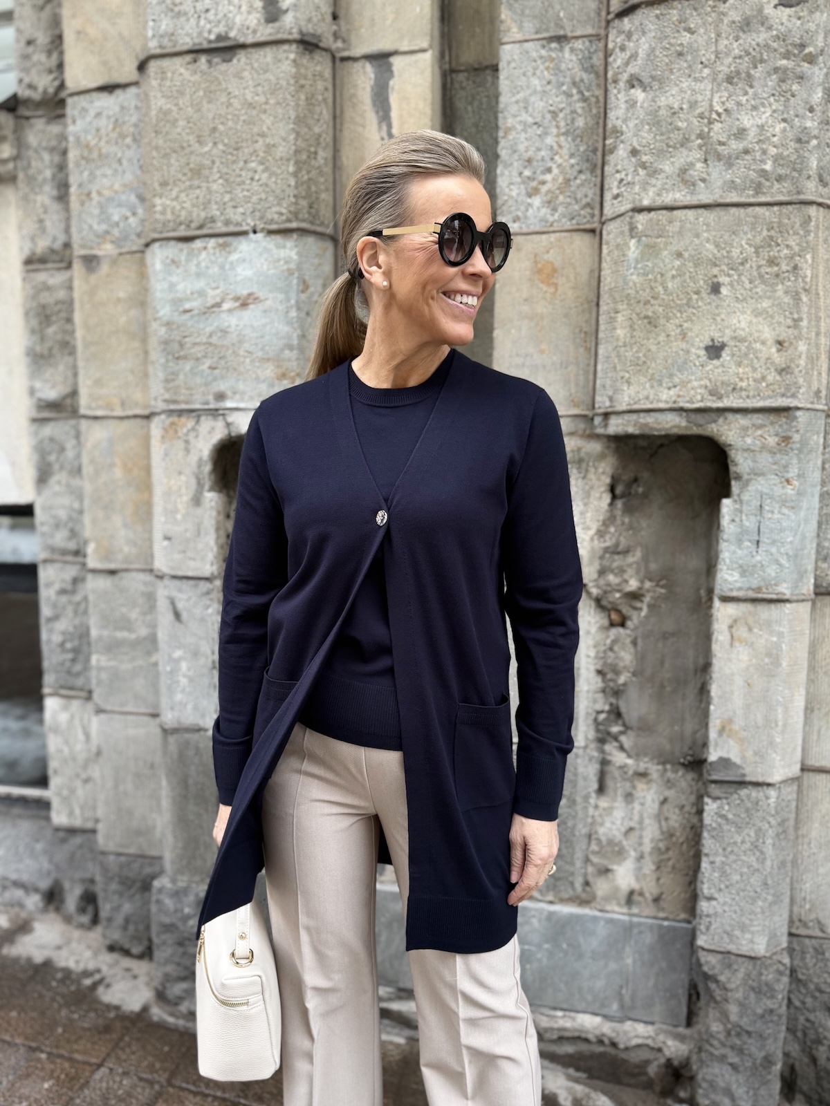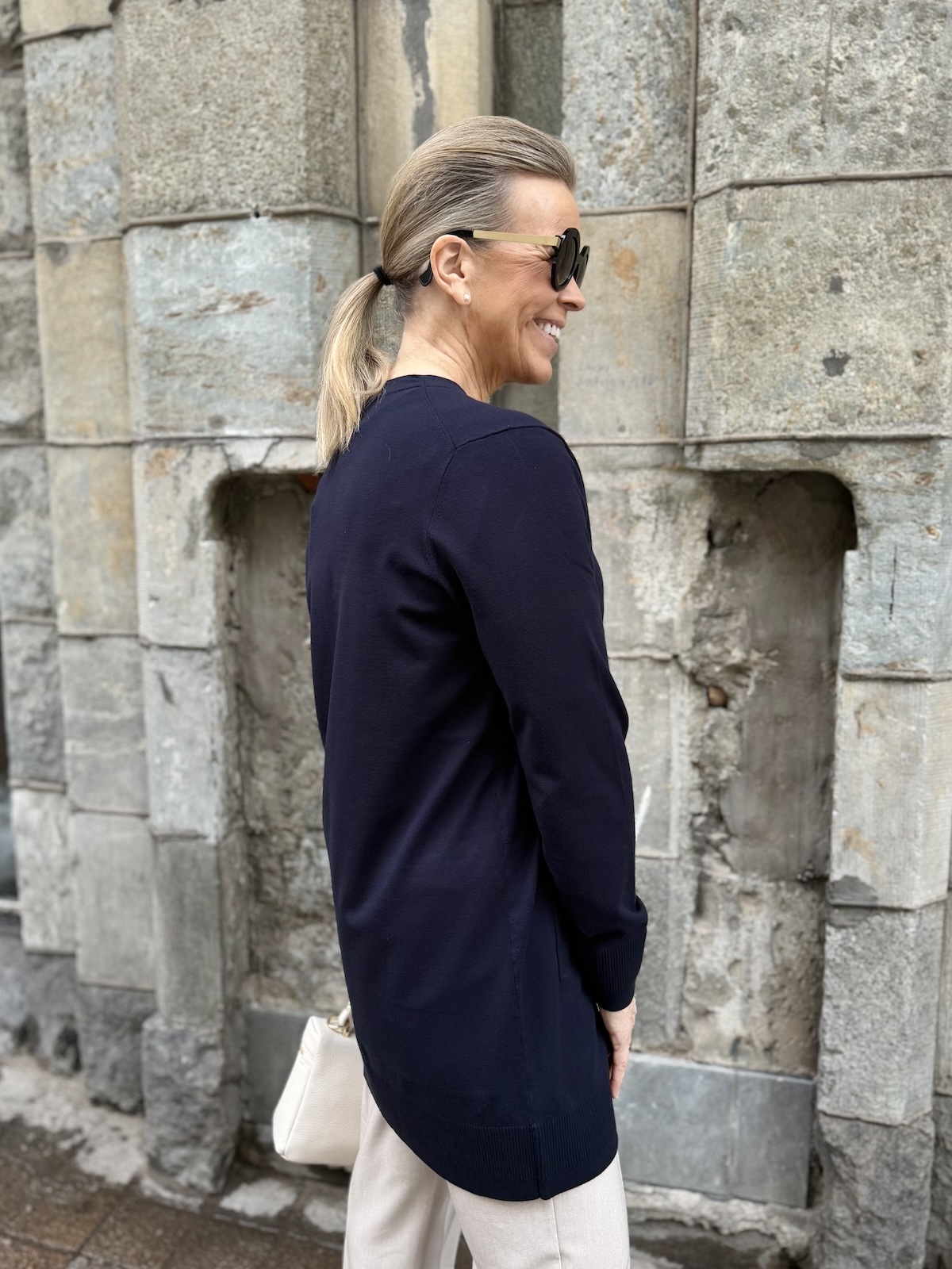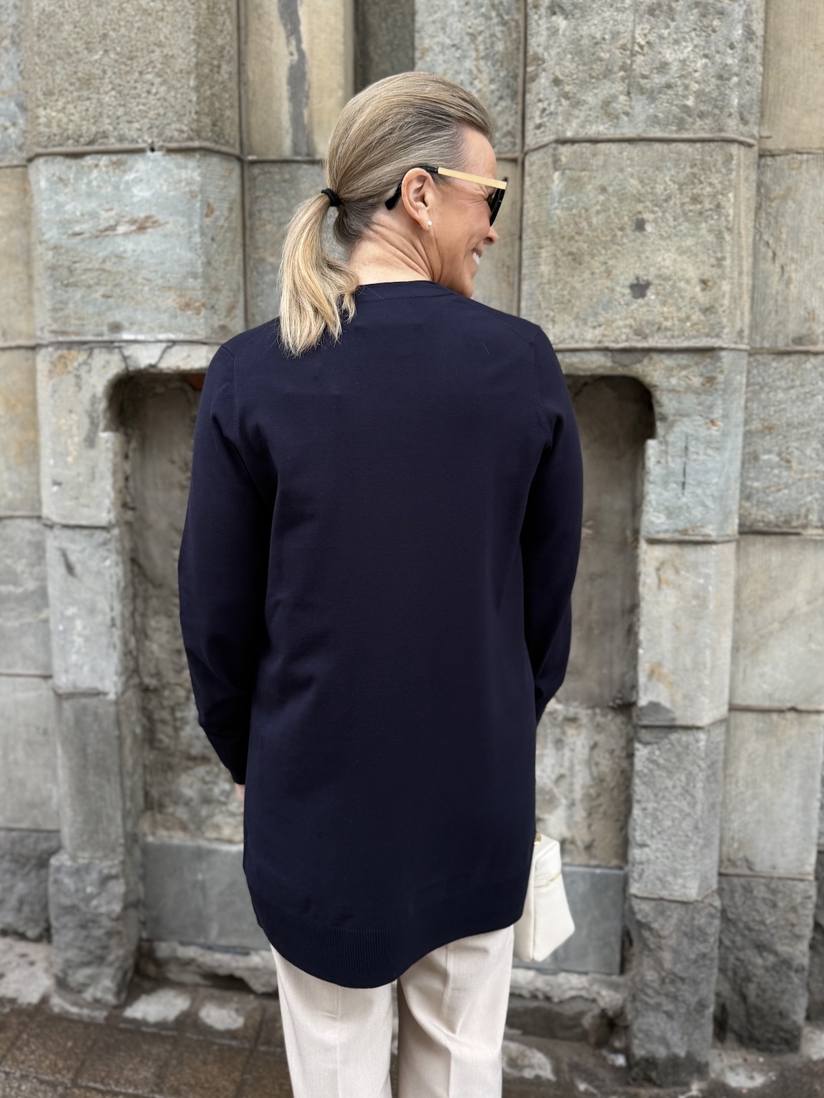Miko on pehmoinen, ohueko ja joustava neuletakki, joka ylettyy reilusti lantion alapuolelle. Neuletakissa on V-kaula-aukko ja edessä on yksi nappi. Tummansinisessä neuletakissa nappi on hopean värinen, haze värisessä neuletakissa se on kullanvärinen. Malliltaan neuletakki on suora ja edessä on kaksi taskua. Hihat ovat täyspitkät ja hihansuissa on resorit. Katalla on neuletakista ja myös neuleesta päällä koko S. Neuletakki vastaa normaalia/aavistuksen reilumpaa kokoa.