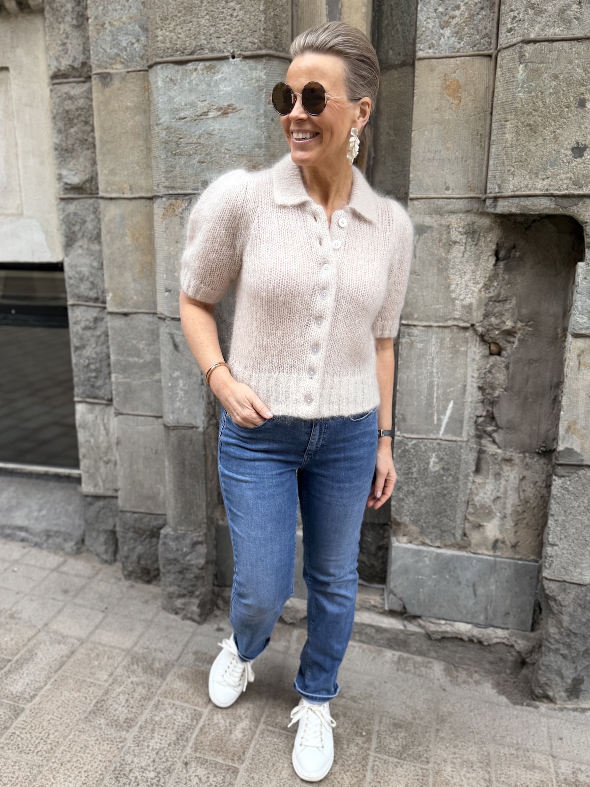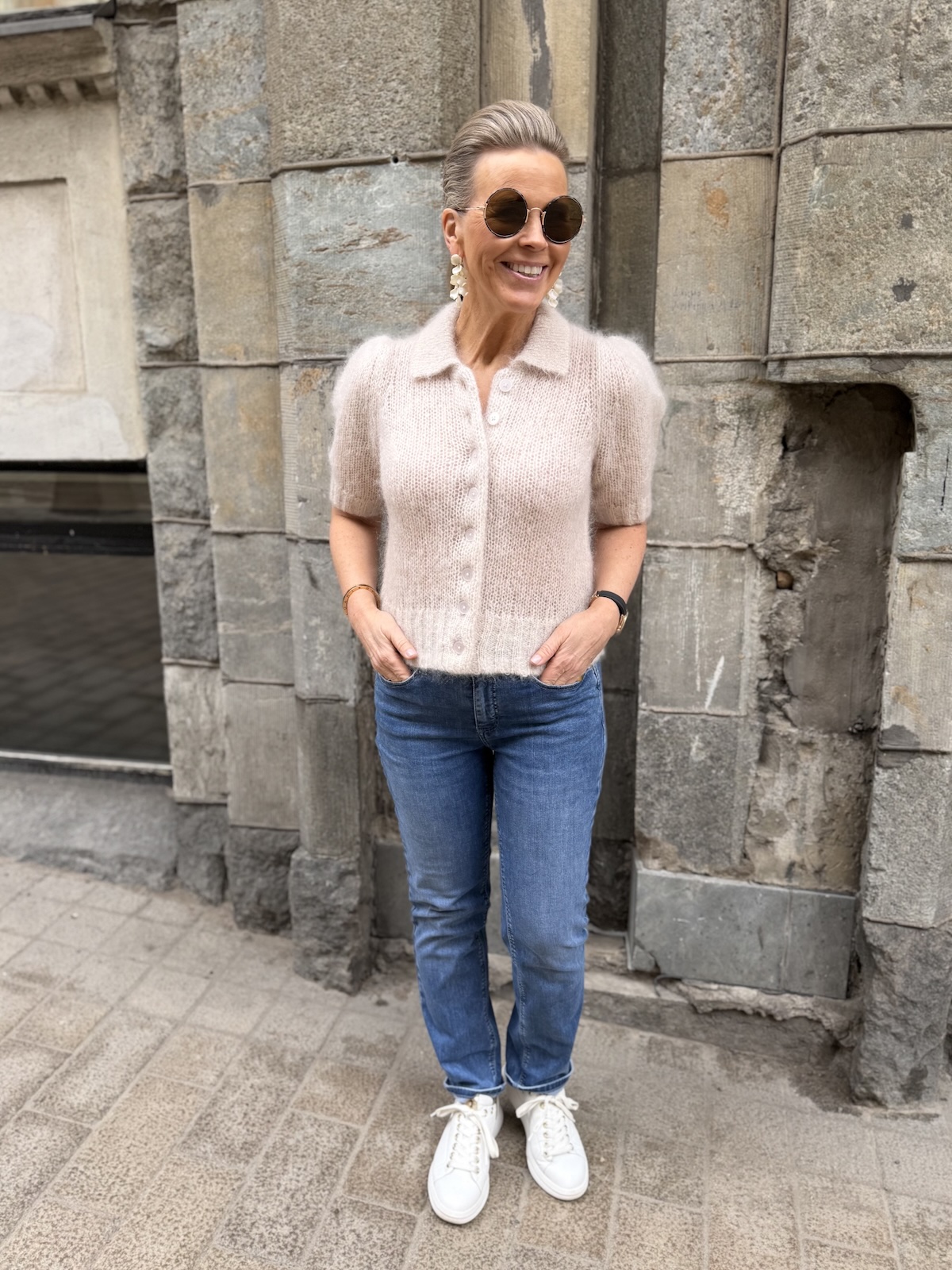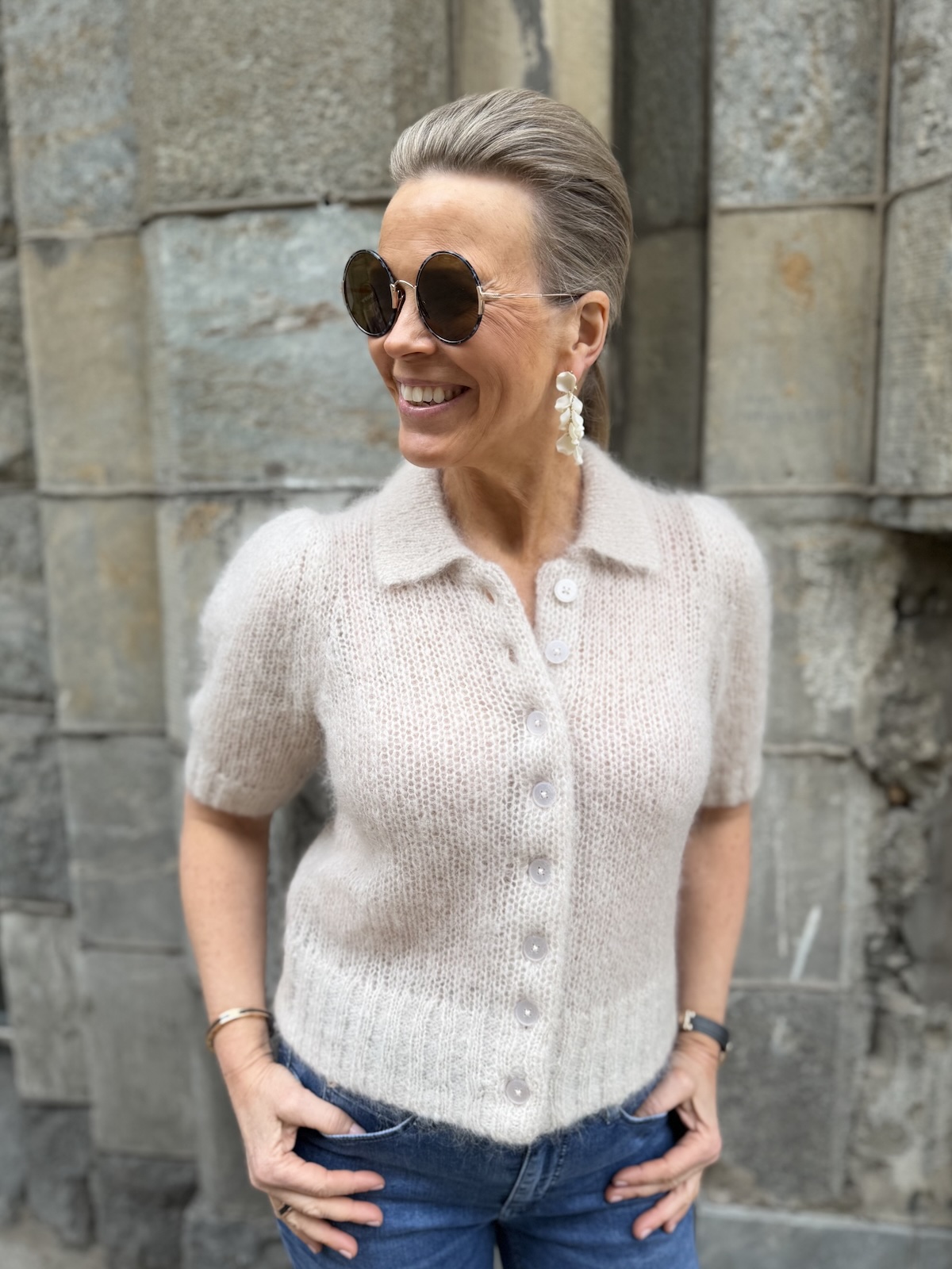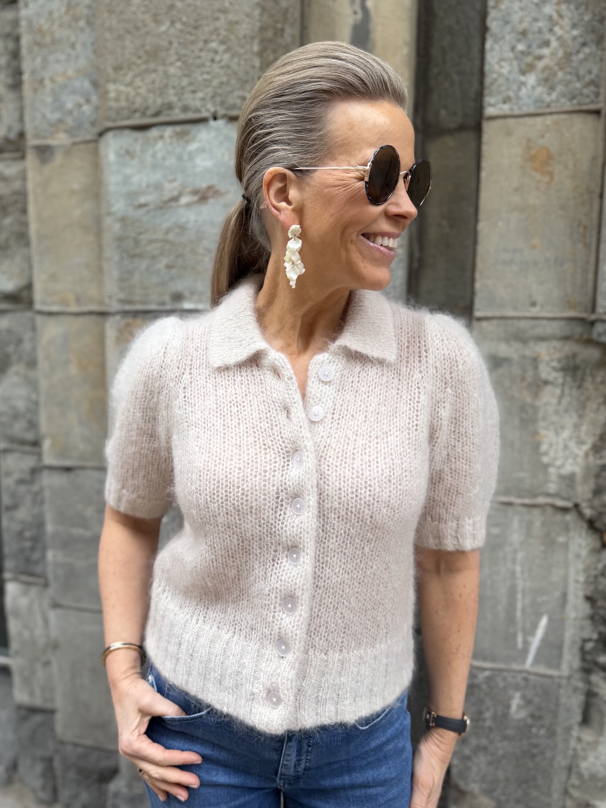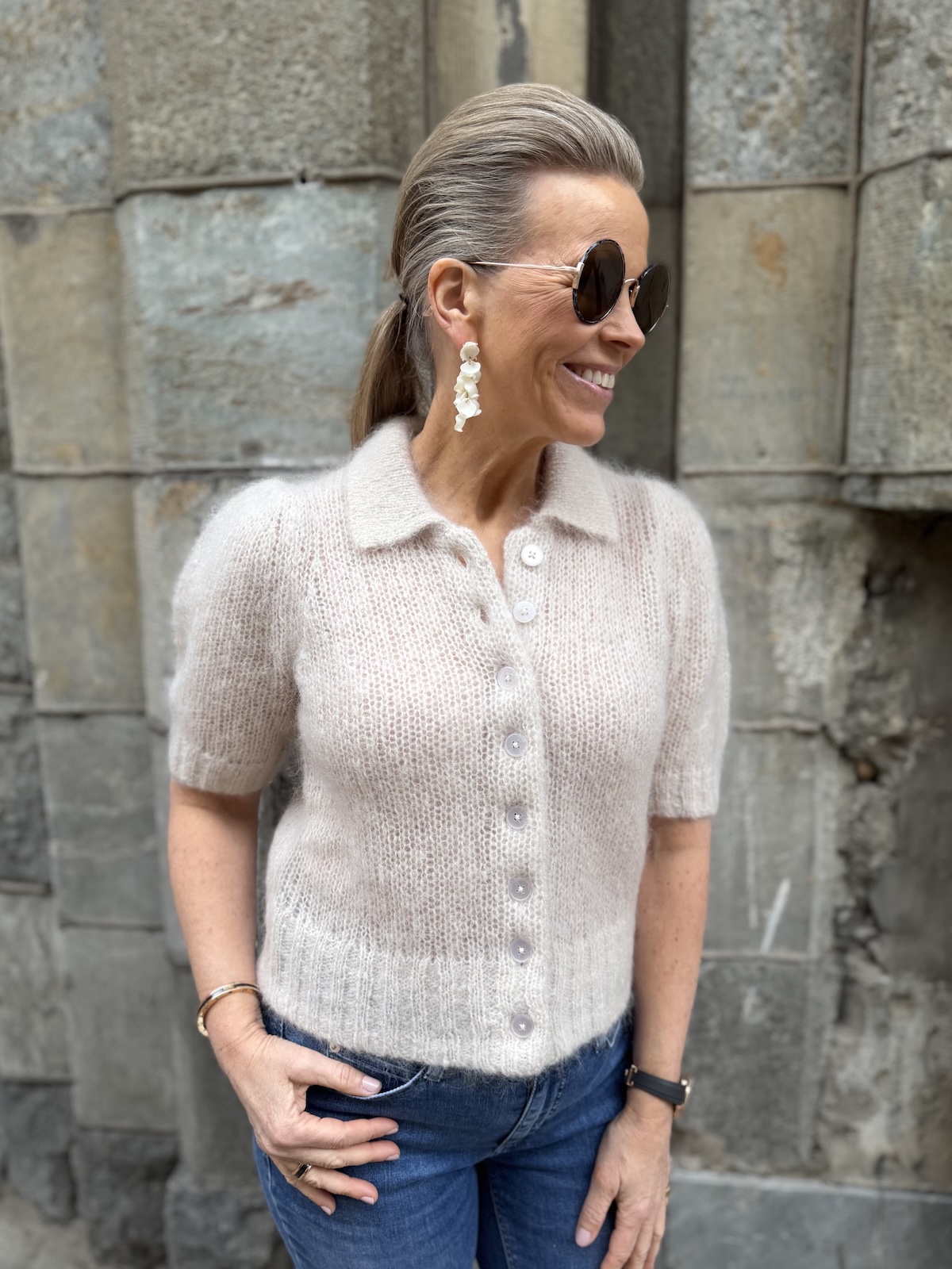 Vernoni on super söpö neuletakki. Neulekissa on kaulukset ja täysin avattavat napit edessä. Hihat ovat pussimaiset ja ne ylettyvät kyynerpäiden kohdalle. Malliltaan neuletakki on suorahko ja sen helmassa on resorineulos, samanlainen kuin hihansuissa. Katalla on neuletakista päällä koko S. Neuletakki vastaa normaalia kokoa.