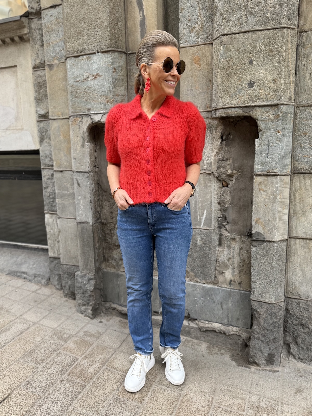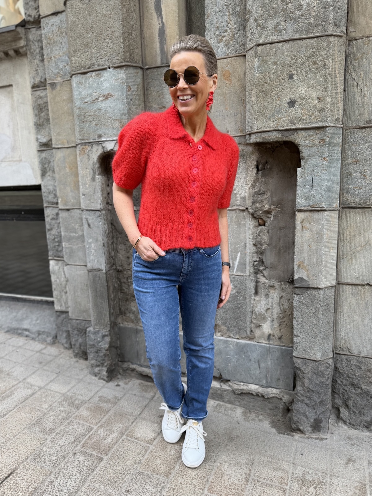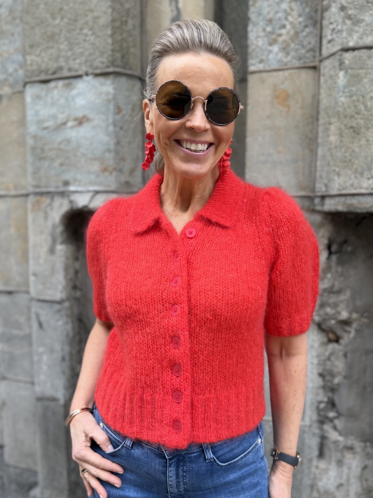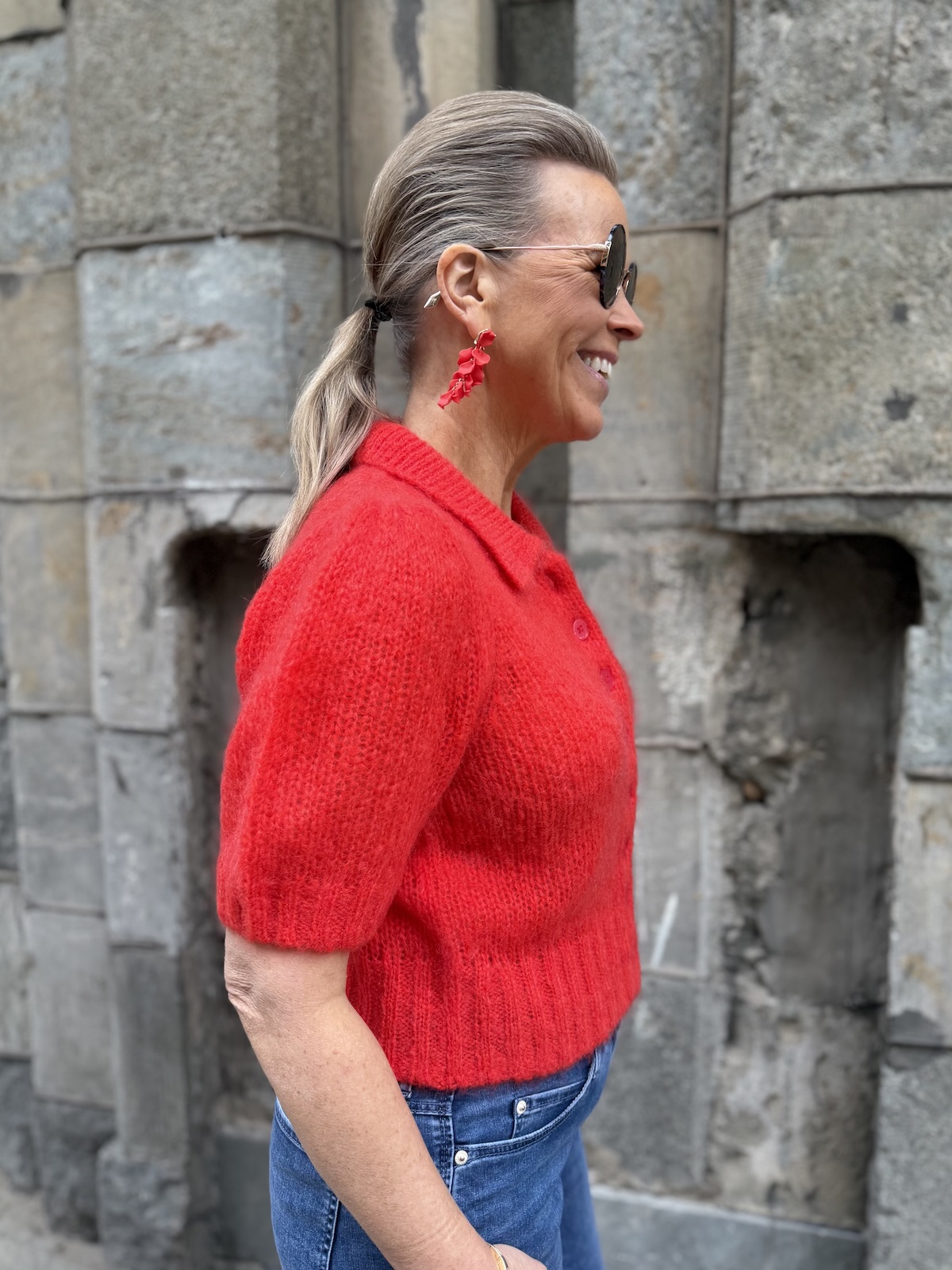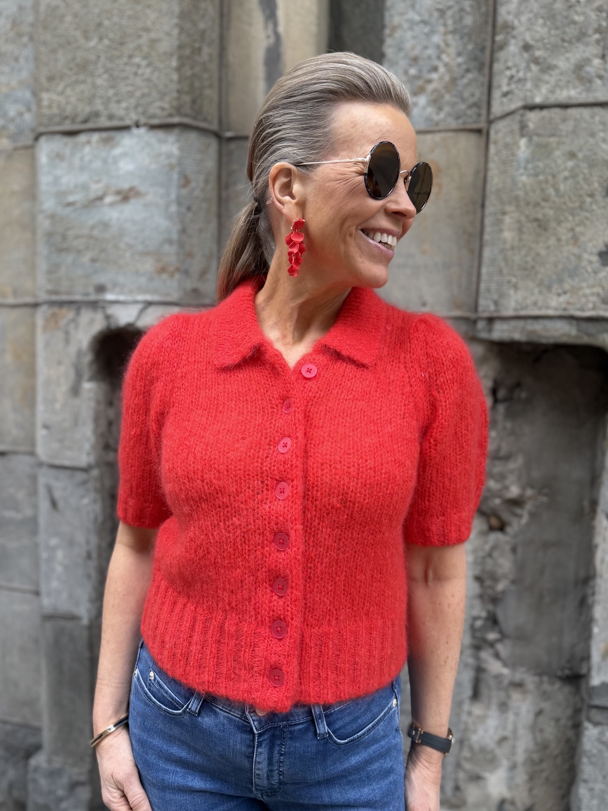 Vernoni lyhythihainen neuletakki; poppy red