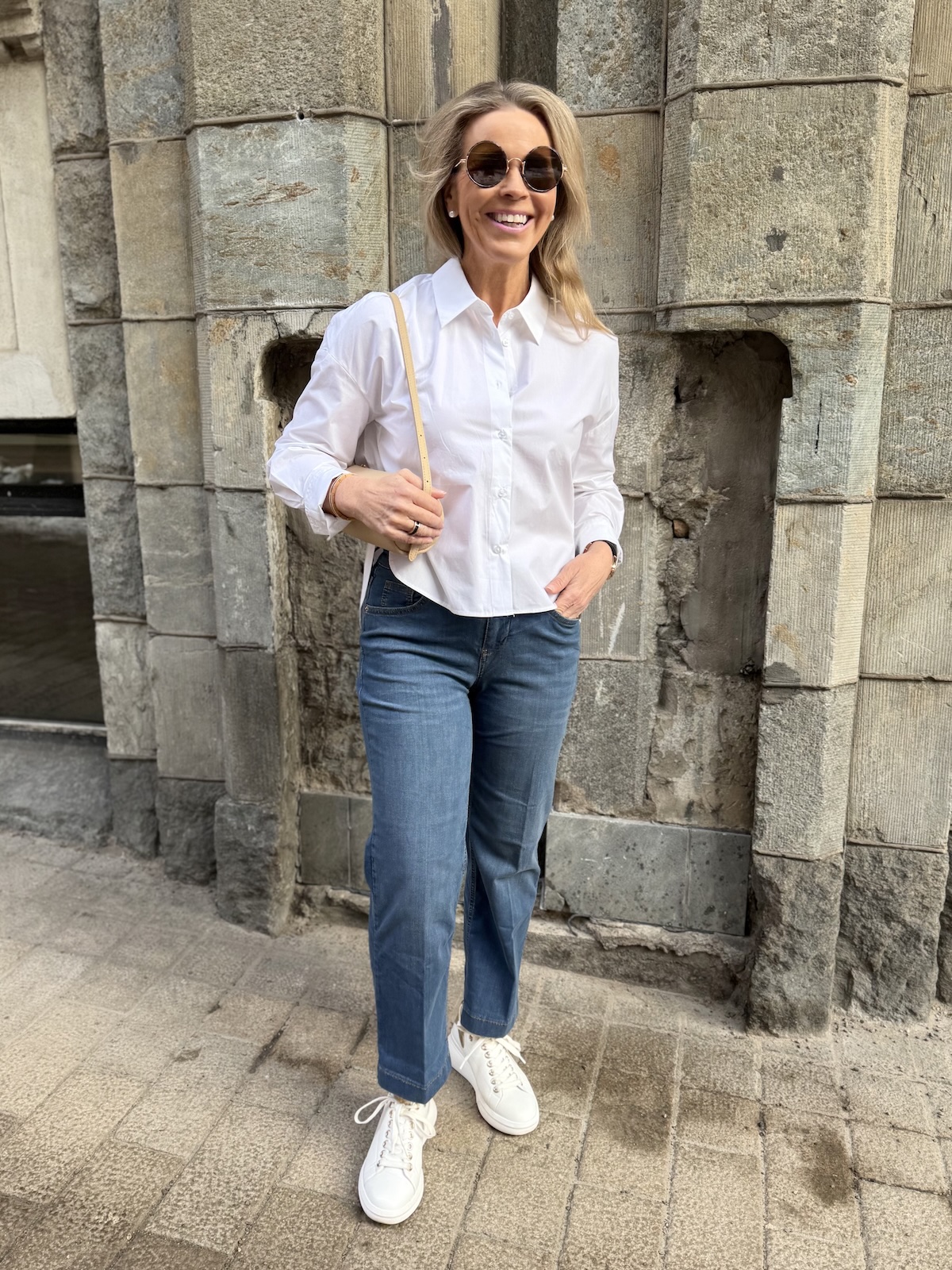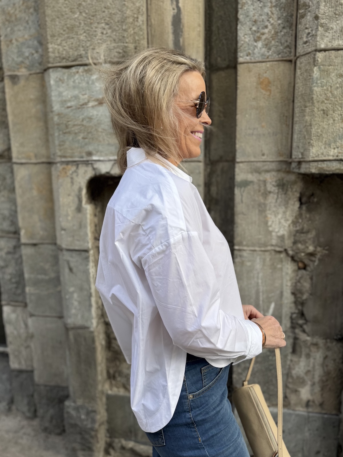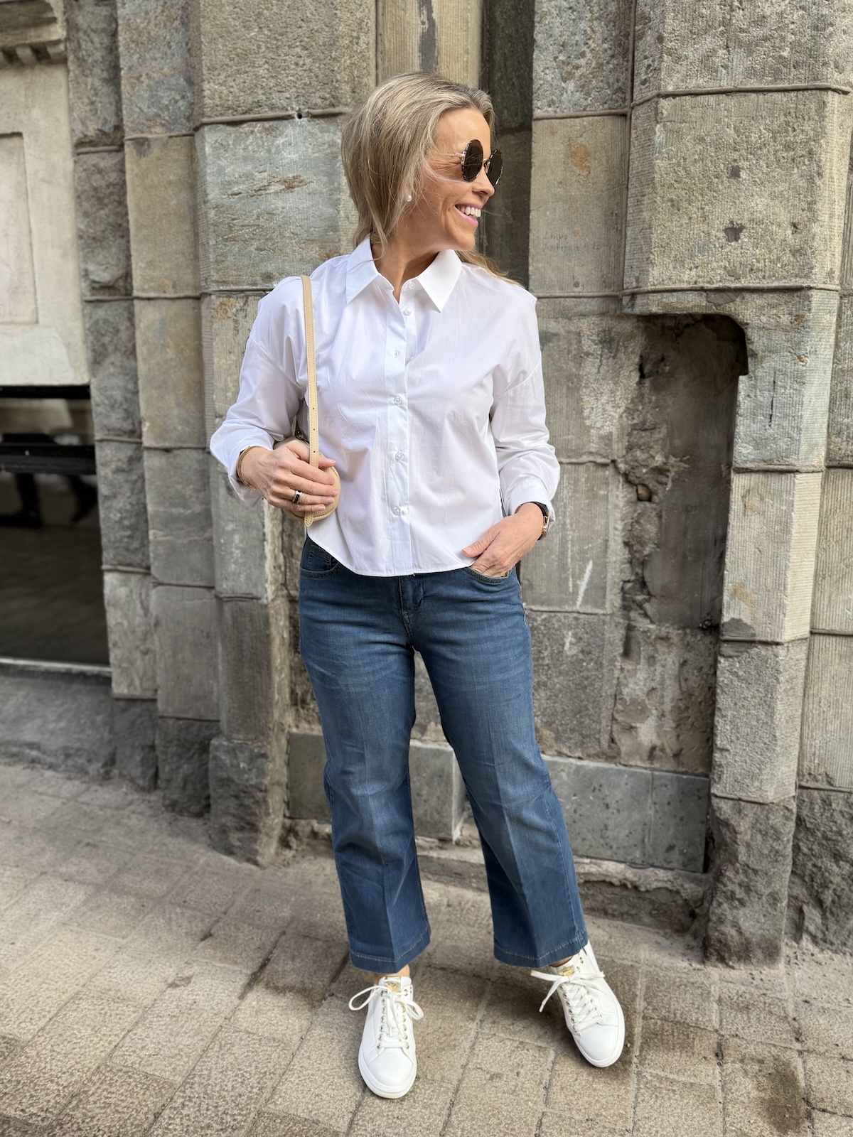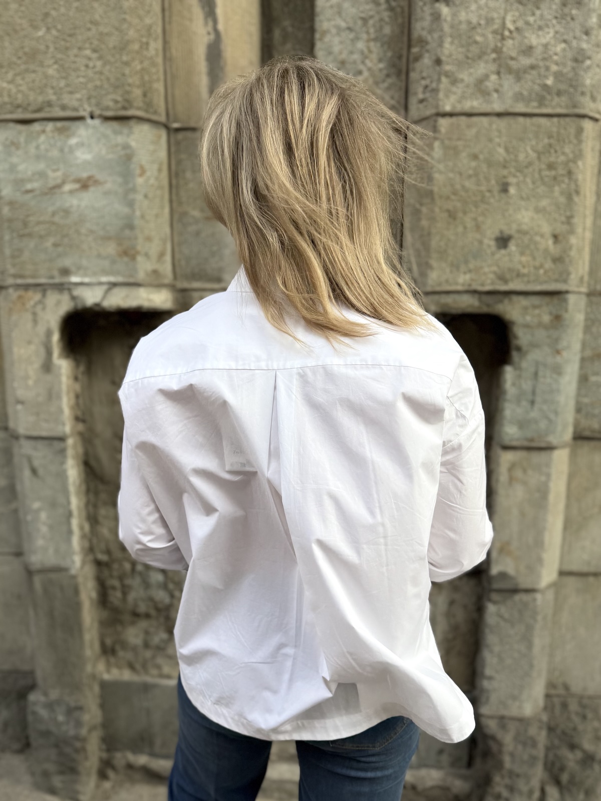 Leloi Neola kauluspaita on laatikkomainen paita, joka on edestä lyhkäisempi kuin takaa. Paidassa on kaulukset ja napit edessä. Hihansuissa on leveät käänteet, jotka voi kääntää tuplasti jos haluaa. Malliltaan paita on suora ja se ylettyy lonkkaluiden alapuolelle. Helma on kauniisti kaarrettu ja paidan selkäpuolella on laskos, joka antaa tilaa paidalle. Katalla on paidasta päällä koko 34 (myös koko 32 on hänelle ok koko) eli paita on reilua kokoa.