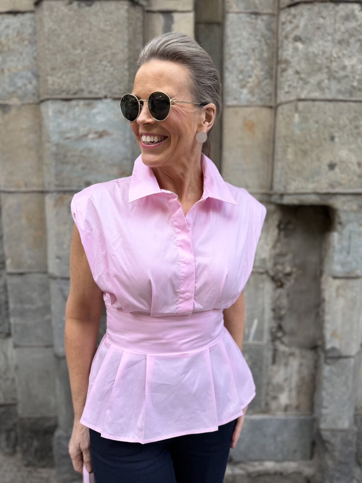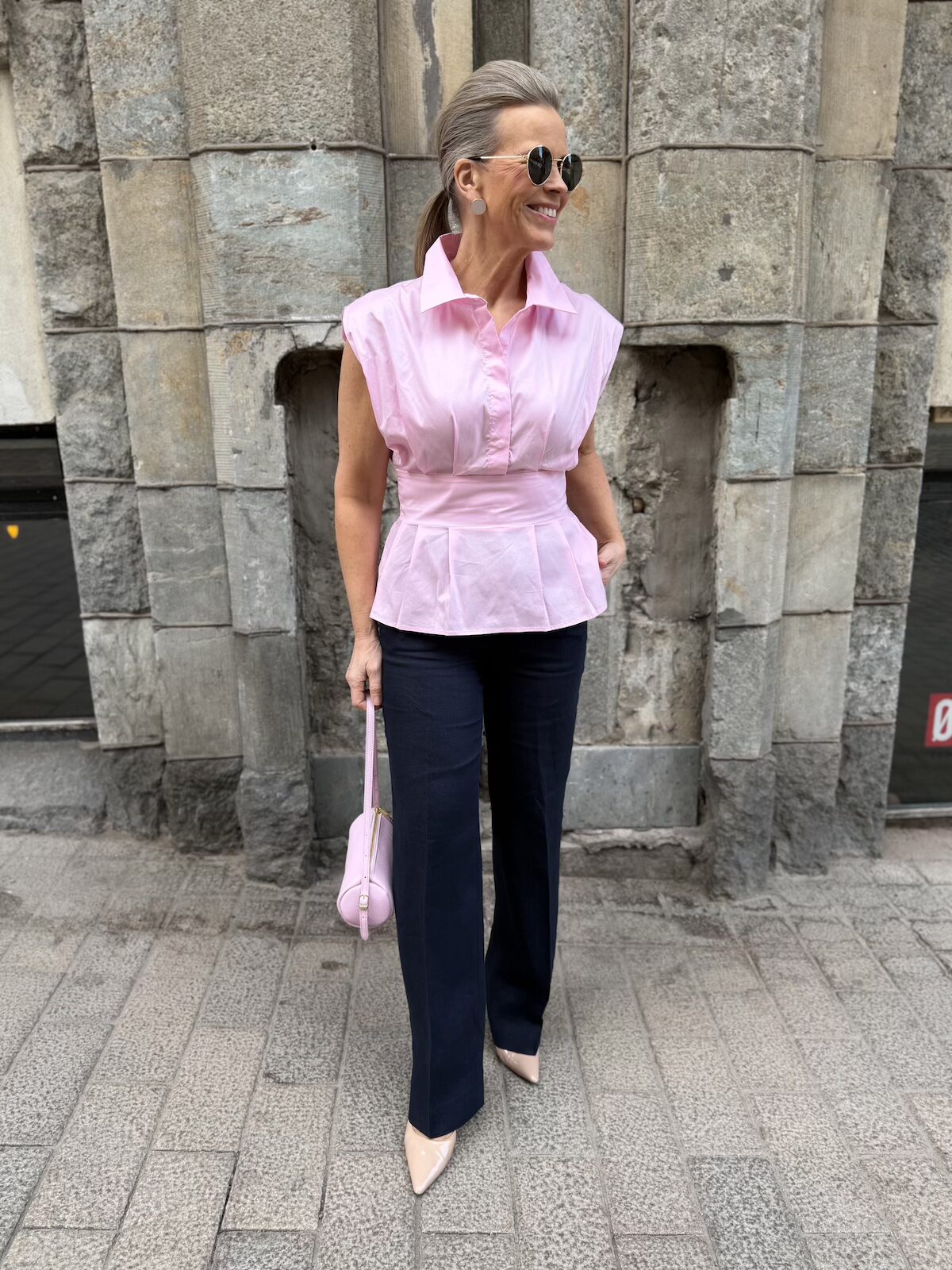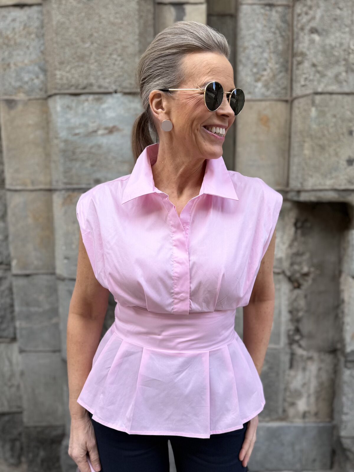 Malue paita kuuluu samaan tuoteperheeseen kun Antoinett pallomekko. Paidassa on kaunis malli. Siinä on kaulukset ja edessä on napit poikkileikkaukseen asti. Paita on leveähkö yläosasta eli olkasaumat tipahtavat reippaasti olkapäiden alapuolelle. Vyötäröllä on leveähkö tuplakankainen kantti. Helmaosassa on muutama vekki eli se levenee alaspäin. Katalla on paidasta päällä koko S. Paita ei jousta vyötärön kohdalta. Paita sopii X- ja A-vartaloiselle naiselle.