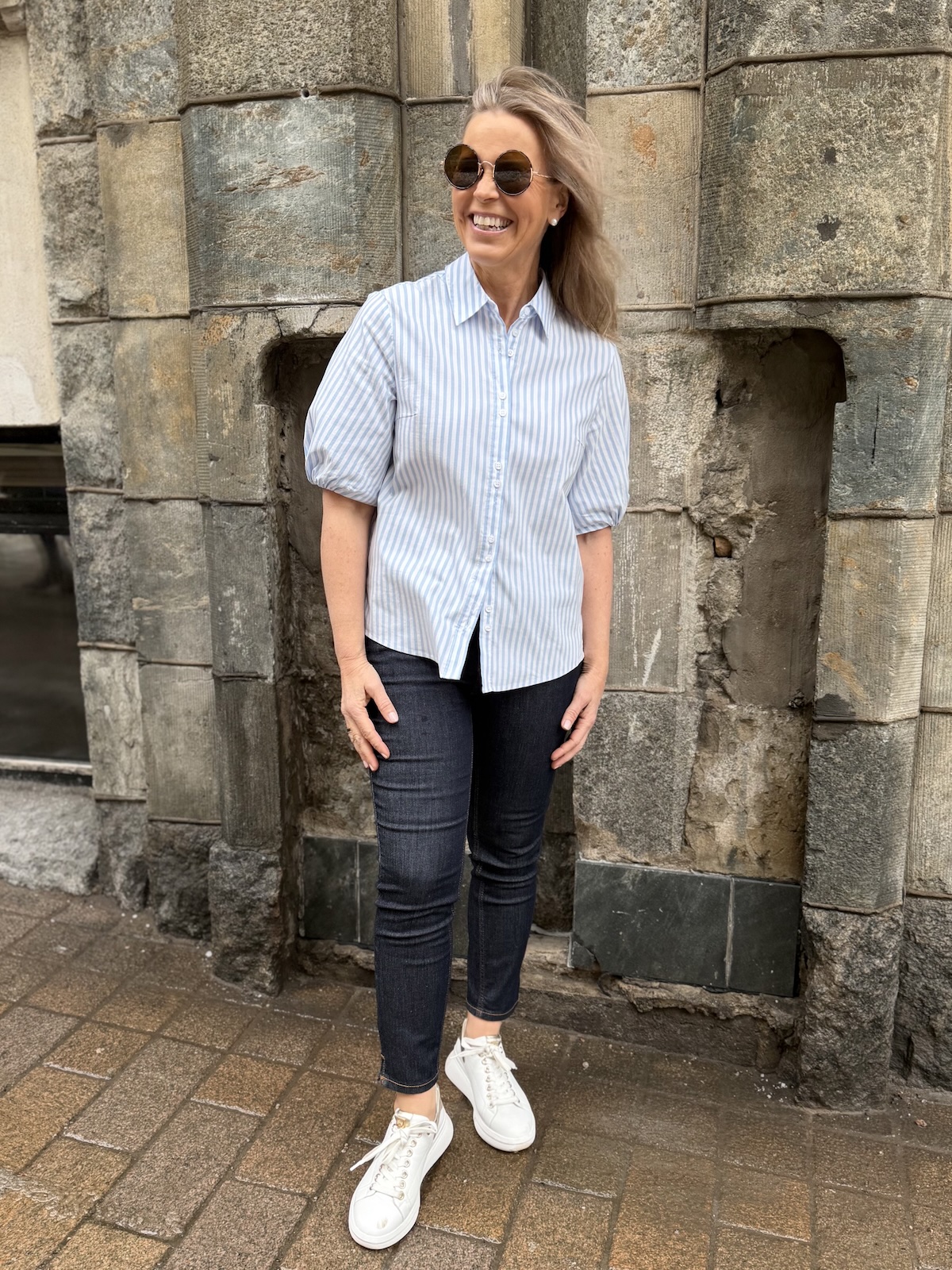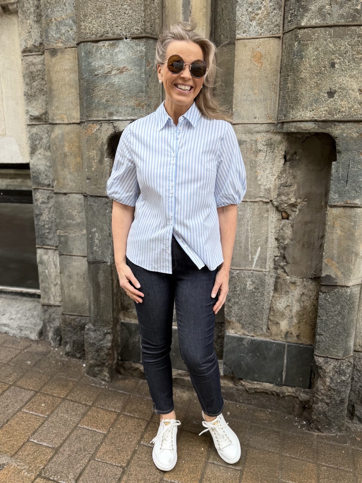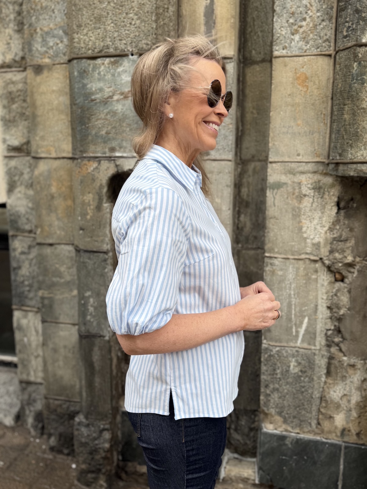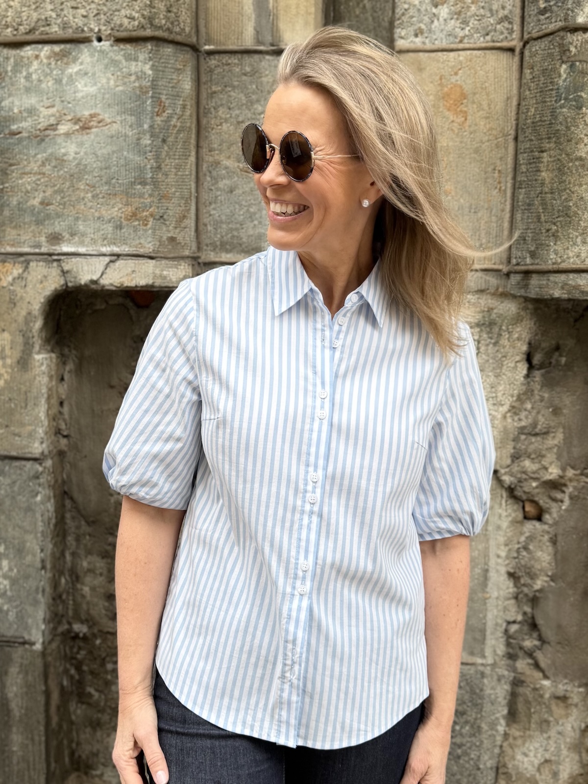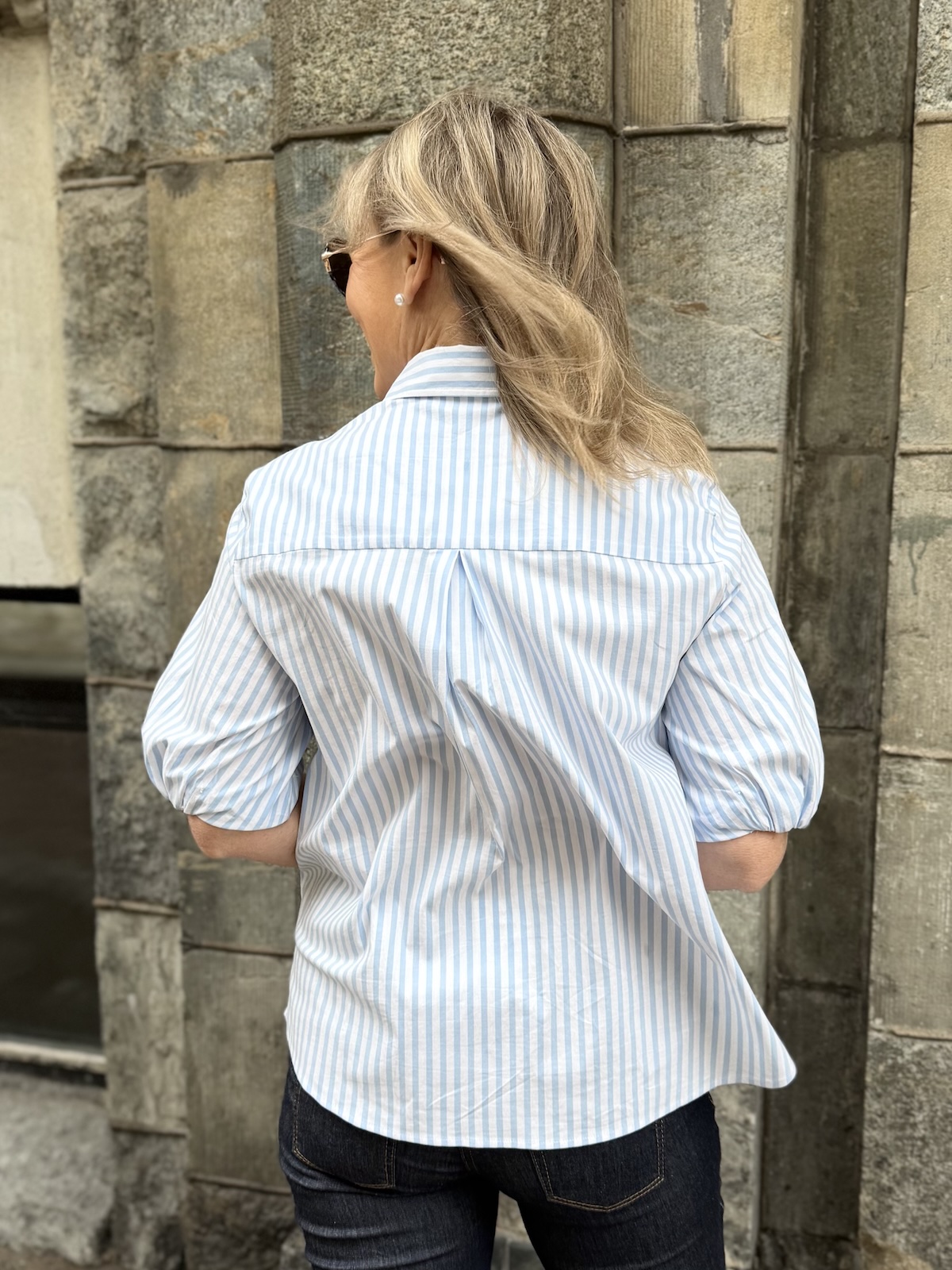 Zelina paitapusero on tyylikäs raitapaita ja sen erikoisuutena on sen hihat. Hihat ylettyvät lähes kyynerpäiden kohdalle ja hihoissa on vuori. Reunassa on kuminauha, joka saa aikaiseksi hieman pussimaisen efektin. Malliltaan paita on suora ja sen ylettyy juuri haarasauman kohdalle. Sen helma on kauniisti pyöristetty. Malliltaan paita on reiluhkoa mallia. Katalla on paidasta päällä koko 34.