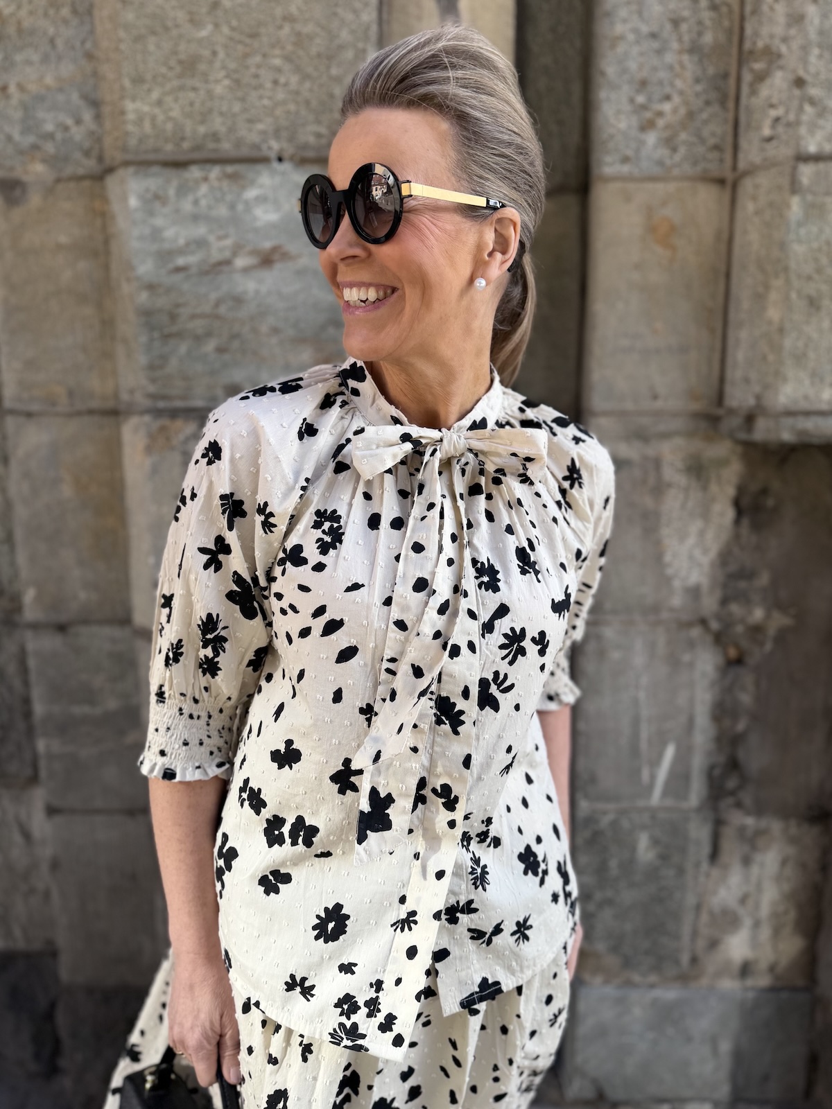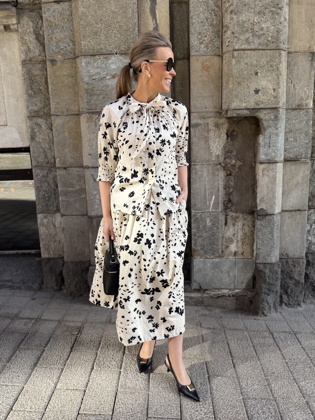 Almera paita nauhoilla; musta kukka