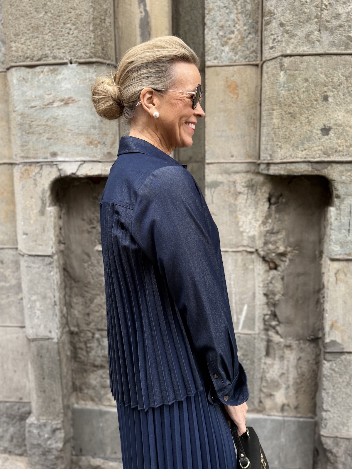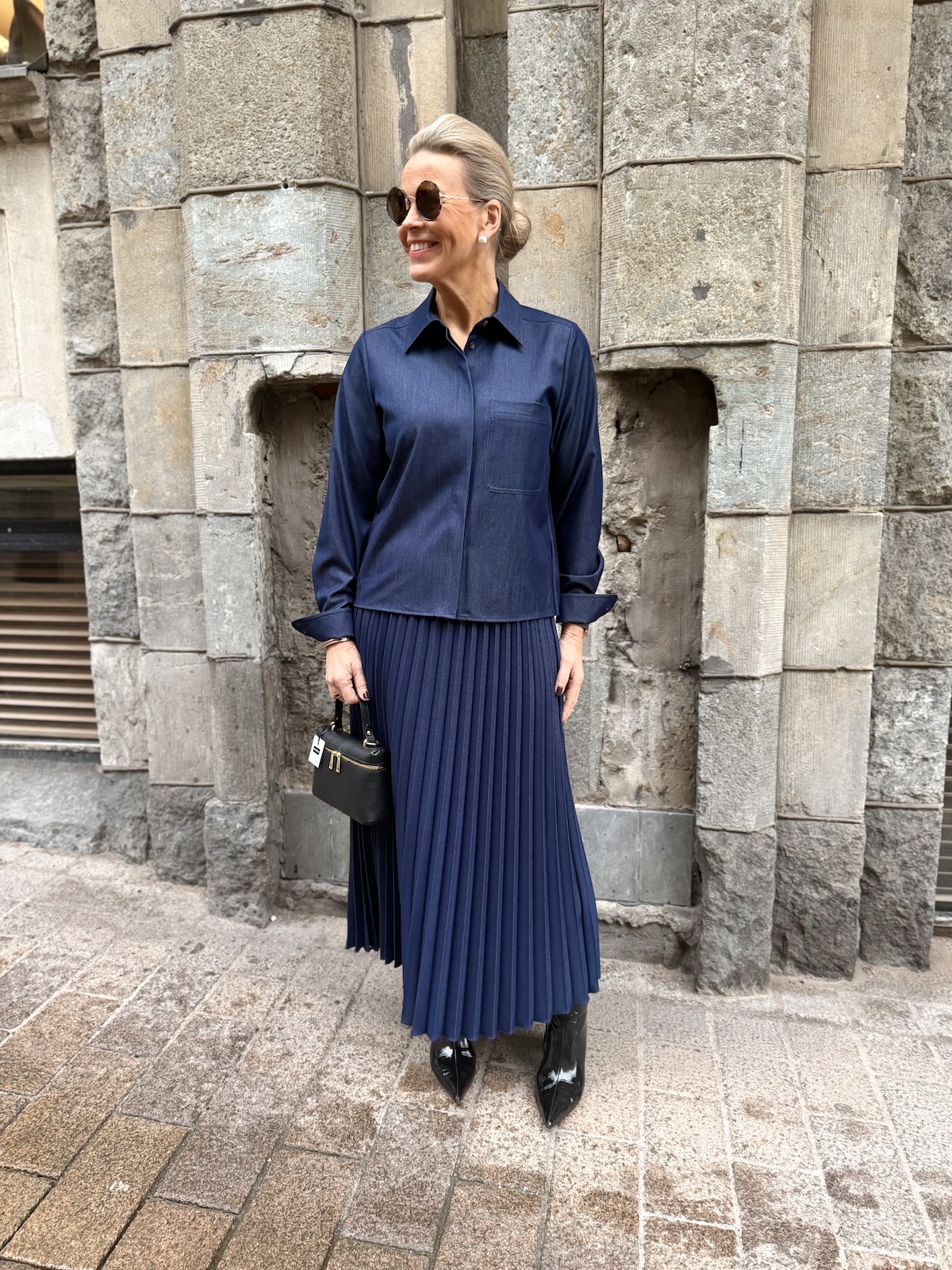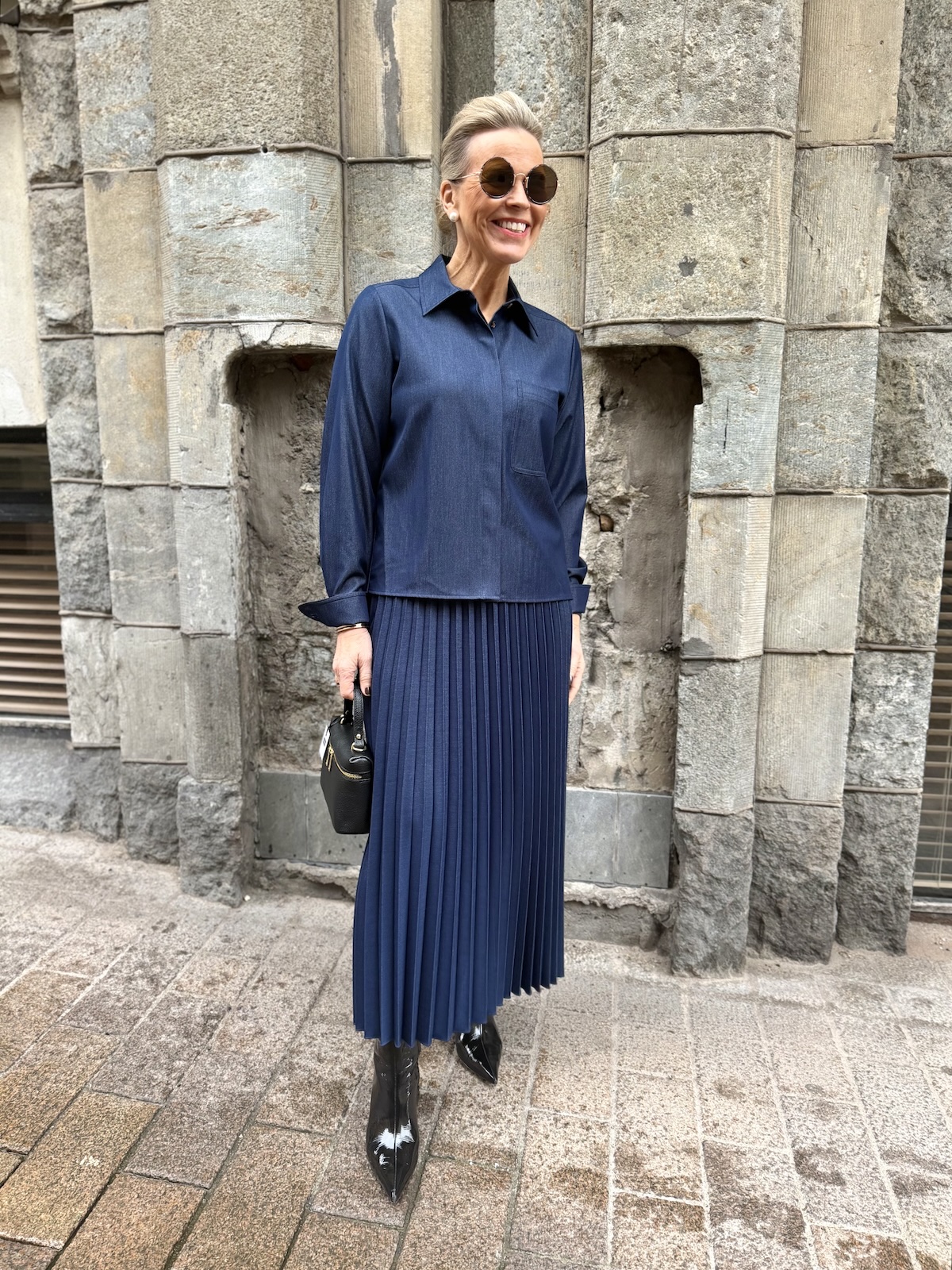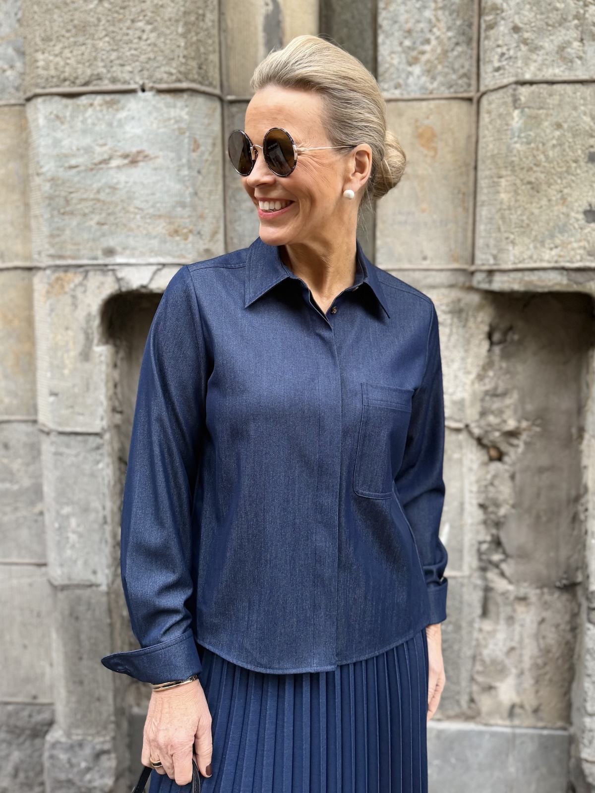 Cherrie on notkeaa on ohkaista kangasta, mutta näyttää farkkukankaalta. Paidassa on kaulukset ja edessä on piilonapitus. Rannekkeet ovat leveät ja niissä on napit. Malliltaan paita on suora ja lyhyehkö ja paidassa on upea, vekattu selkäpuoli. Rintatasku on huomaamaton . Katalla on paidasta päällä koko 34.