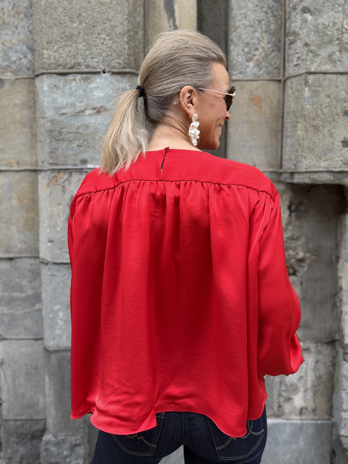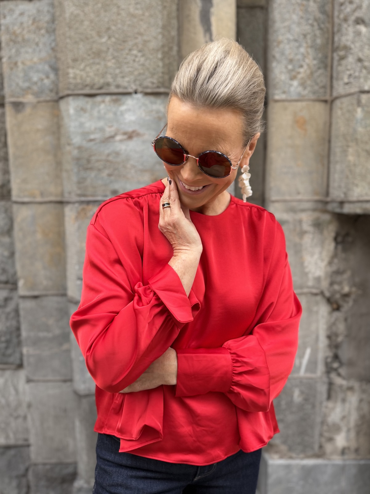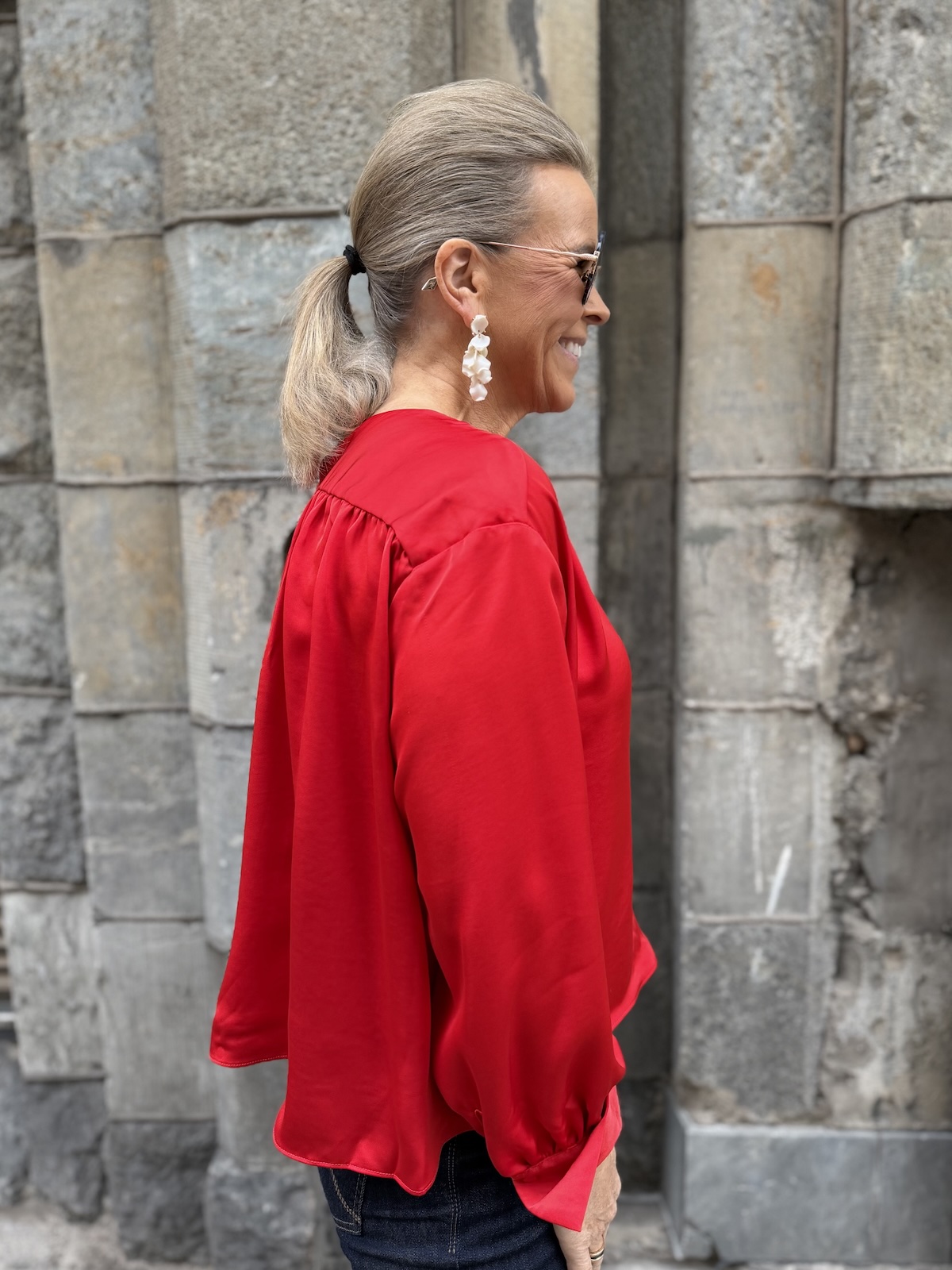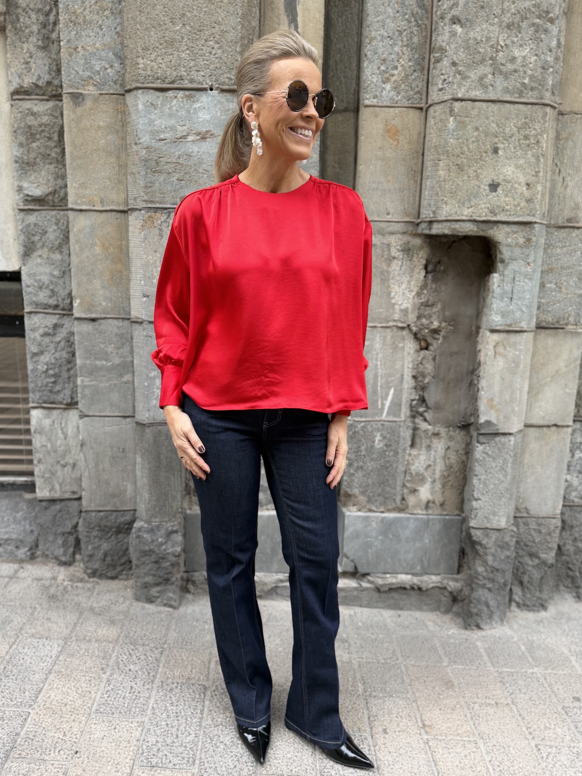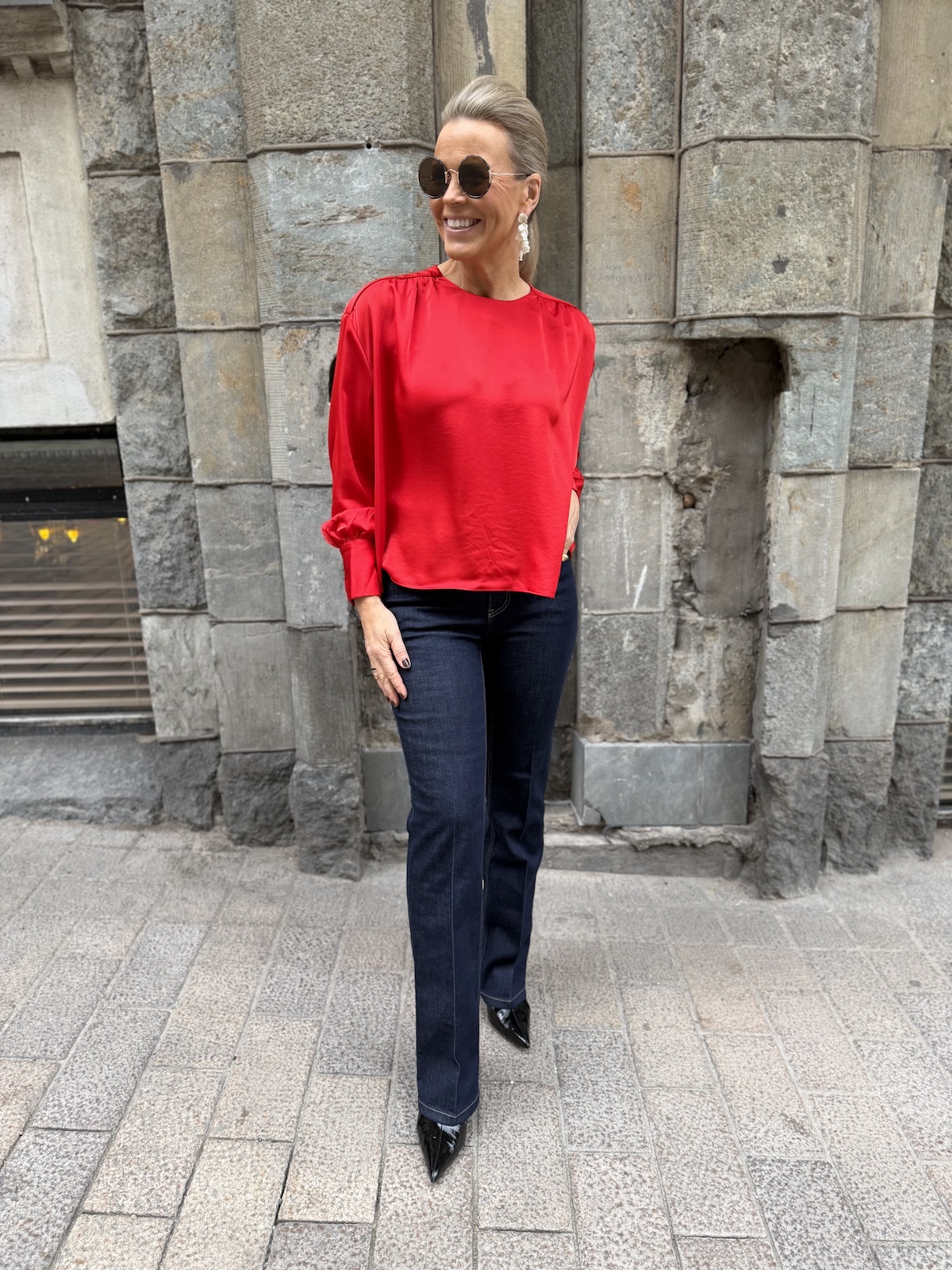 Dawn paita on upea. paidassa on O-kaula-aukko ja niskassa on nappi. Paita on leveä, mutta se laskeutuu kauniisti joten se on ilmava ja upeannäköinen päällä. Hihat ovat aavistuksen pussimaiset ja hihansuissa on rannekkeet ja napit. Paita ylettyy lonkkaluiden kohdalle. Katalla on paidasta päällä koko 34.