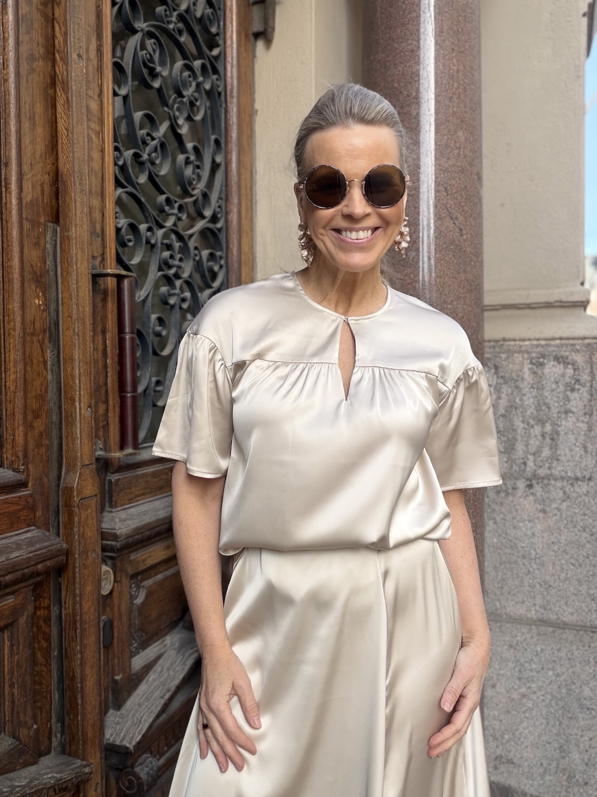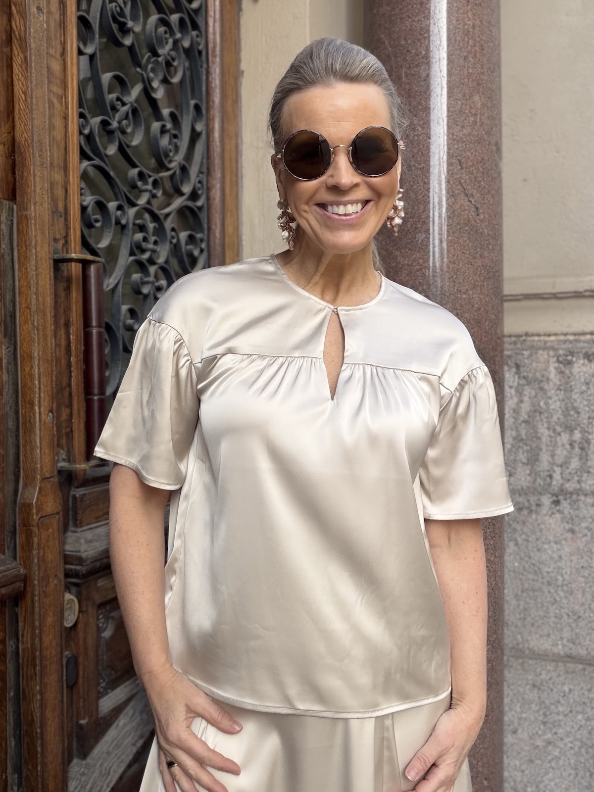 Lake paita on paita, joka toimii arkeen ja pieneen menoon. Paidassa on kevyet ja helppohoitoinen materiaali. Paidassa on O-kaula-aukko, jossa on nappi. Hihat ylettyvät kyynerpäiden yläpuolelle. Rinnan yläpuolella on poikkileikkaus, jossa on pienen pientä rypytystä. Paita levenee kevyesti alaspäin ja loppuu lonkkaluiden alapuolelle. Katalla on paidasta päällä koko 36.