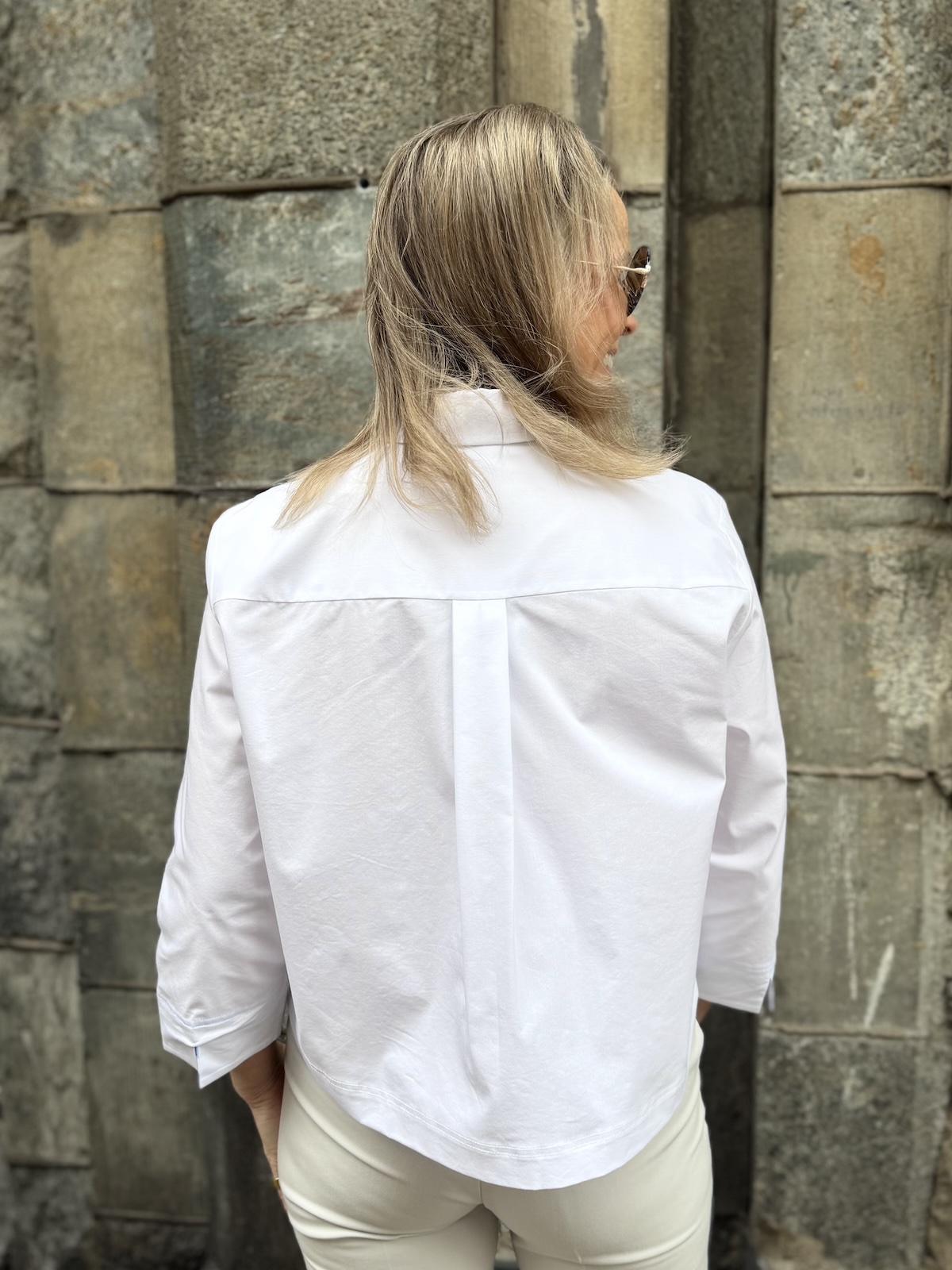 Lizz on hauska laatikkomainen kauluspaita, jonka erikoisuutena on vaaleansininen kukkajirjailu edessä. Edessä on avattavat napit ja hihat ovat vajaamittaiset. Malliltaan paitapusero on suora ja lyhyehkö ja sen edessä on myös taskut. Katalla on paidasta päällä koko 34.
