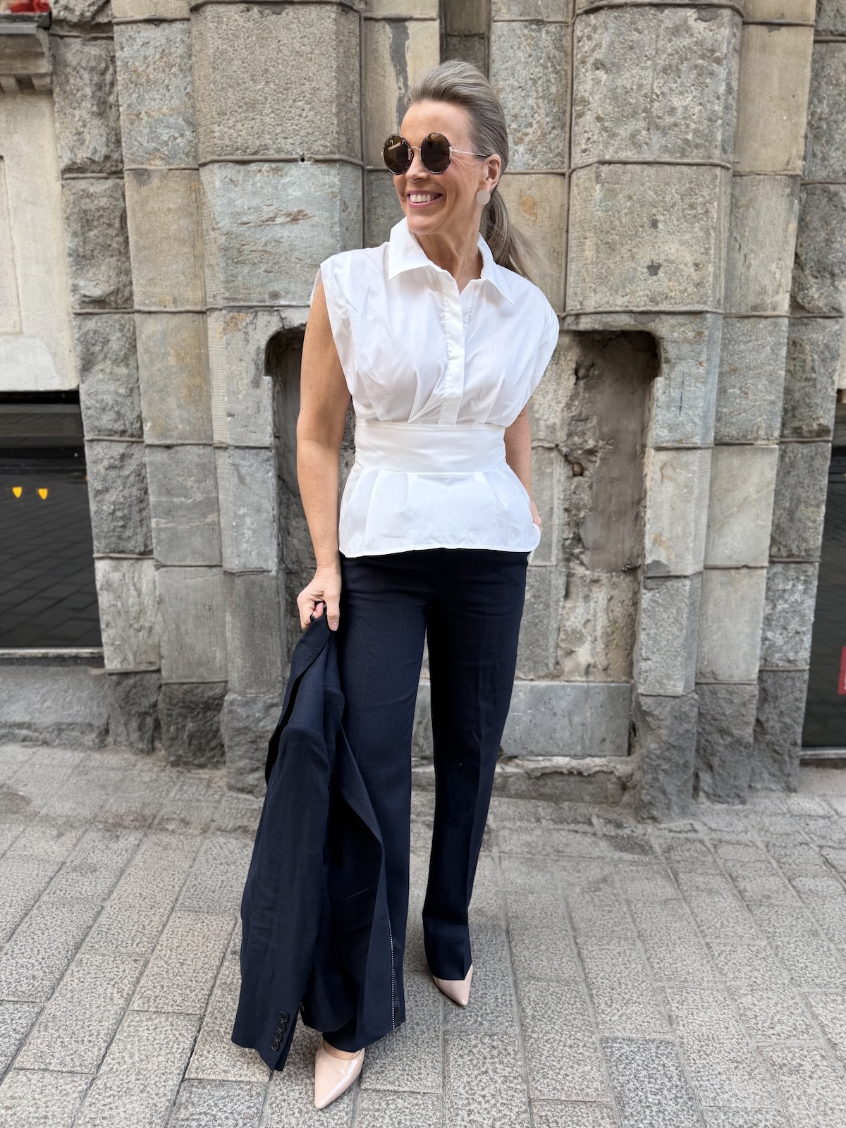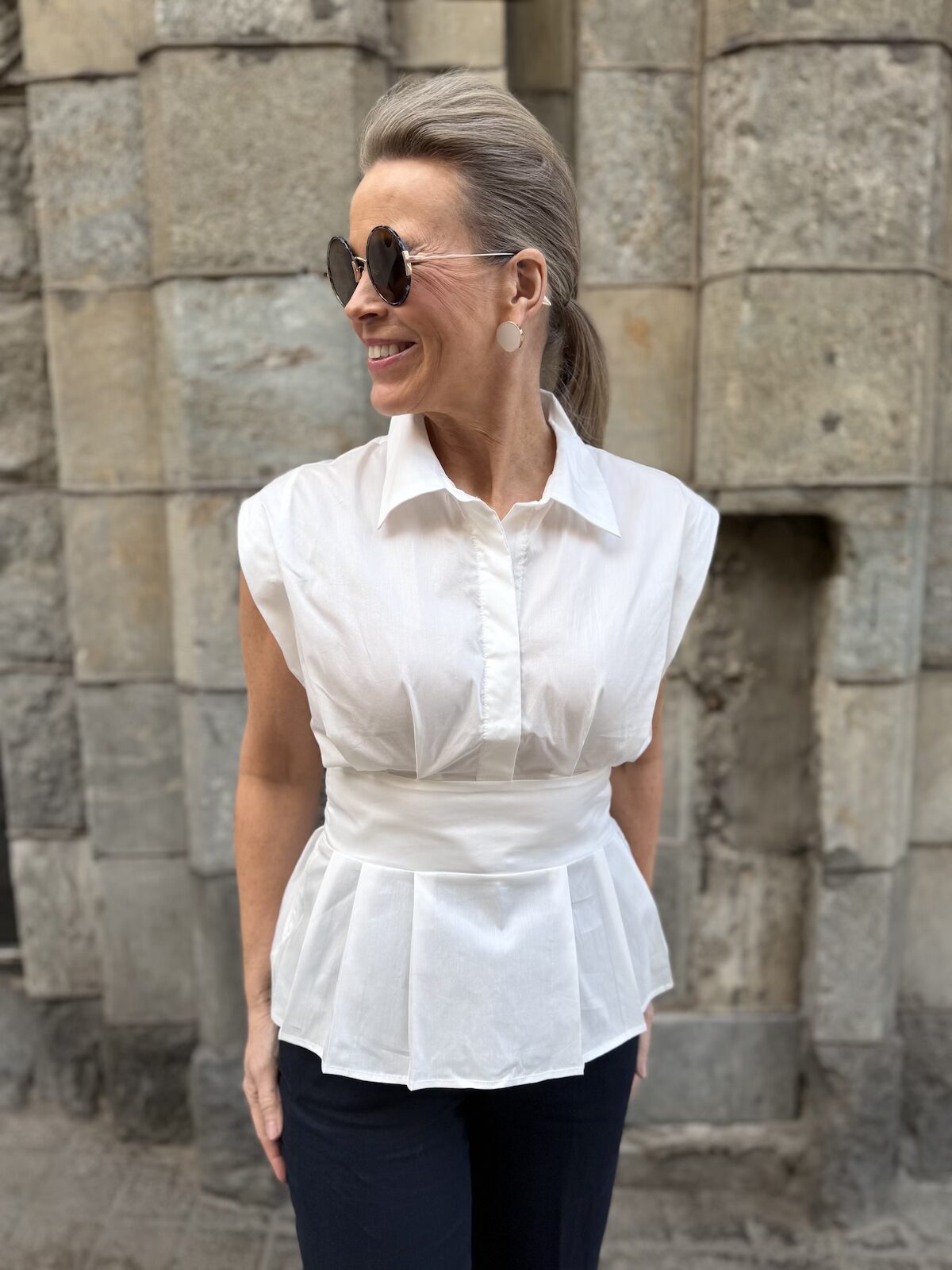 Malue paita kuuluu samaan tuoteperheeseen kun Antoinett pallomekko. Paidassa on kaunis malli. Siinä on kaulukset ja edessä on napit poikkileikkaukseen asti. Paita on leveähkö yläosasta eli olkasaumat tipahtavat reippaasti olkapäiden alapuolelle. Vyötäröllä on leveähkö tuplakankainen kantti. Helmaosassa on muutama vekki eli se levenee alaspäin. Katalla on paidasta päällä koko S. Paita ei jousta vyötärön kohdalta. Paita sopii X- ja A-vartaloiselle naiselle.
