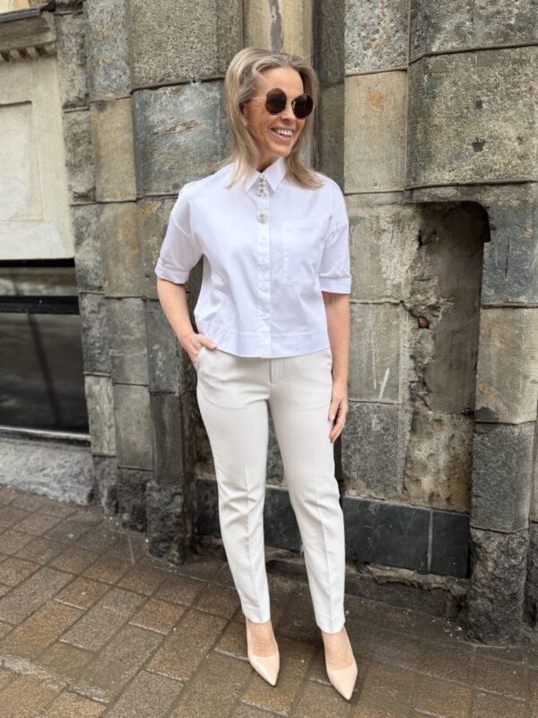 Raina on laatikkomainen ja lyhyt paitapusero. Edessä on täysin avattavat napit ja hihat ylettyvät kyynerpäiden kohdalle. Boximaista paitapuseroa voi pitää myös auki, jakun tavoin. Katalla on paitapuserosta päällä koko 34.