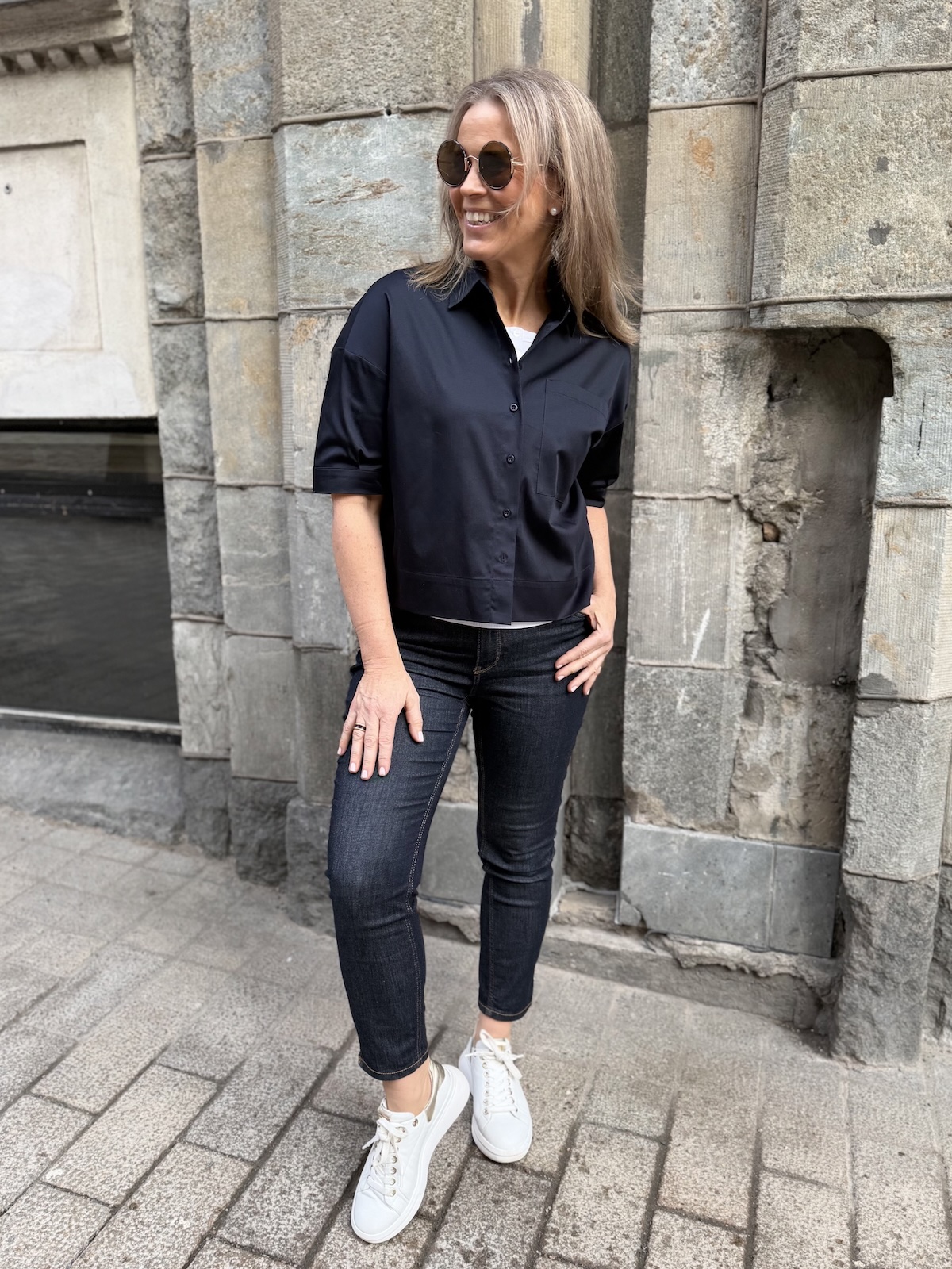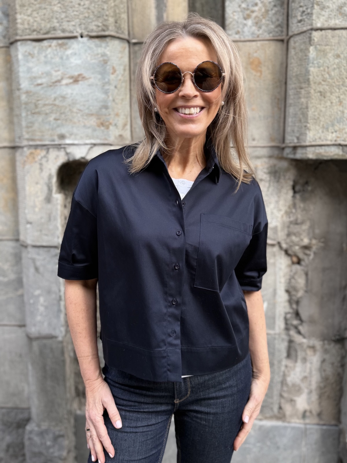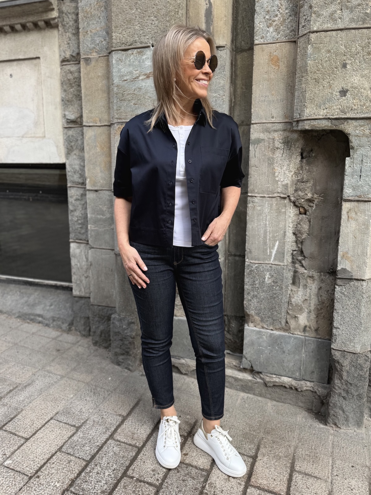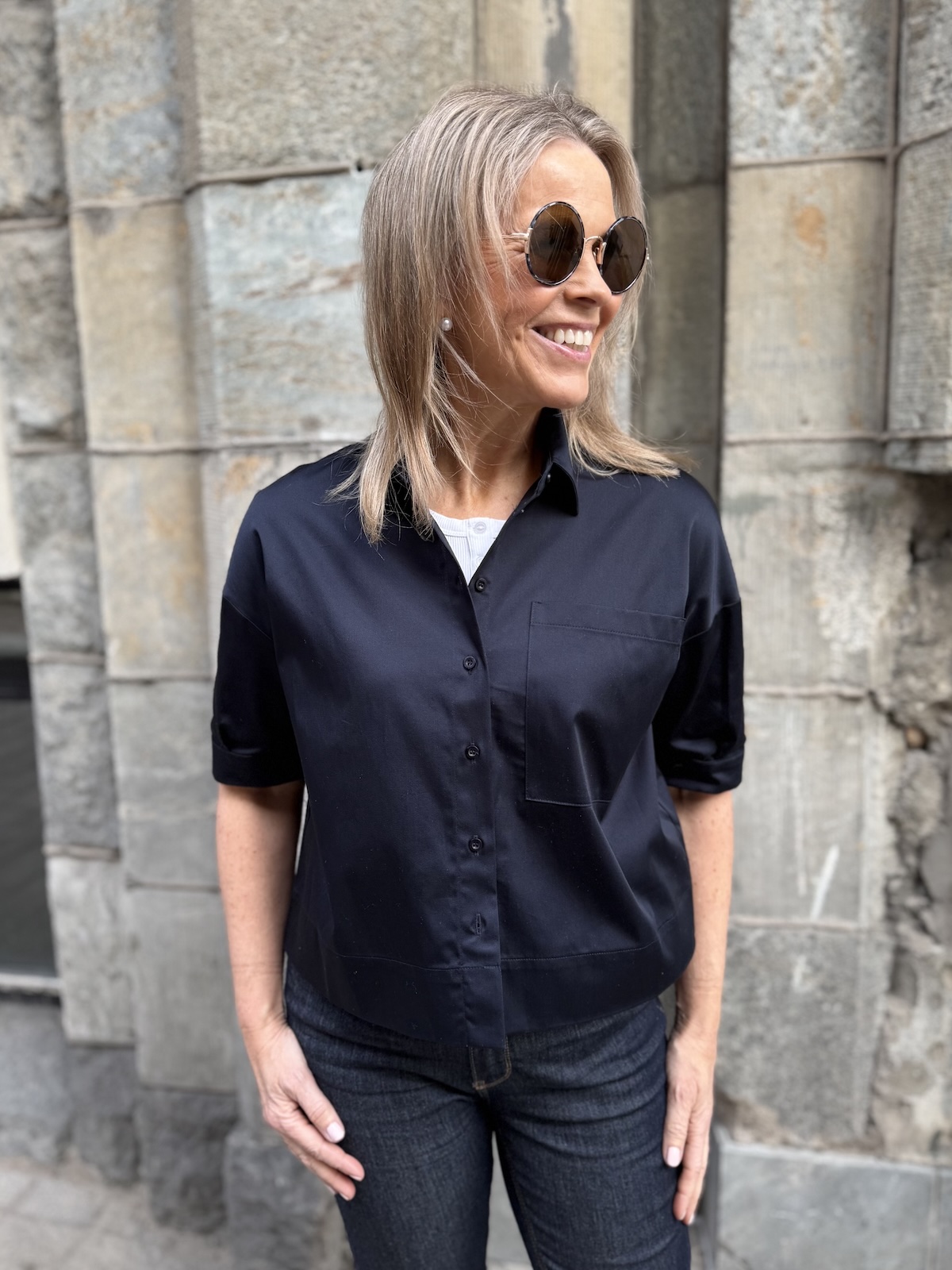 Raina boxi lyhythihainen paitapusero; tummansininen